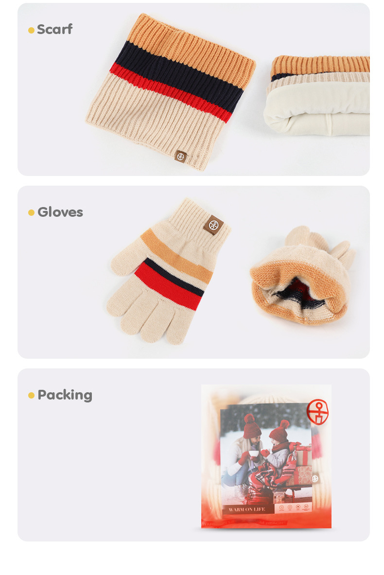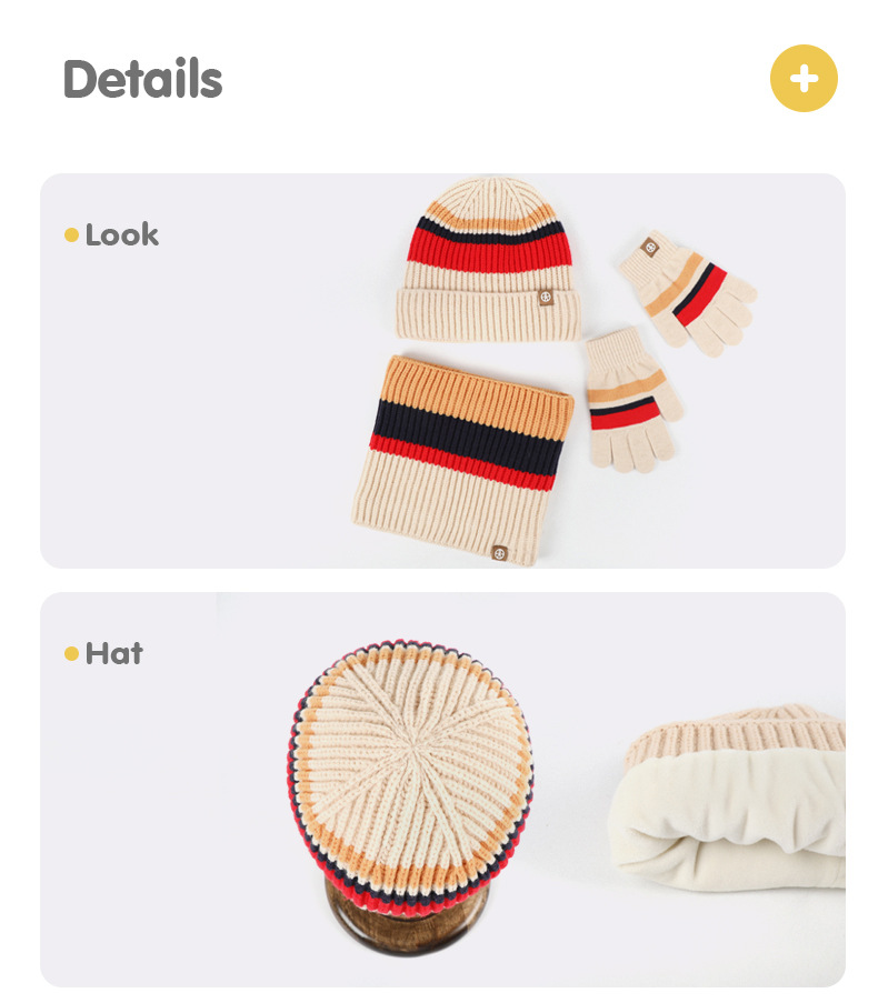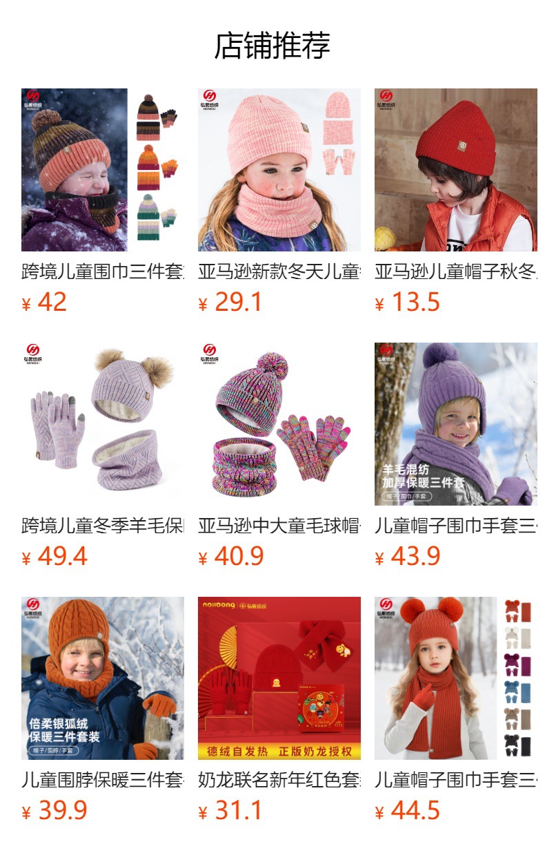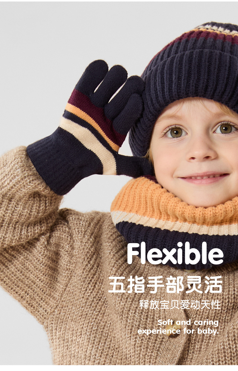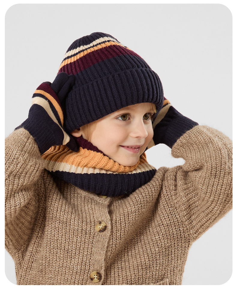 儿童三件套帽子围巾手套秋冬季宝宝亚马逊护耳毛线帽保暖三件套装