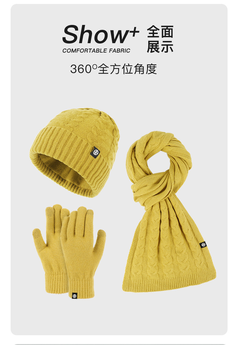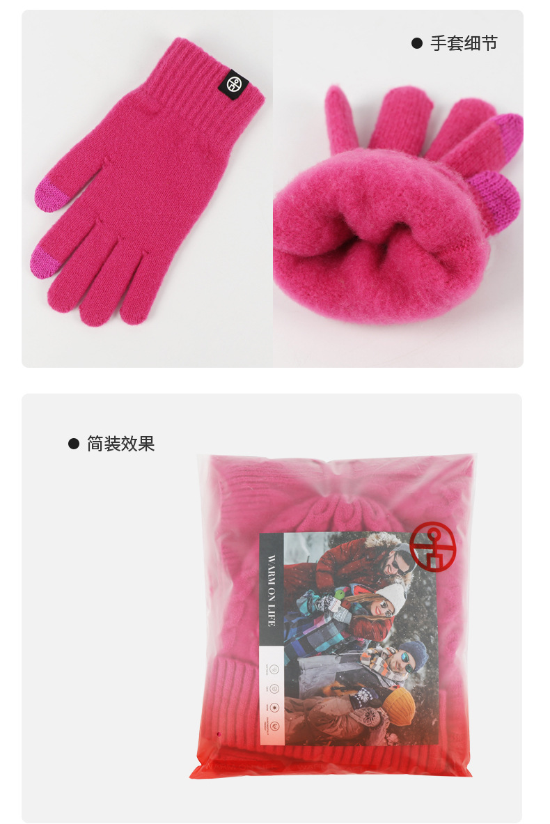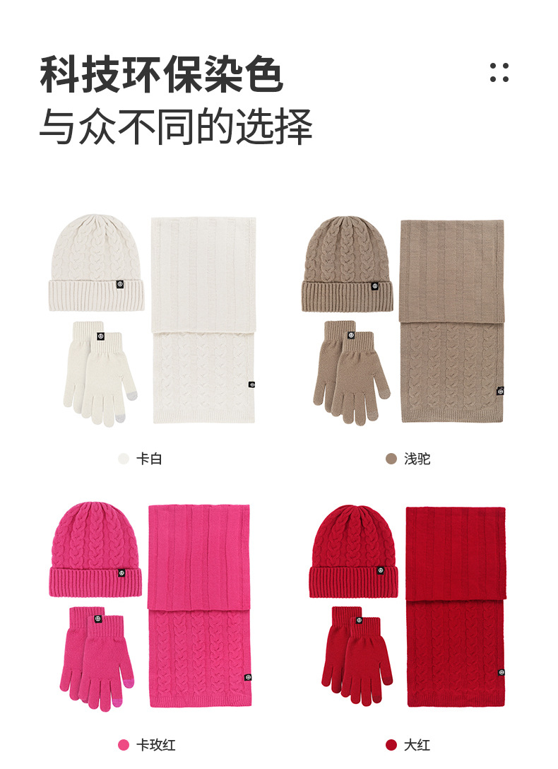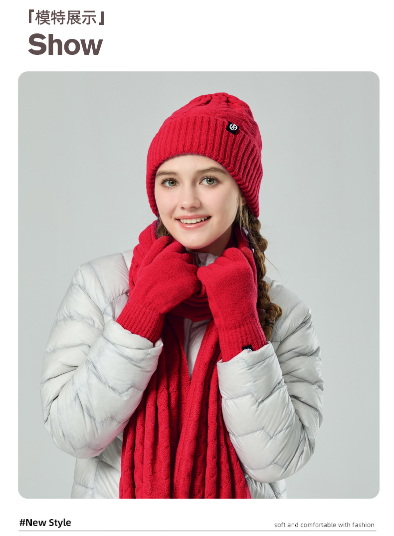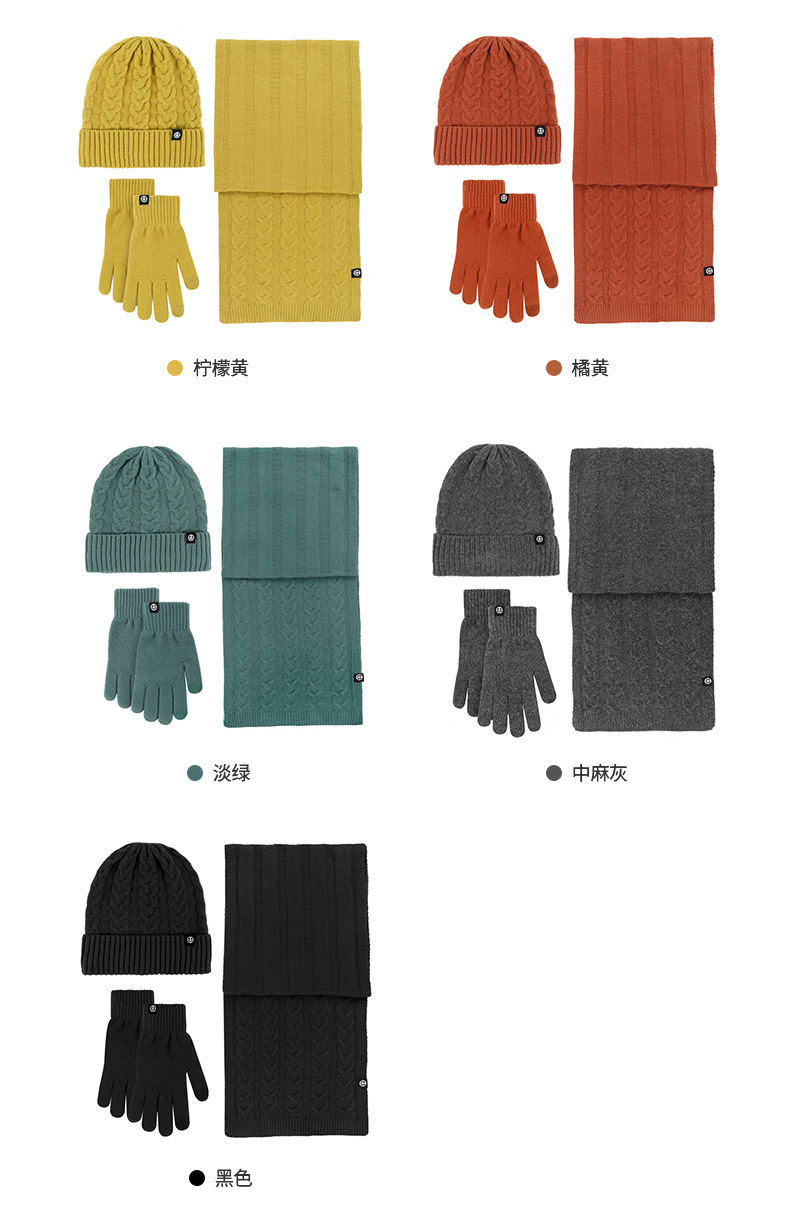 亚马逊成人保暖自发热德绒三件套装户外针织帽子围巾手套三件套冬