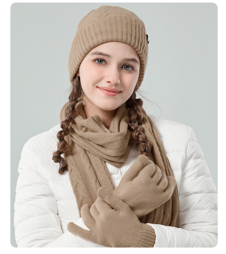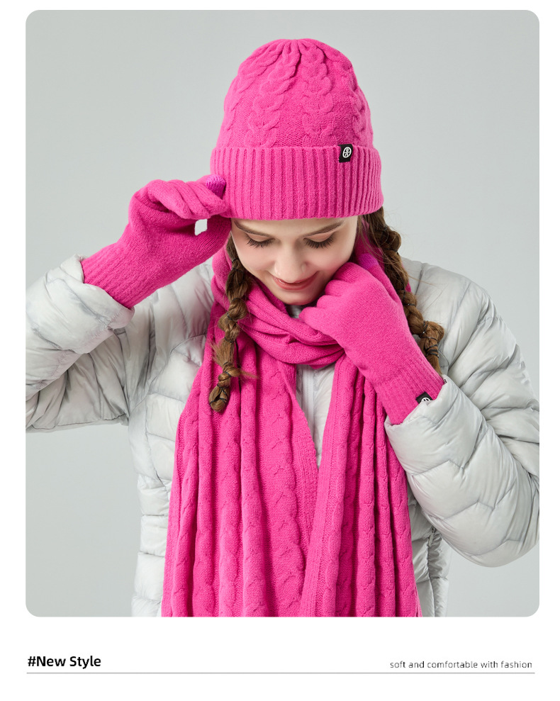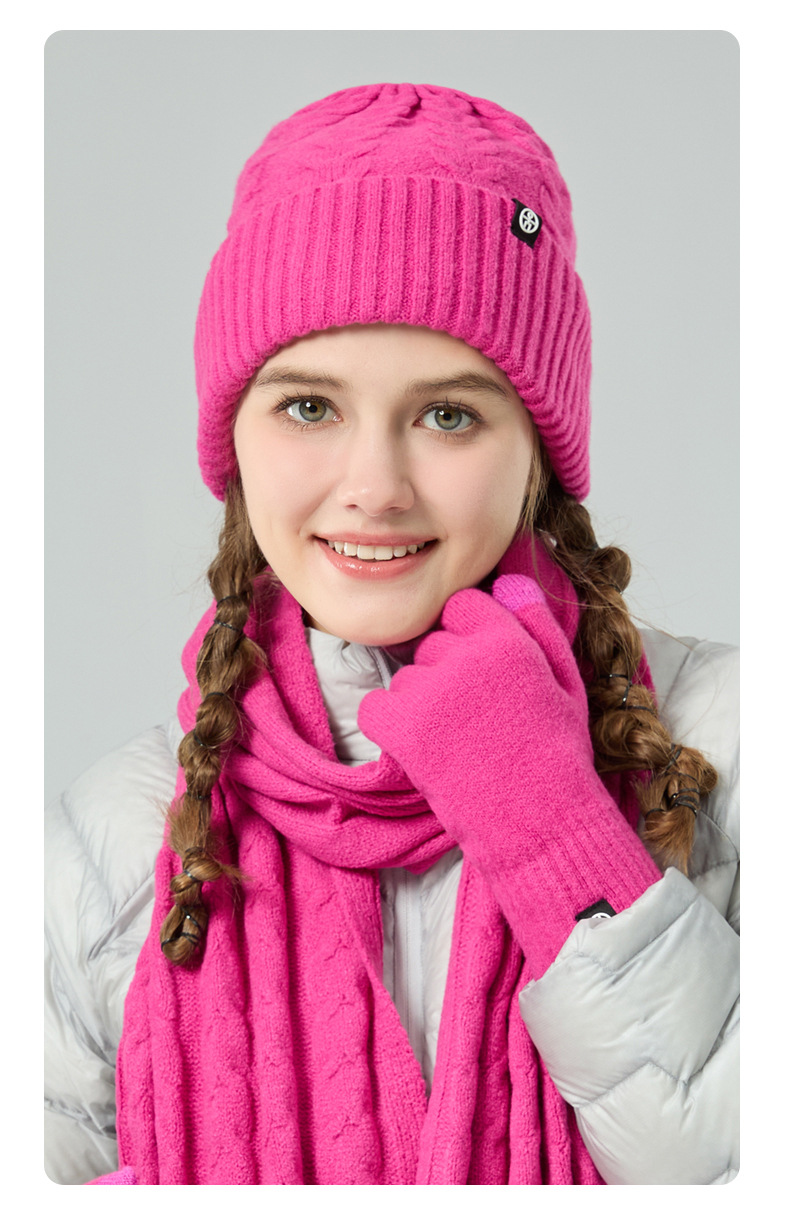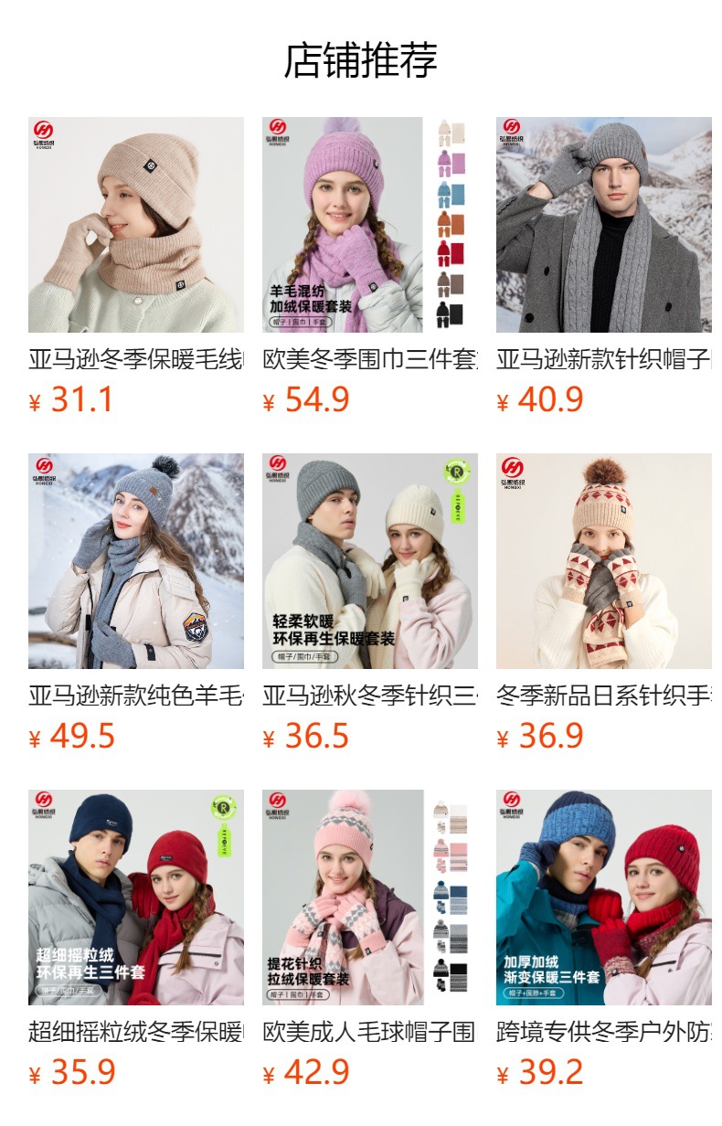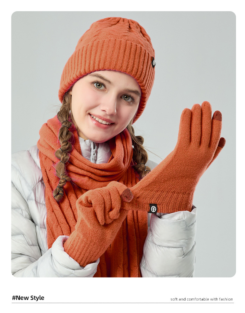 亚马逊成人保暖自发热德绒三件套装户外针织帽子围巾手套三件套冬