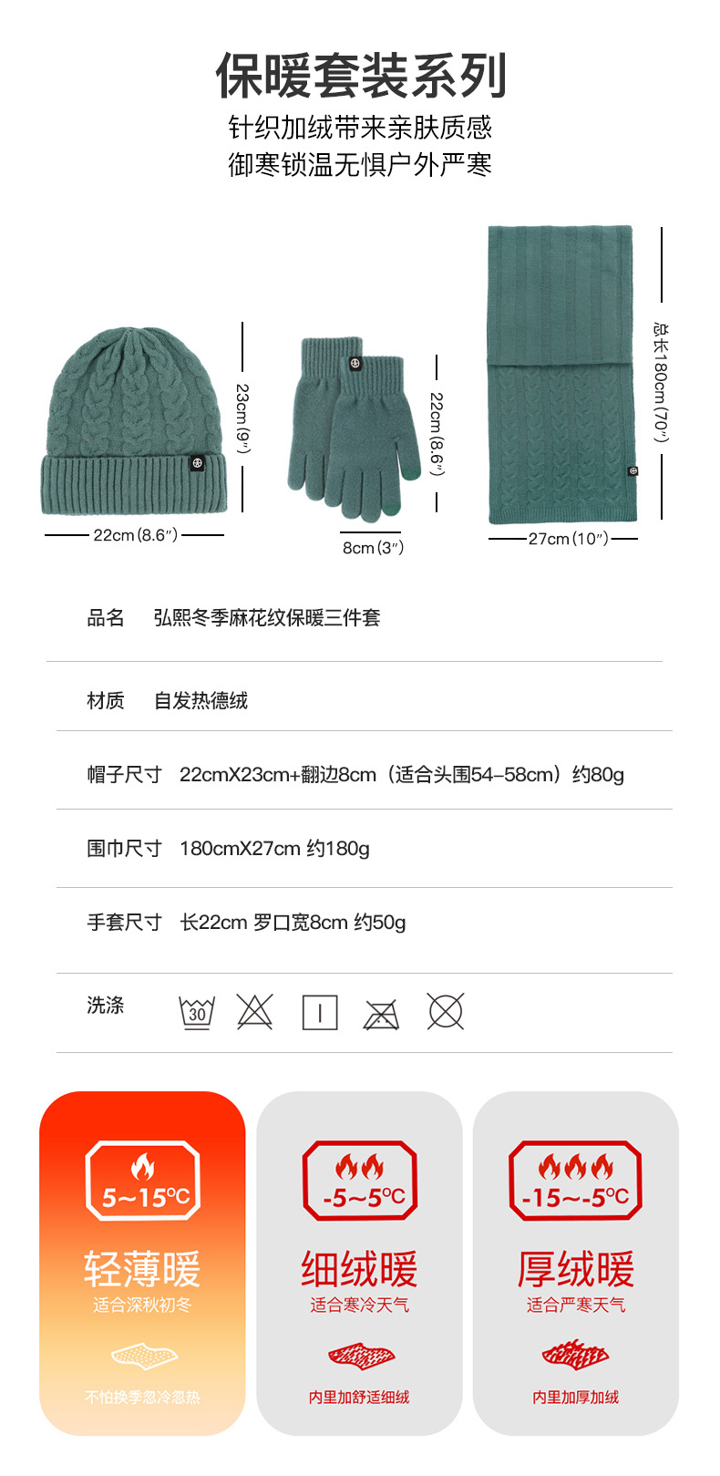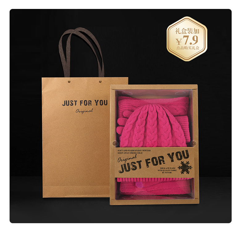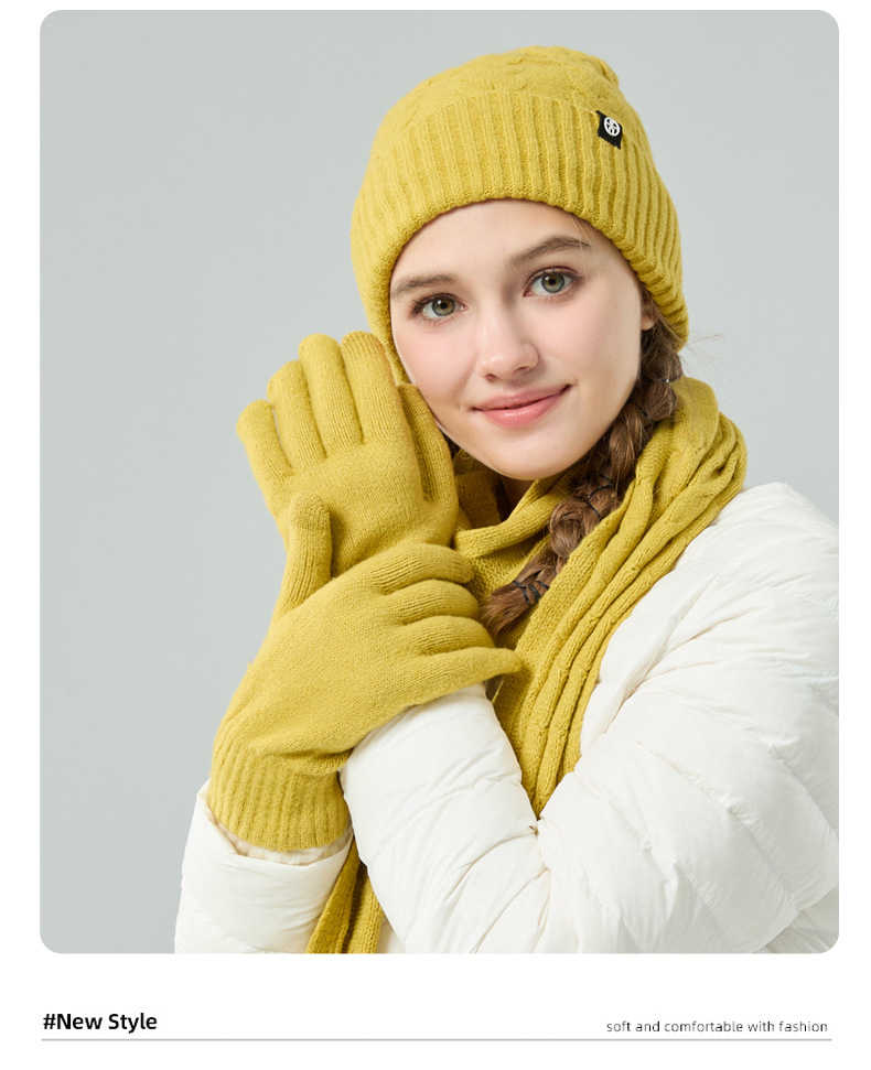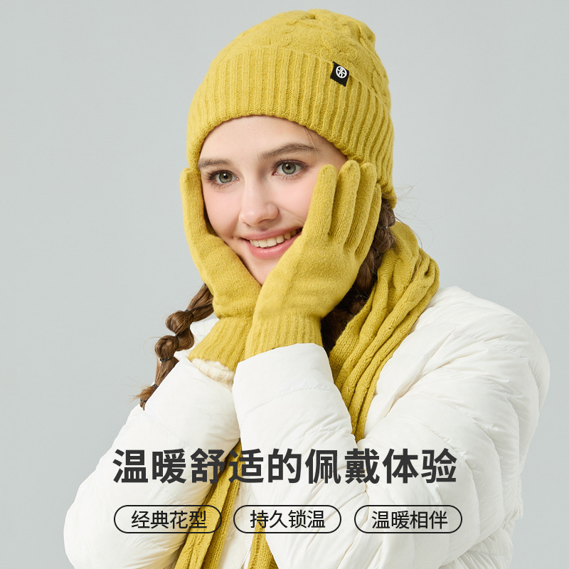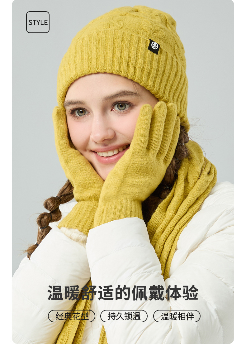 亚马逊成人保暖自发热德绒三件套装户外针织帽子围巾手套三件套冬