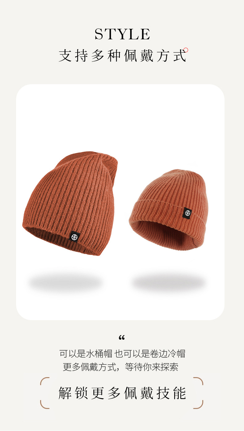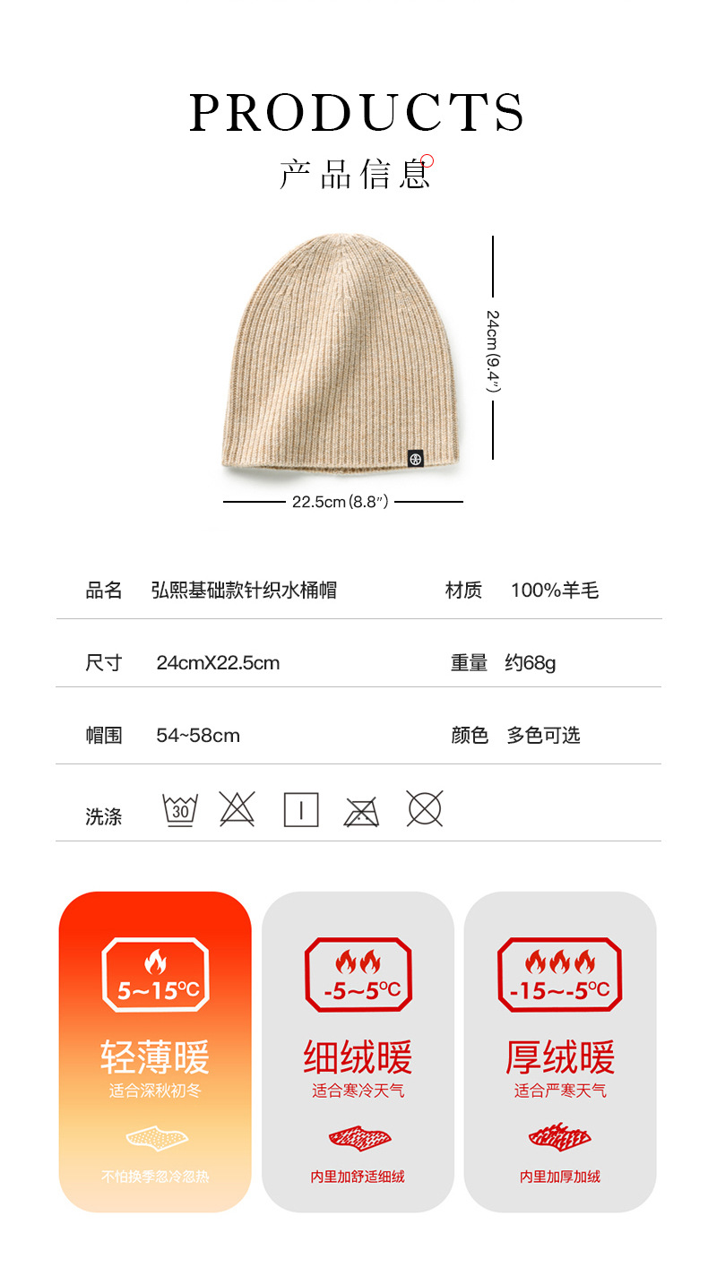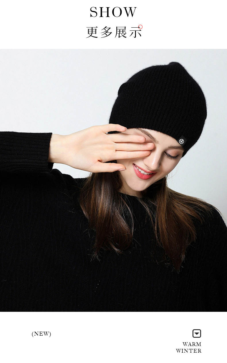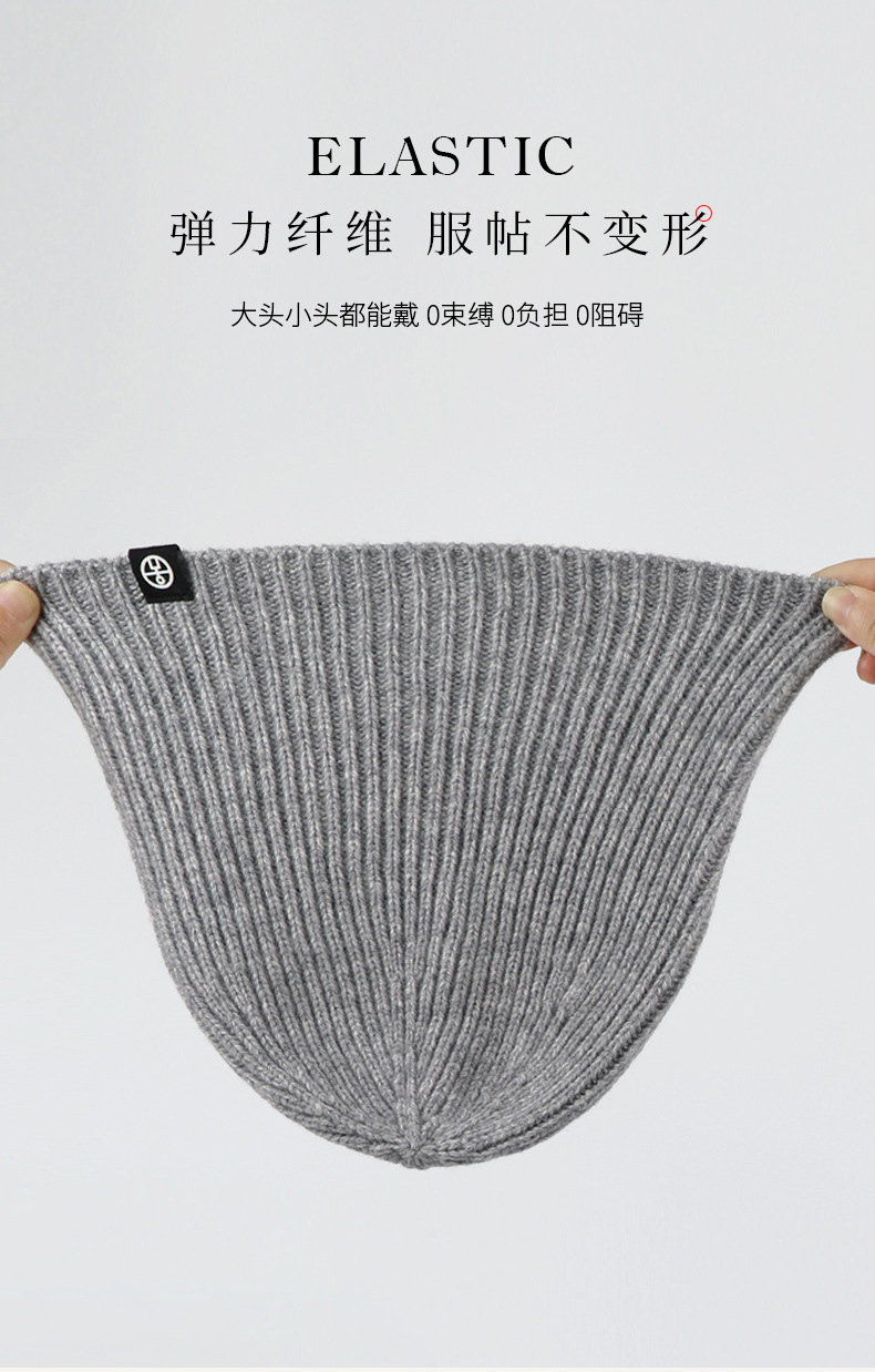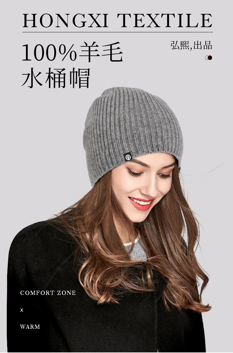 跨境纯羊毛针织帽子冬季水桶帽时尚纯色户外保暖毛线套头护耳冷帽