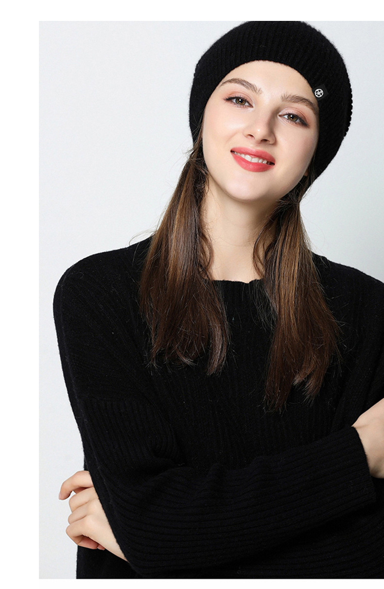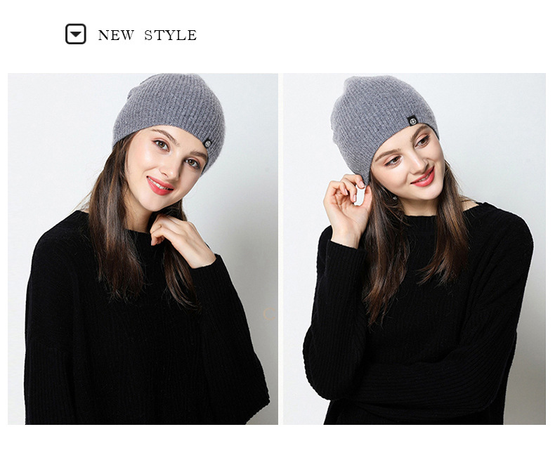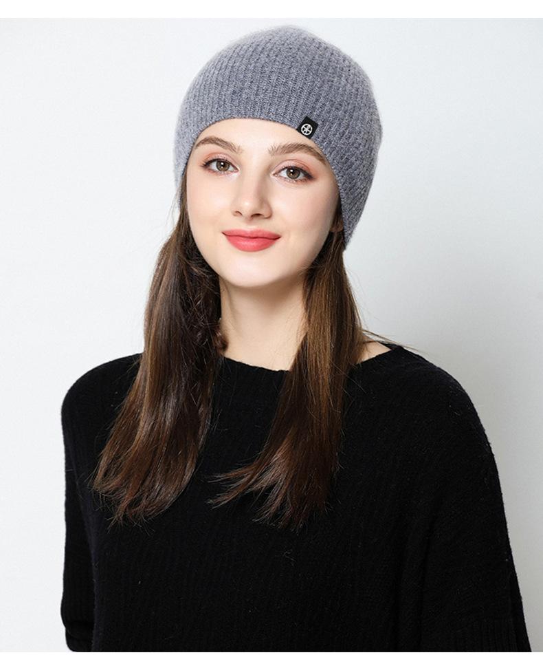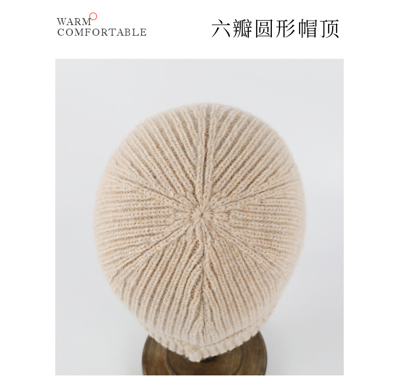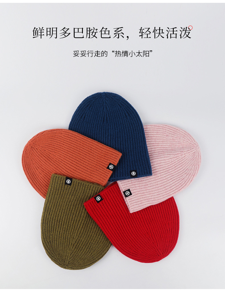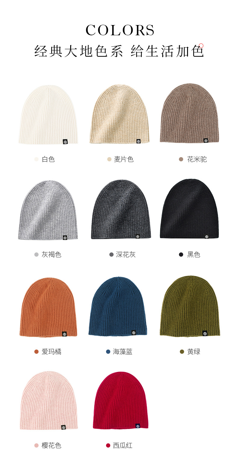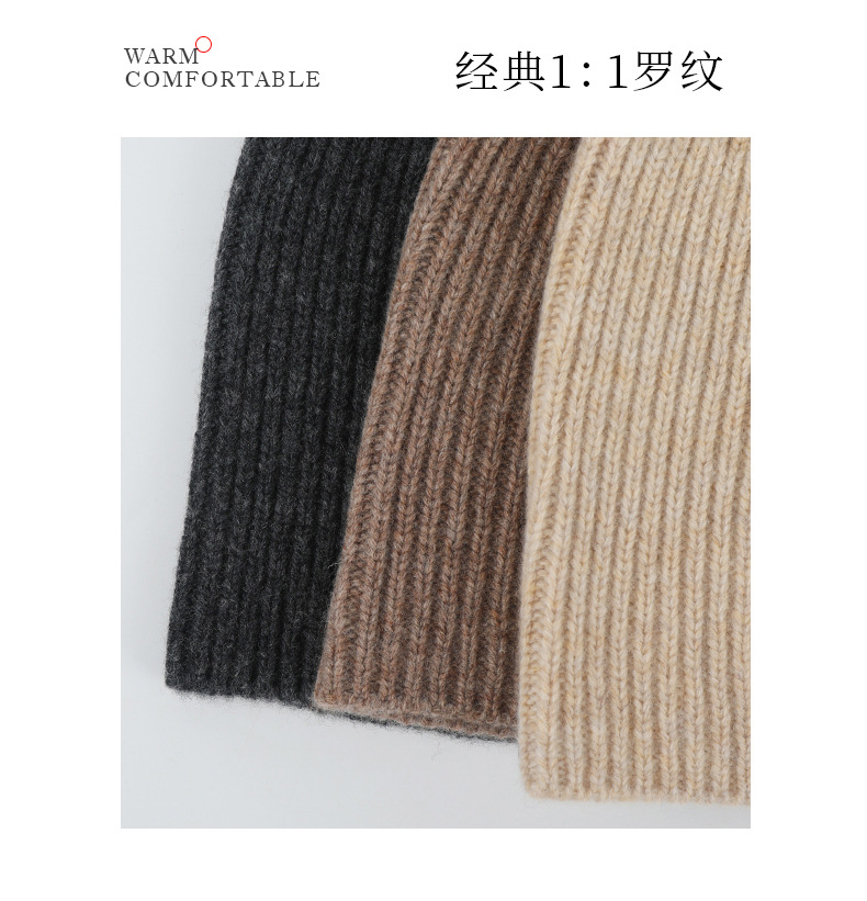 跨境纯羊毛针织帽子冬季水桶帽时尚纯色户外保暖毛线套头护耳冷帽