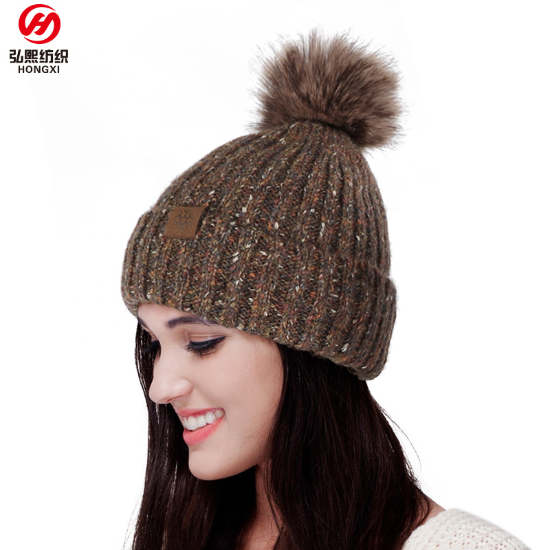 亚马逊秋冬新款羊毛加绒毛球针织帽子户外保暖防寒护耳套头毛线帽