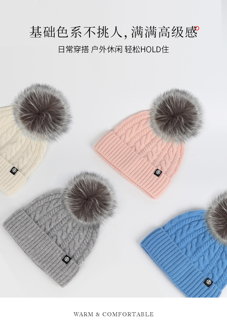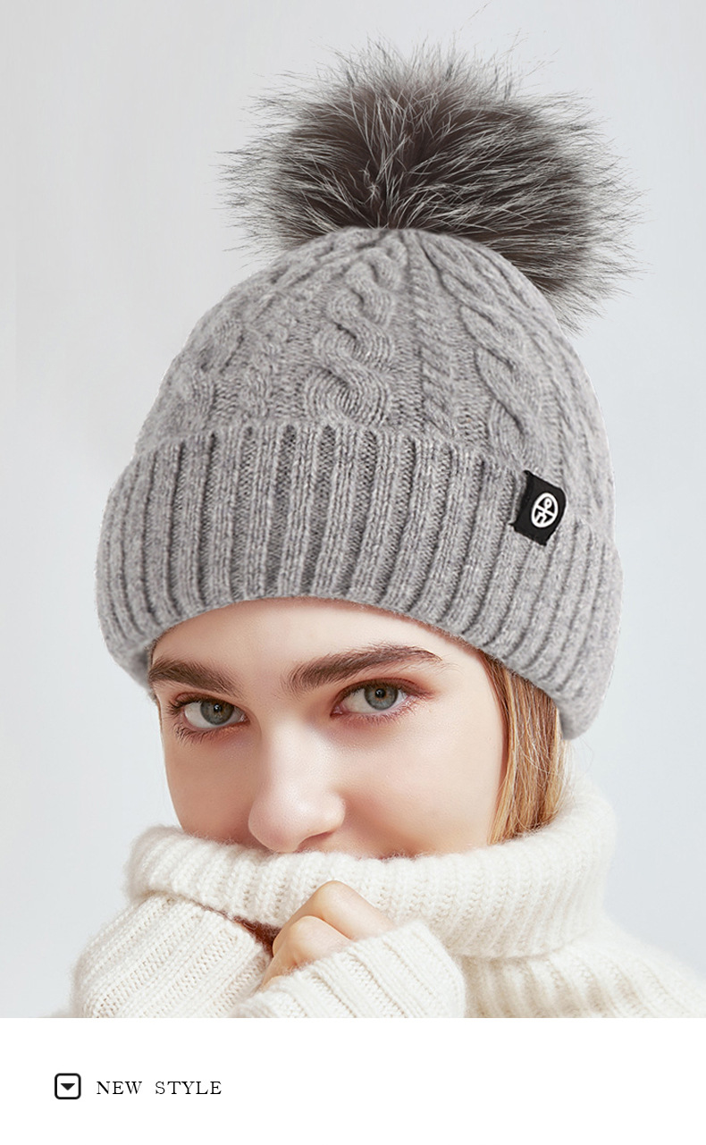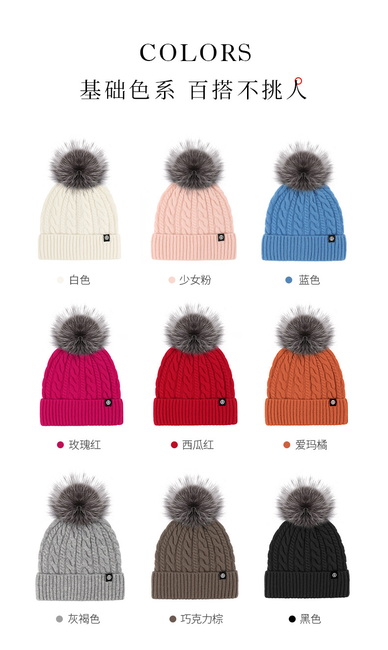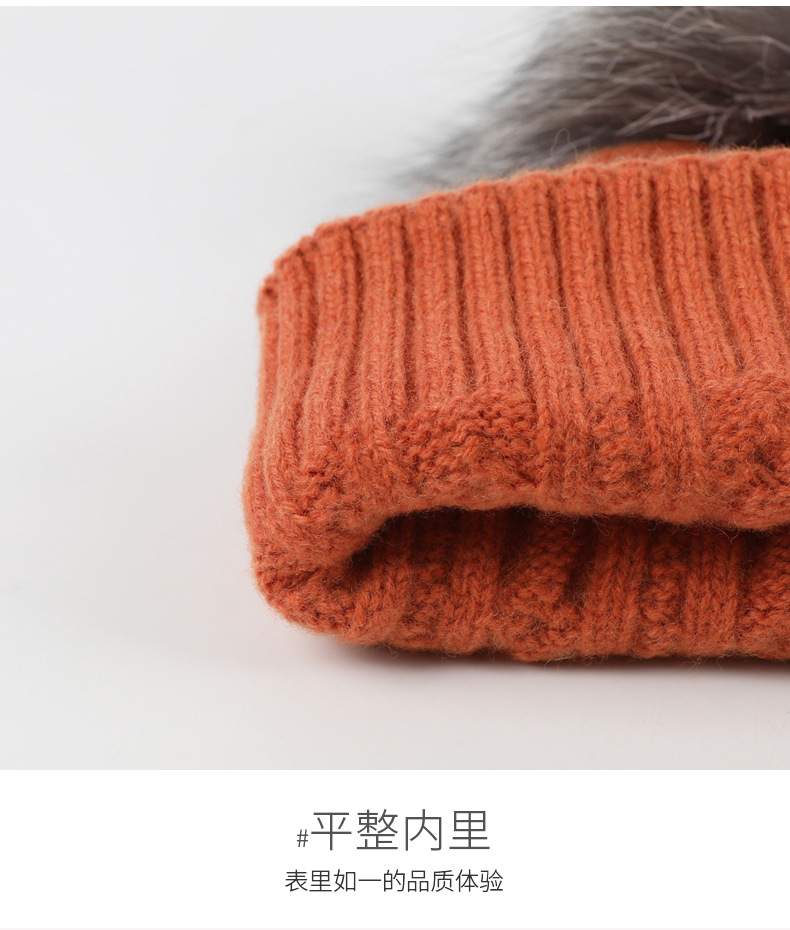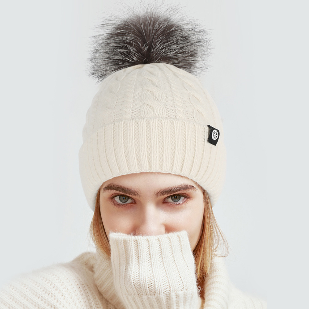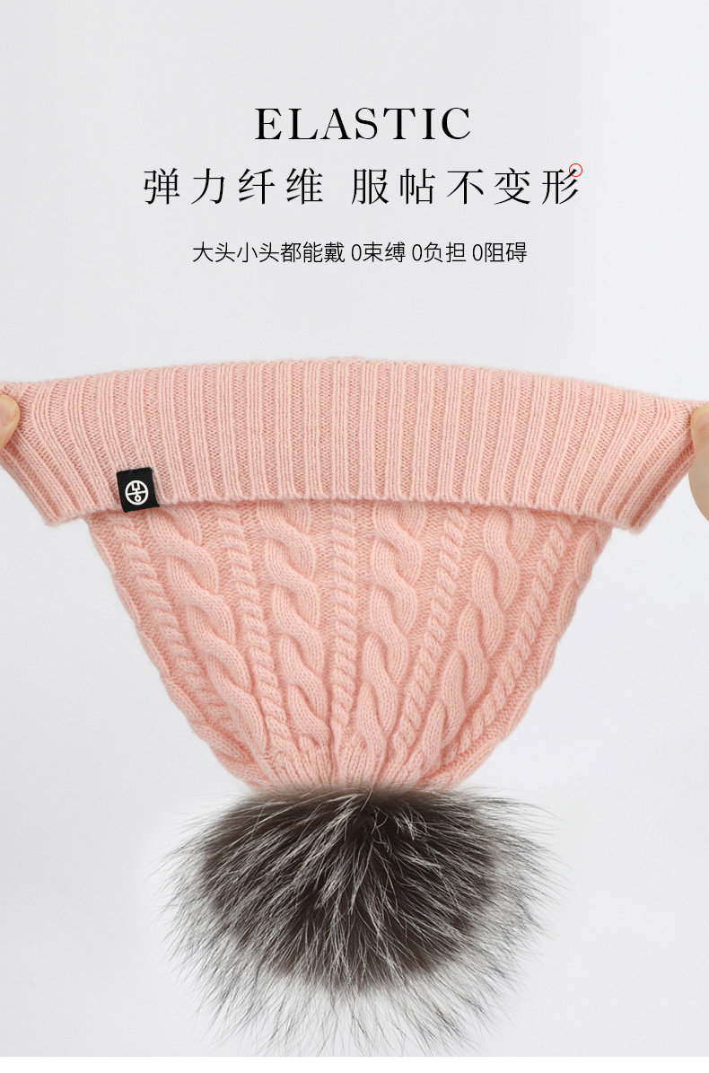 纯羊毛帽子女秋冬季跨境真毛球护耳针织帽户外保暖防风加厚套头帽