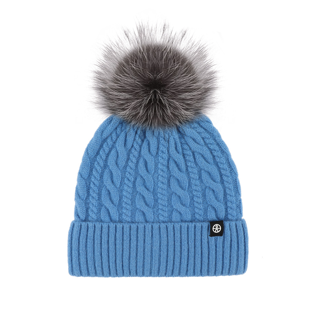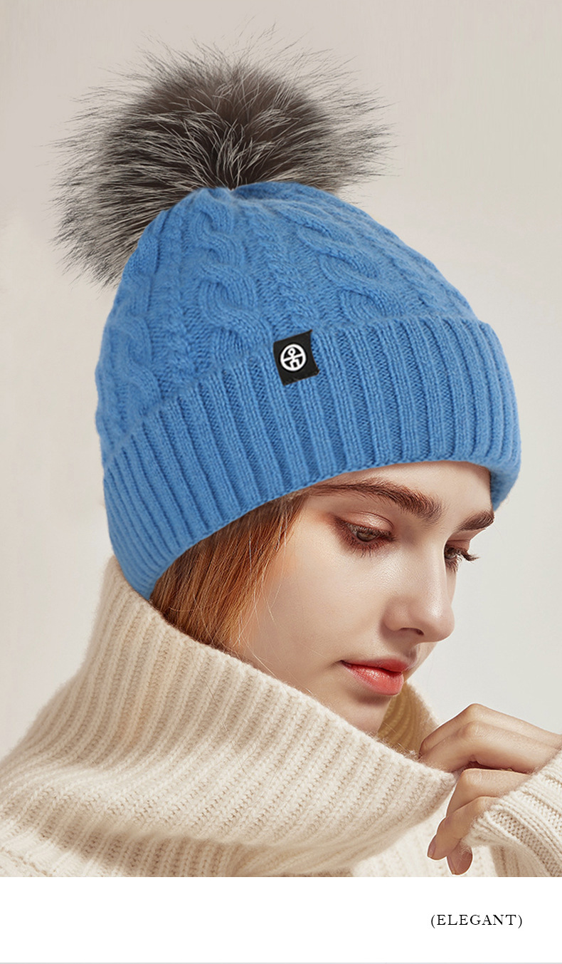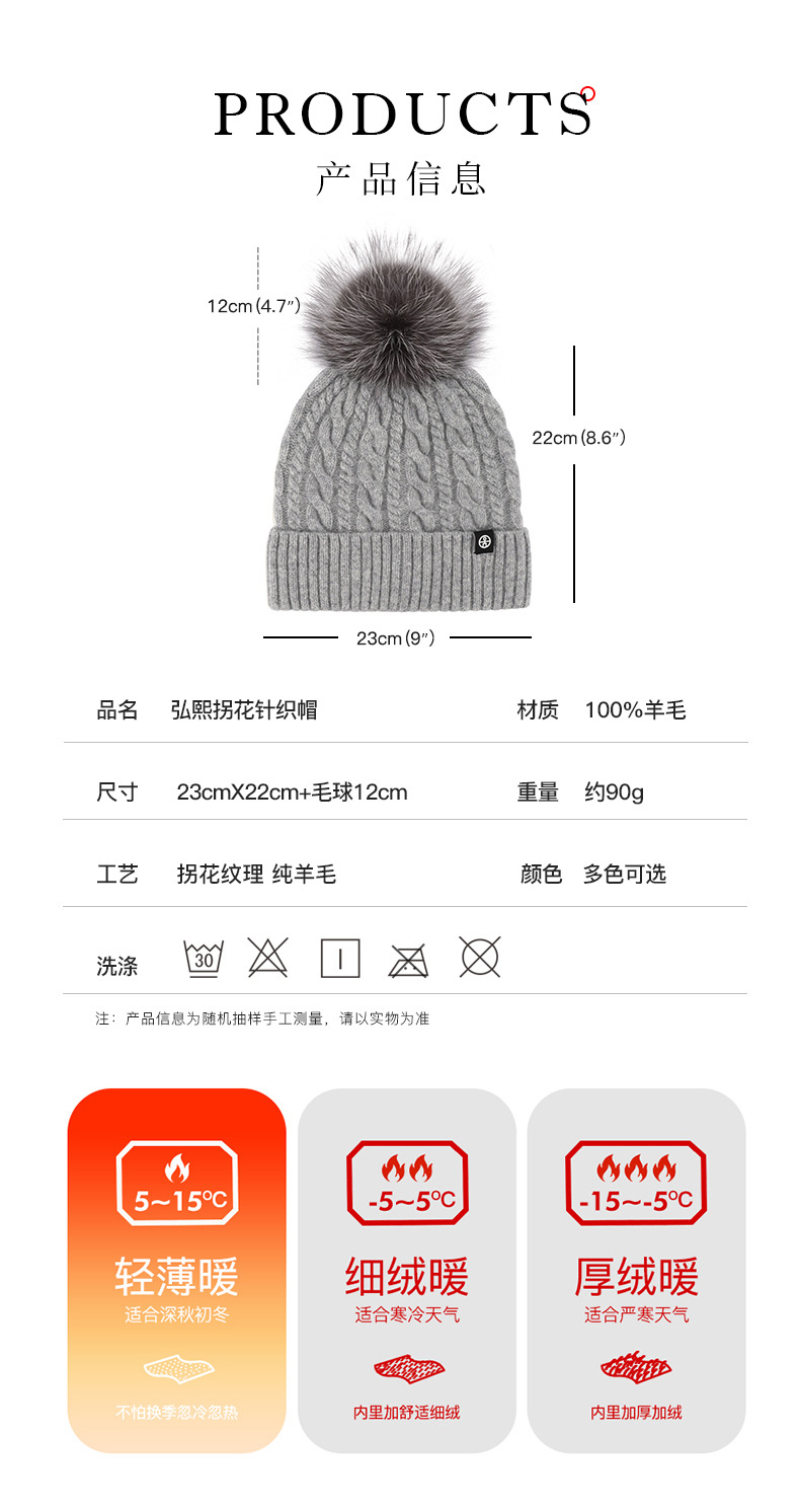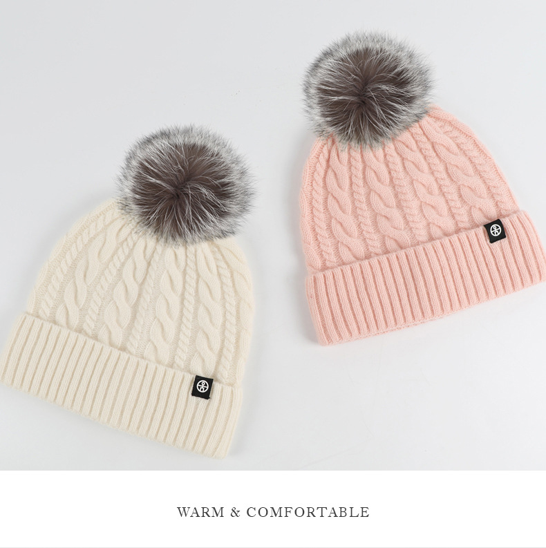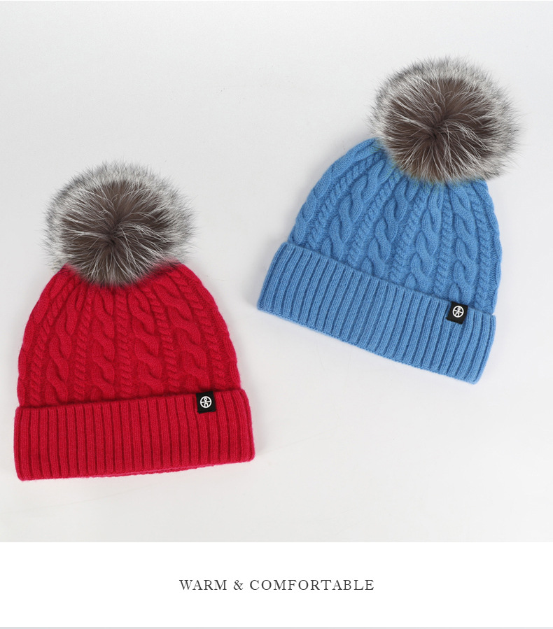 纯羊毛帽子女秋冬季跨境真毛球护耳针织帽户外保暖防风加厚套头帽