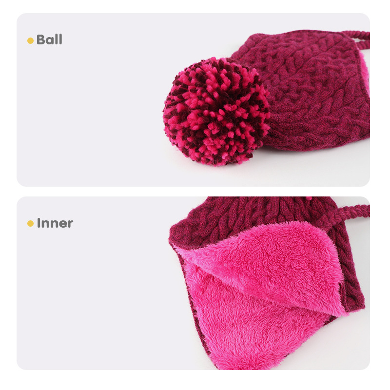 跨境冬季儿童帽子女针织保暖护耳帽男防寒羊毛混纺加绒加厚毛球帽