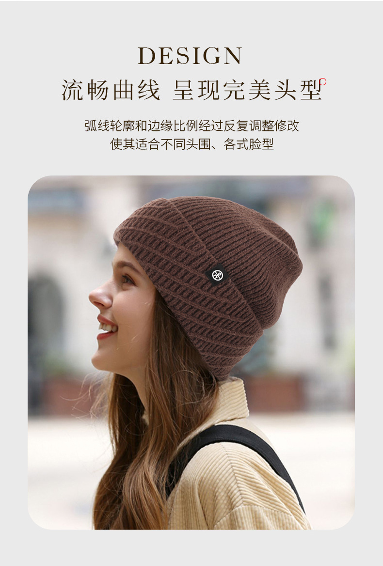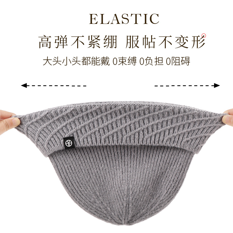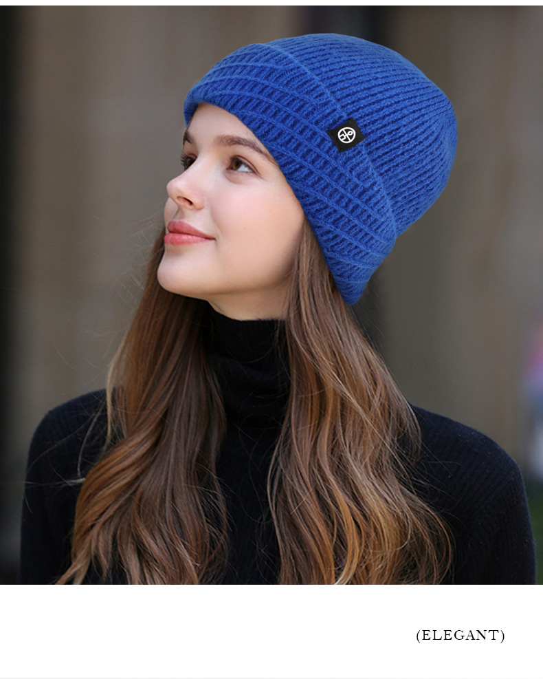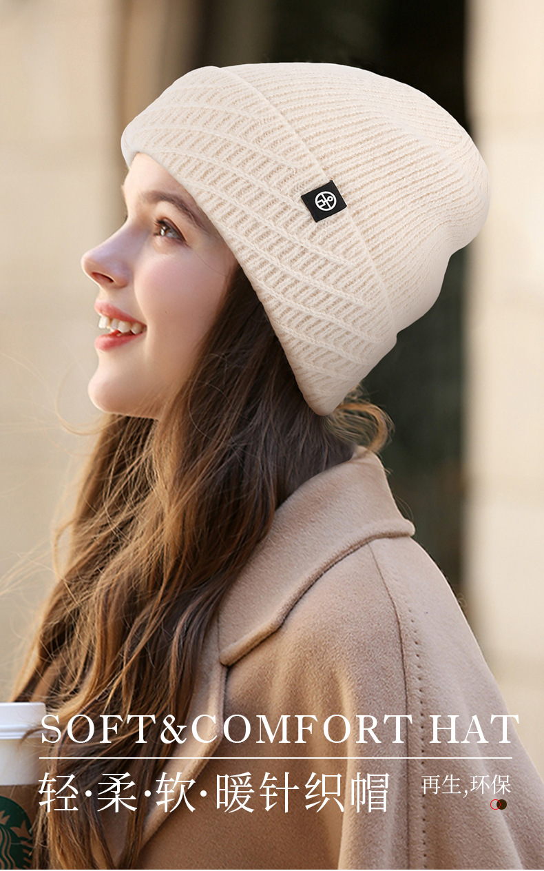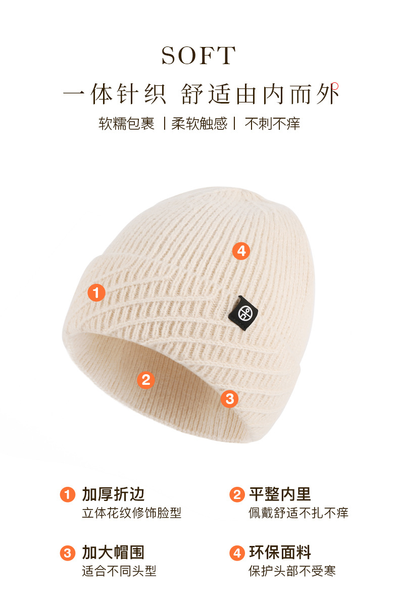 针织帽秋冬季帽子女款保暖柔软防风包头护耳百搭纯色翻边毛线帽