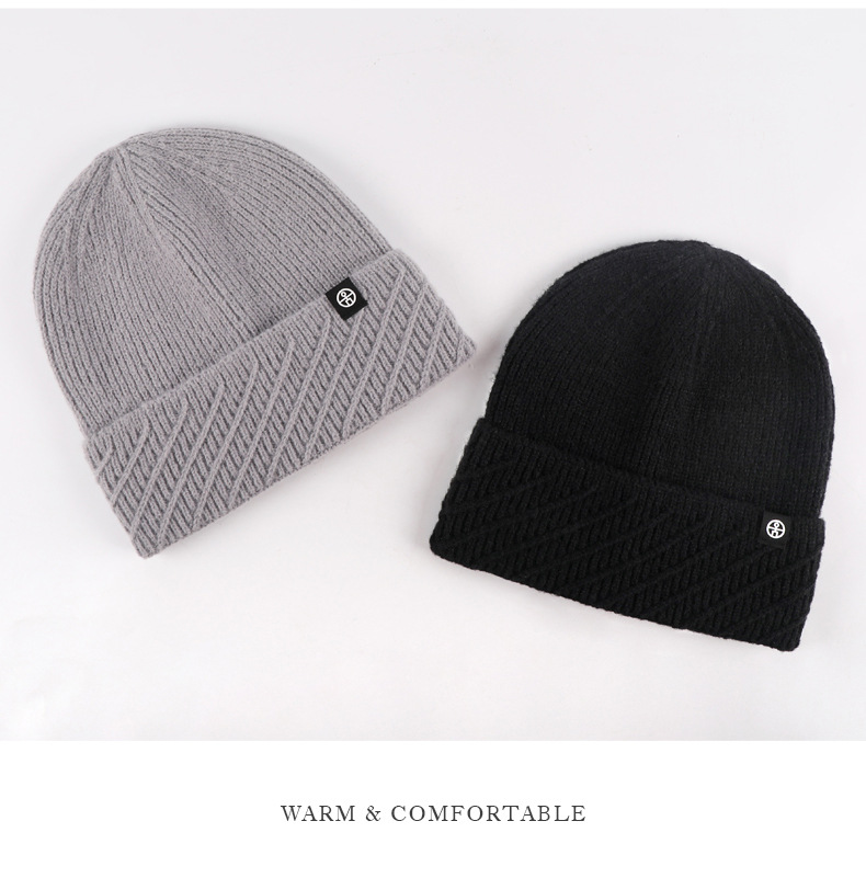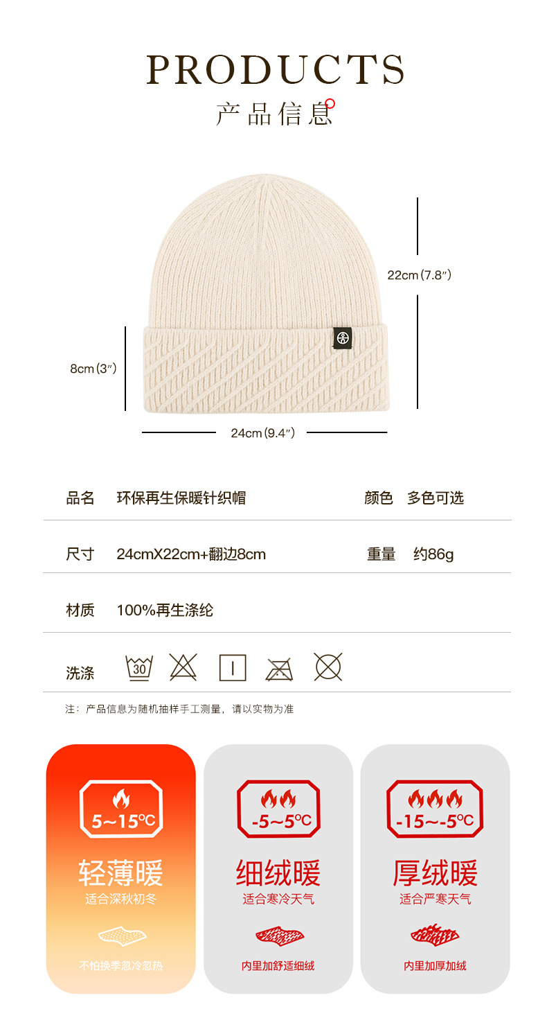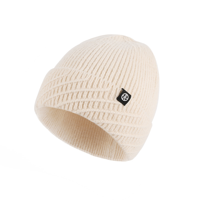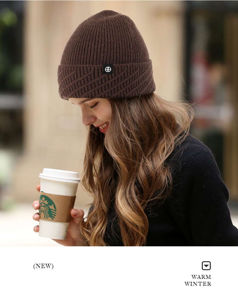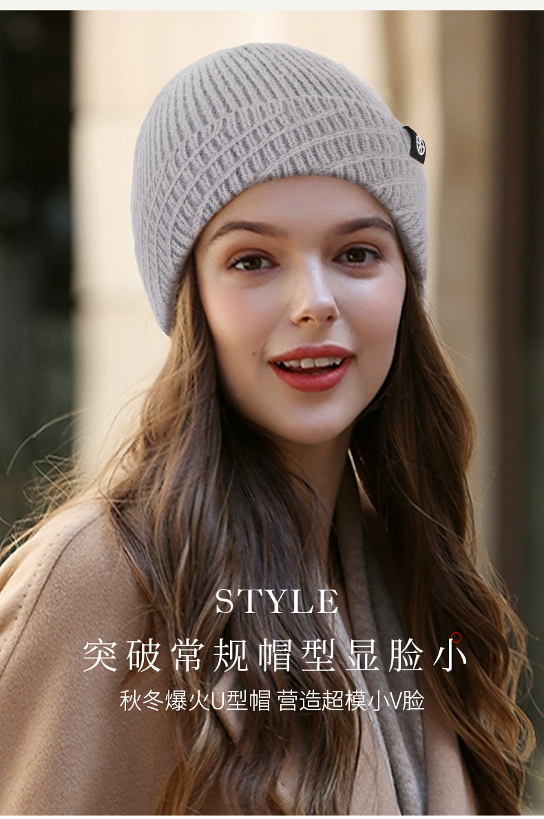 针织帽秋冬季帽子女款保暖柔软防风包头护耳百搭纯色翻边毛线帽