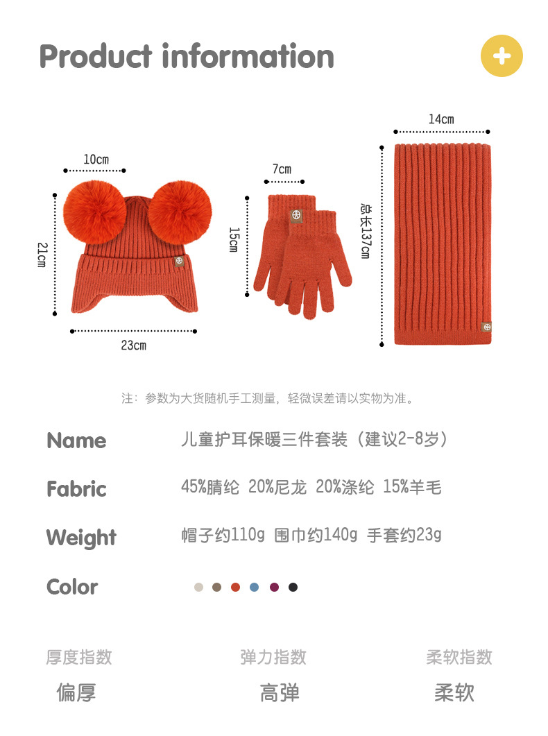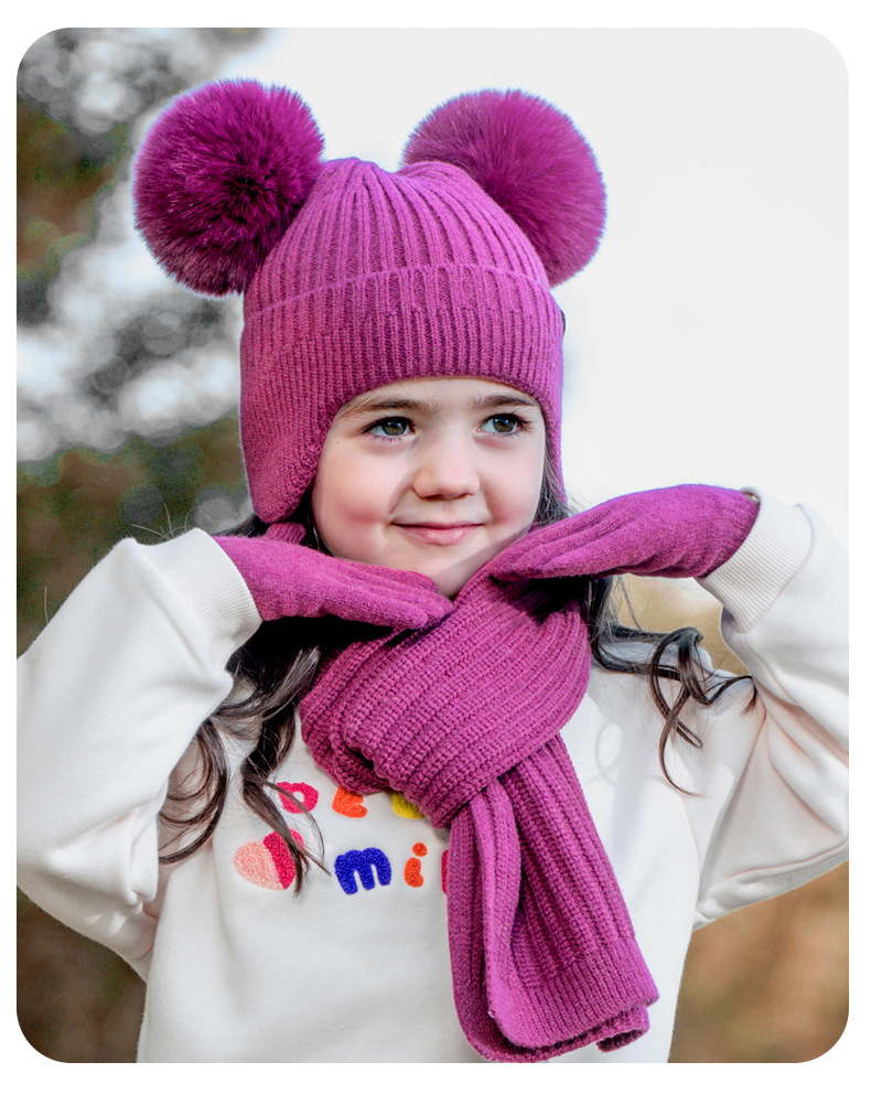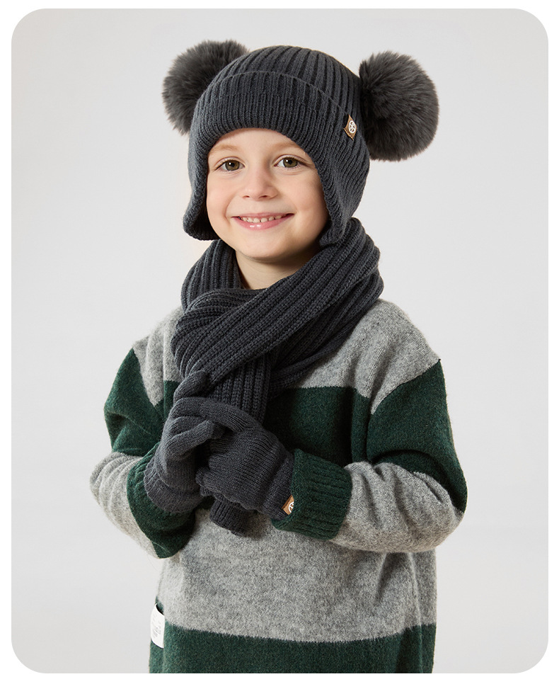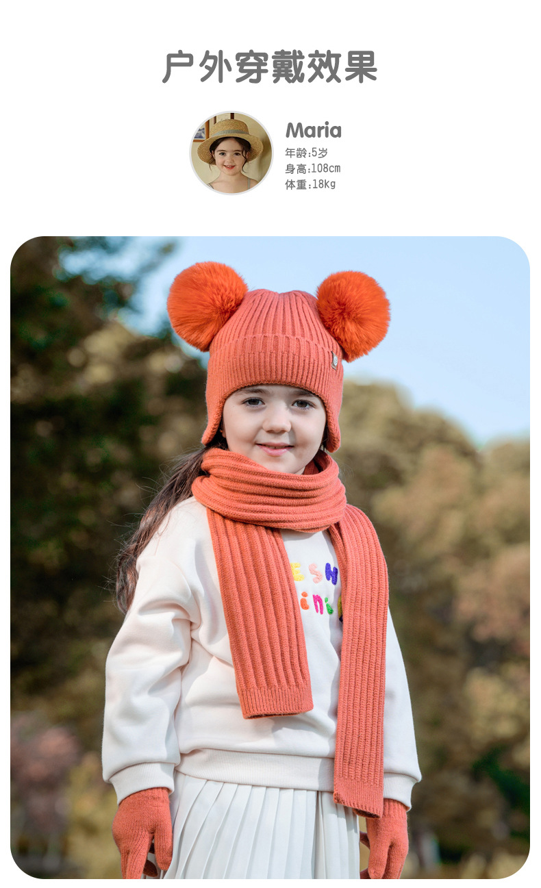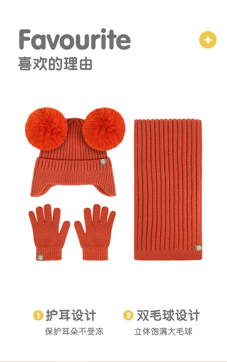儿童帽子围巾手套三件套冬季保暖防寒毛球护耳帽子儿童围巾三件套