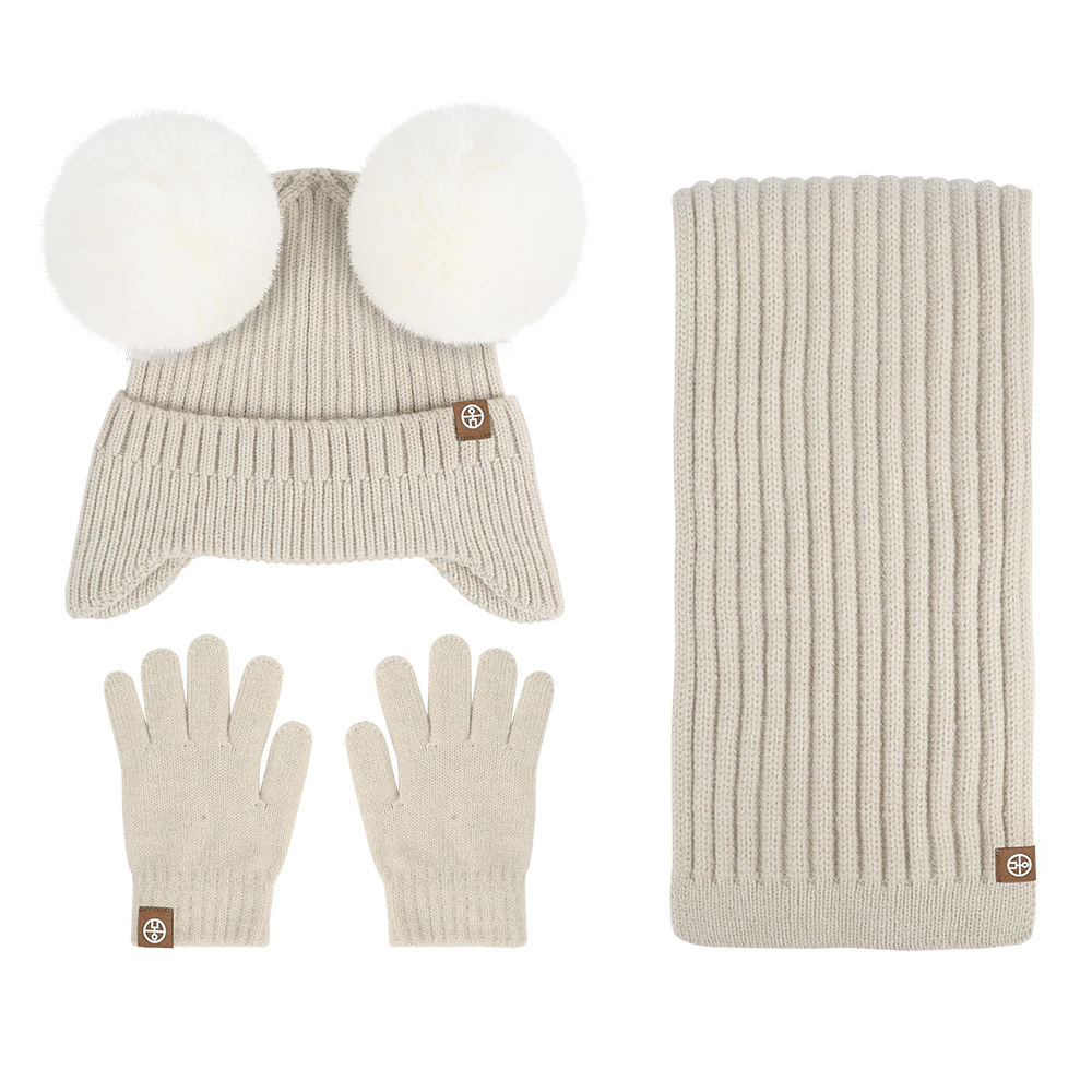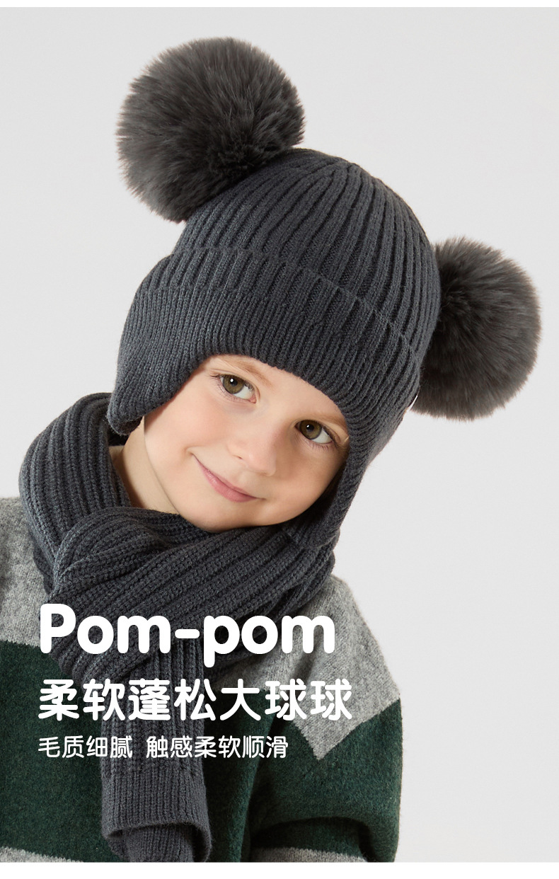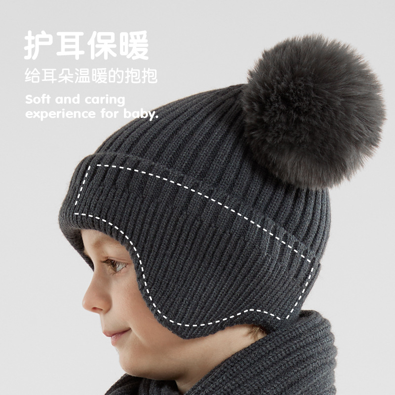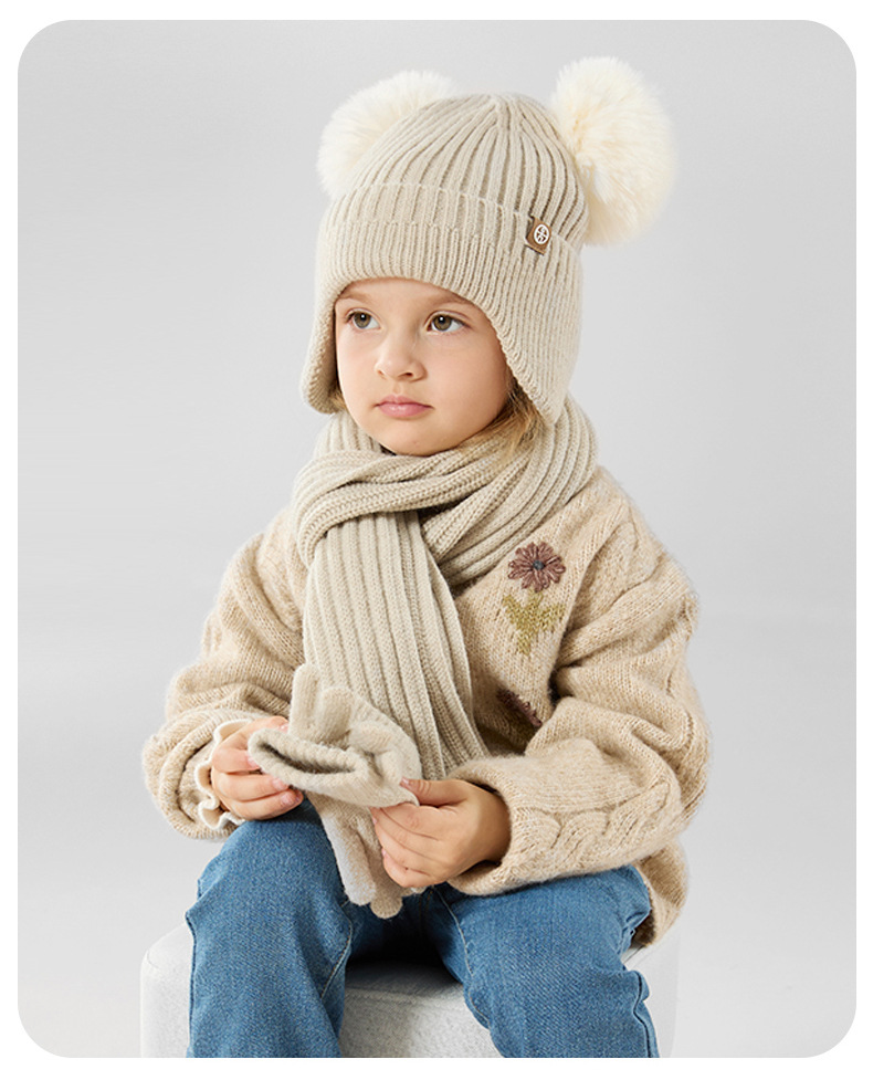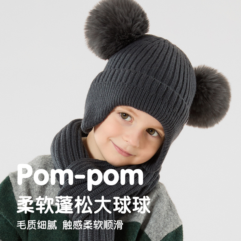 儿童帽子围巾手套三件套冬季保暖防寒毛球护耳帽子儿童围巾三件套
