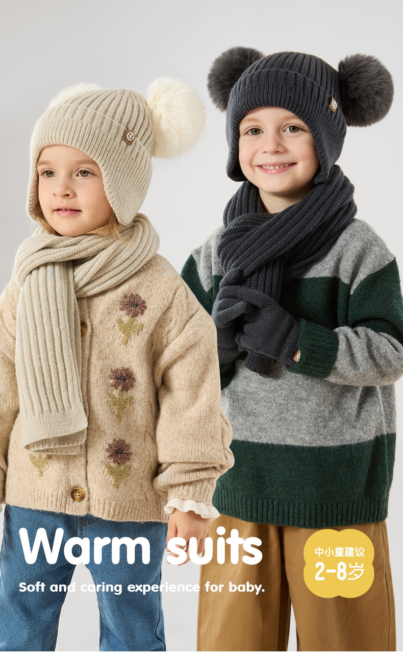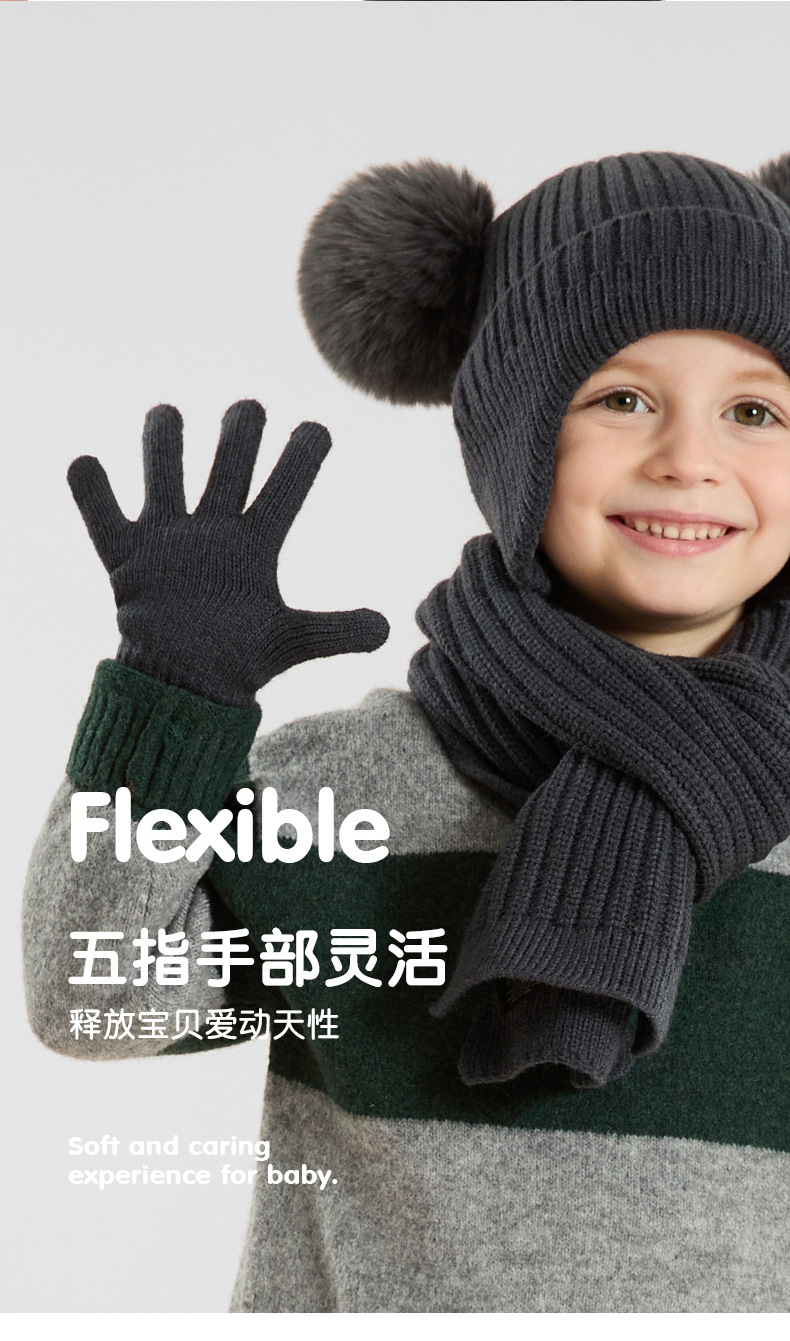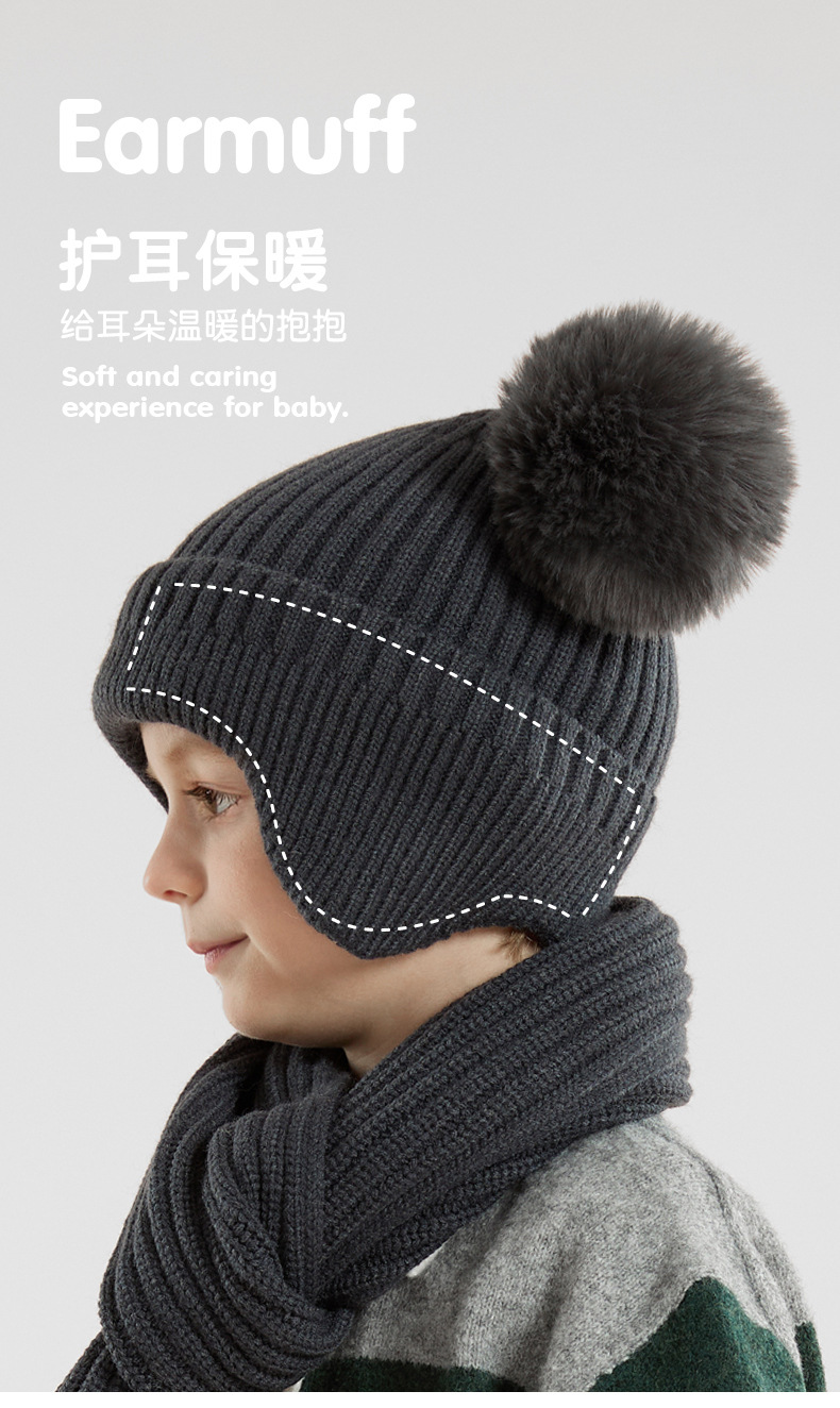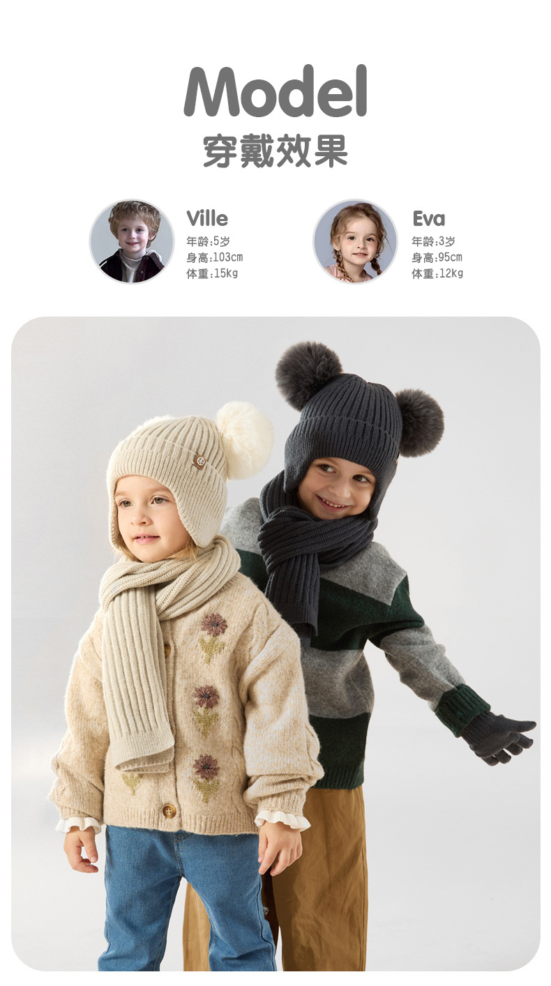 儿童帽子围巾手套三件套冬季保暖防寒毛球护耳帽子儿童围巾三件套