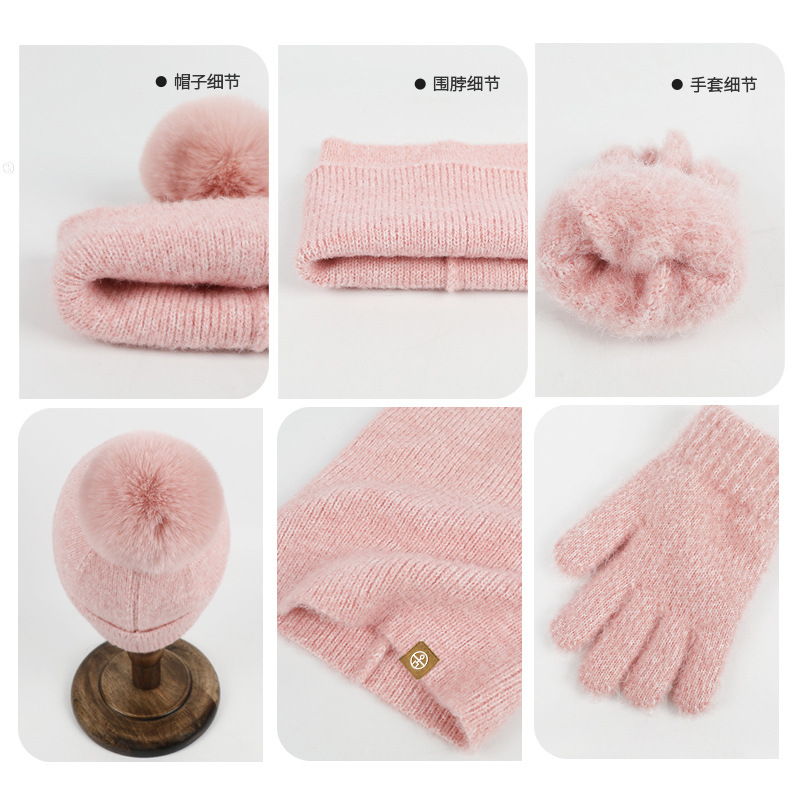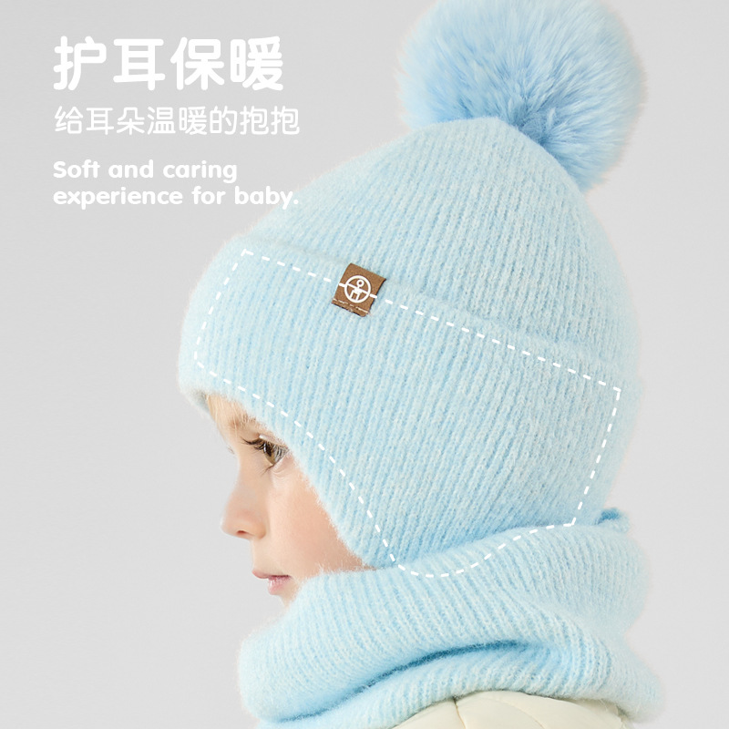 儿童围脖保暖三件套冬季婴幼儿针织毛球护耳帽子围脖手套三件套装