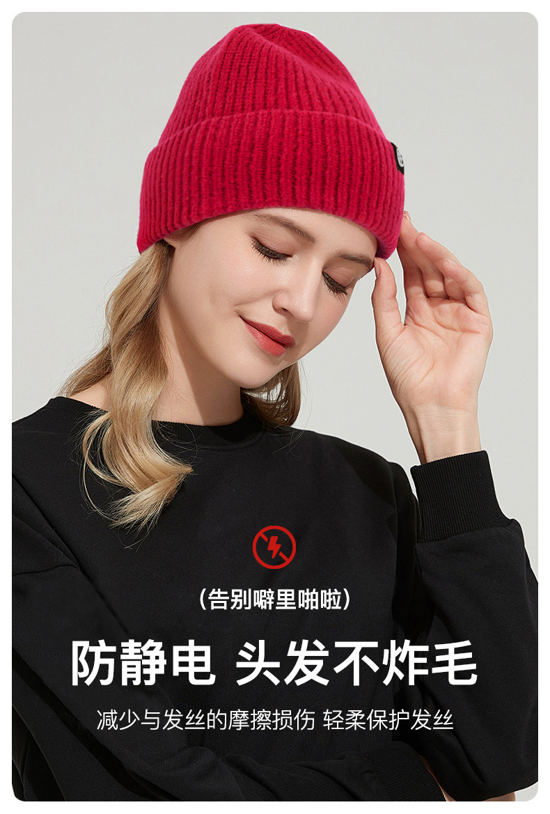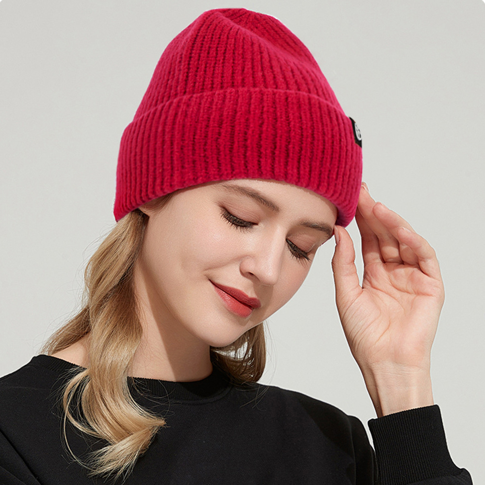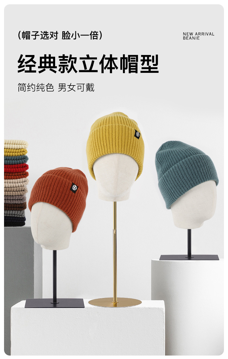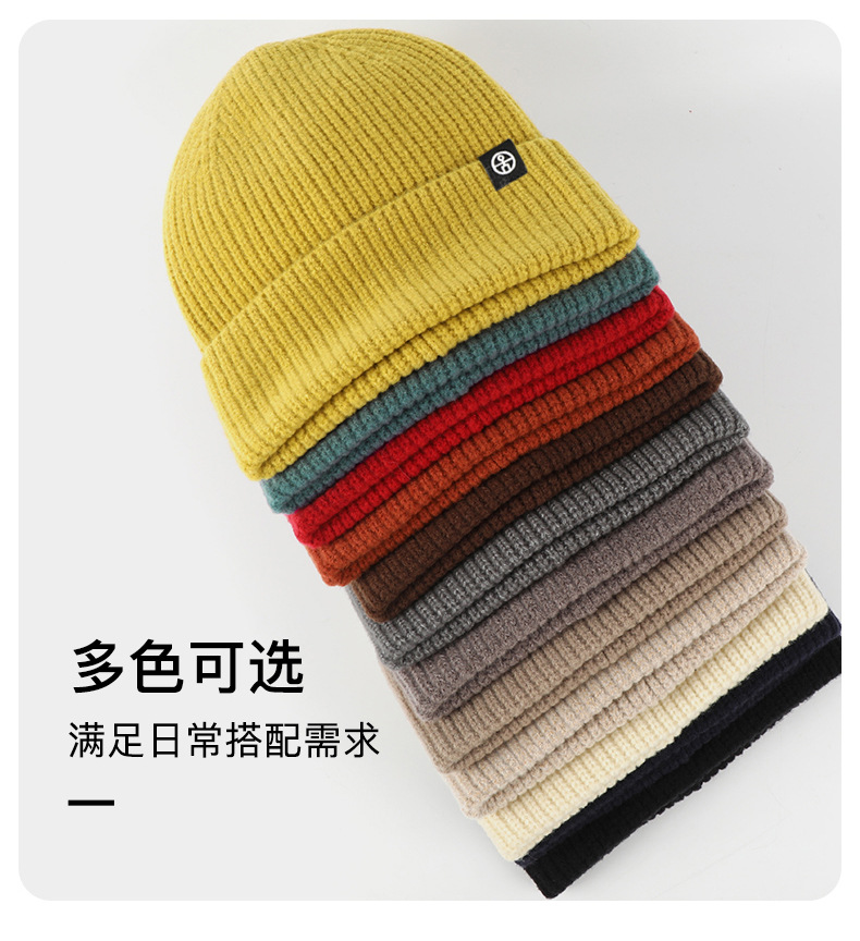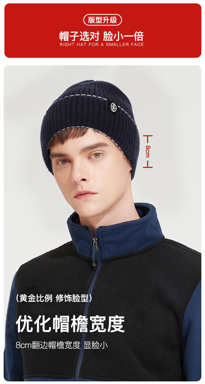德绒针织帽秋冬季保暖针织帽欧美冷帽户外加厚防寒纯色翻边毛线帽