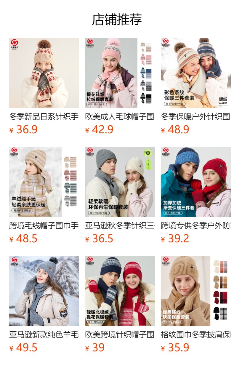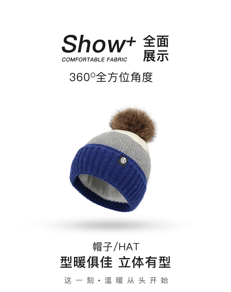 冬季日系撞色毛球帽子围巾手套三件套装羊毛保暖加厚针织帽三件套