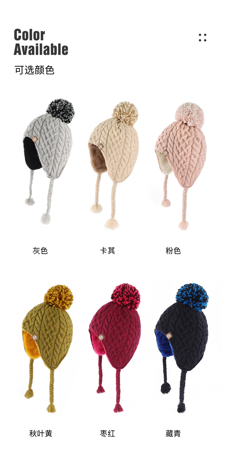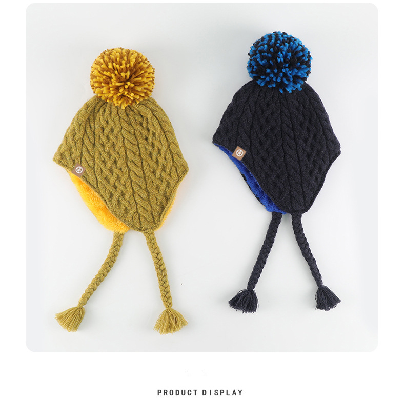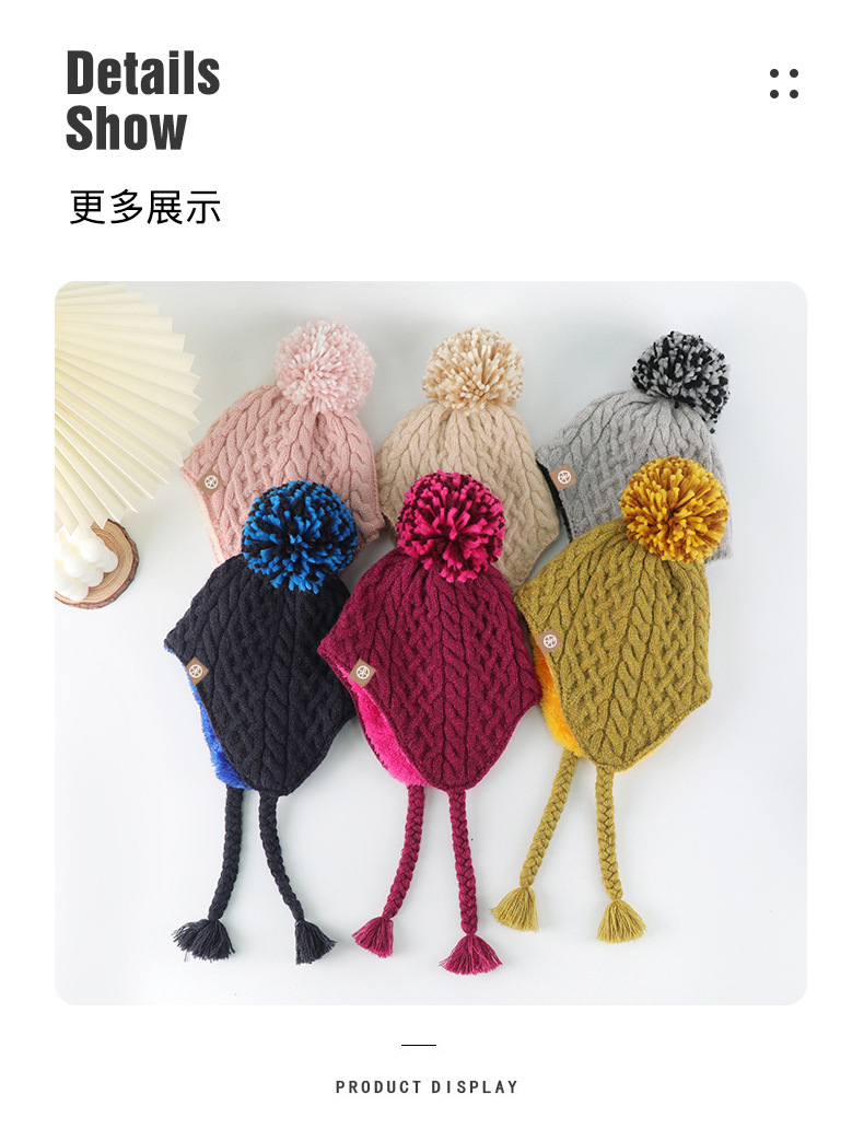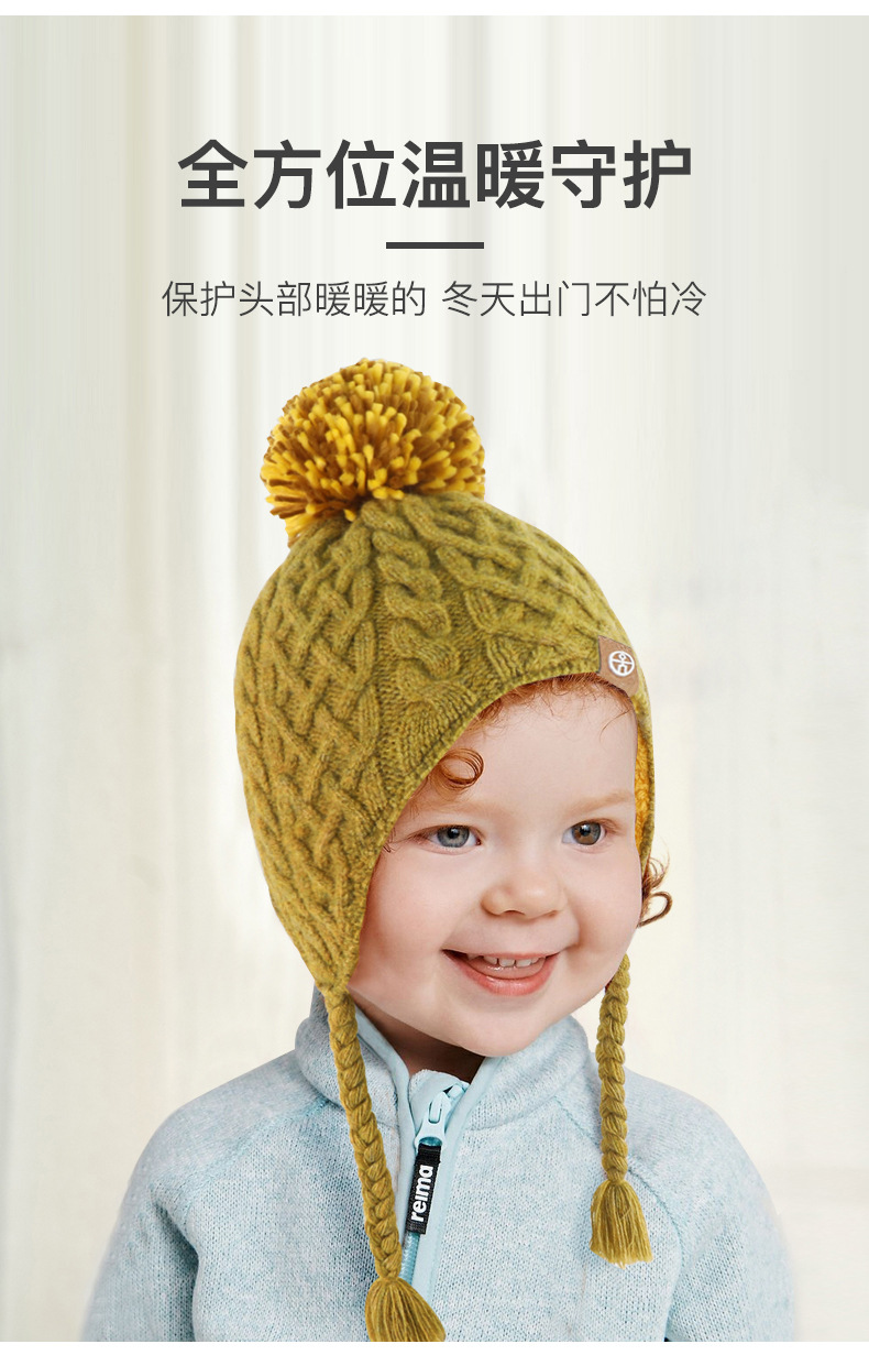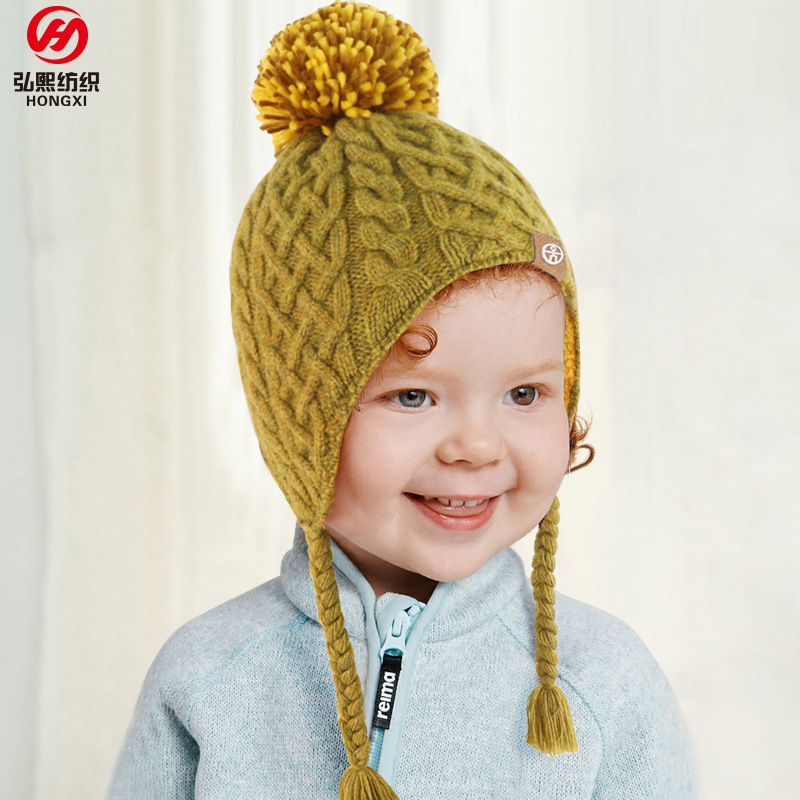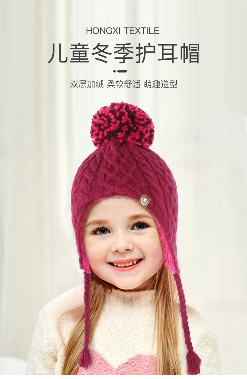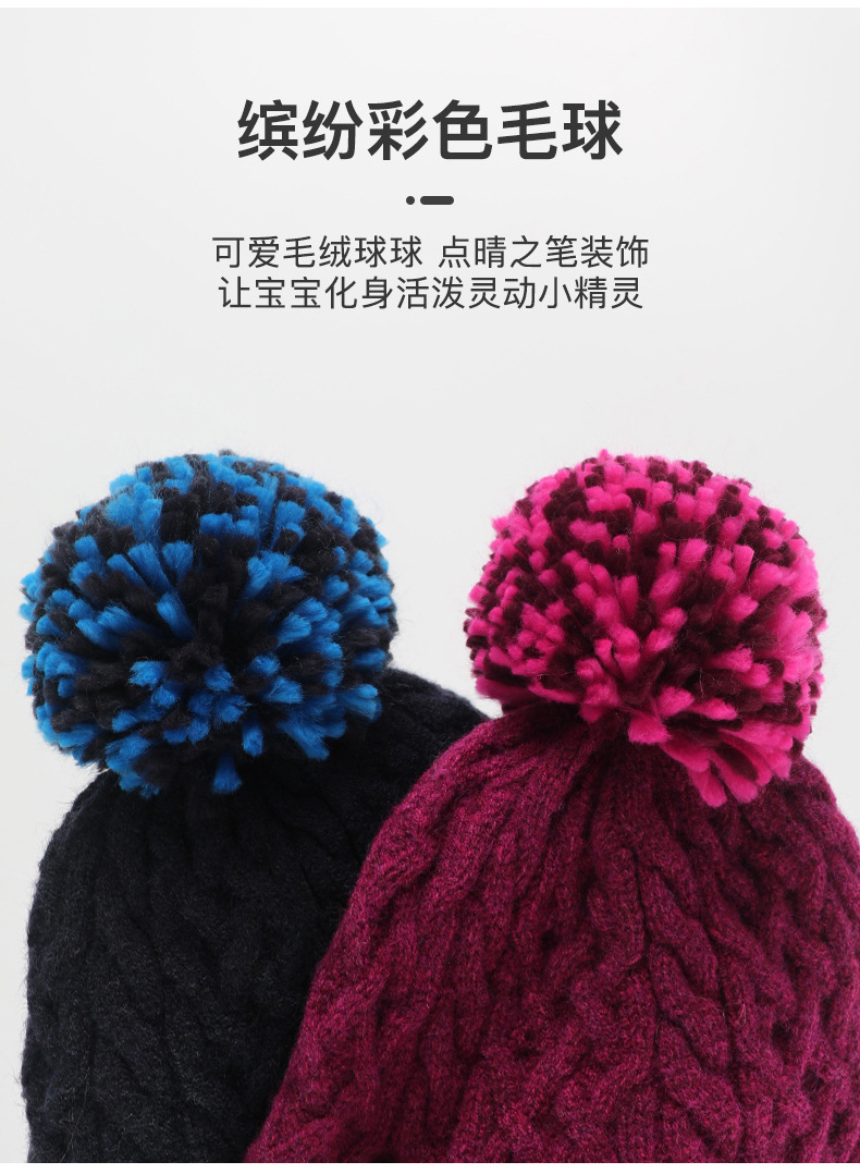 冬季针织保暖护耳帽儿童帽子女童防寒羊毛混纺男童加绒加厚毛球帽