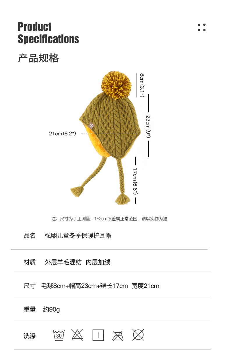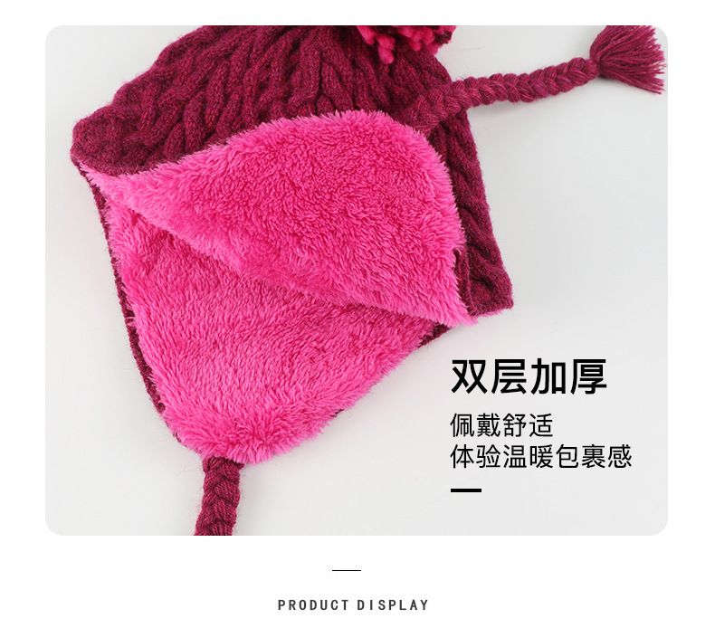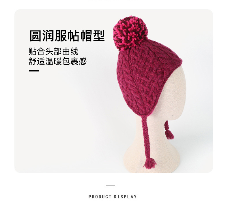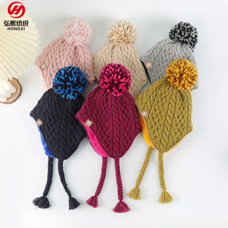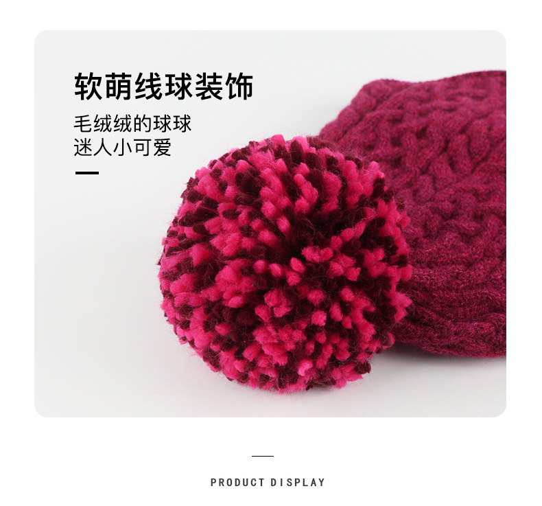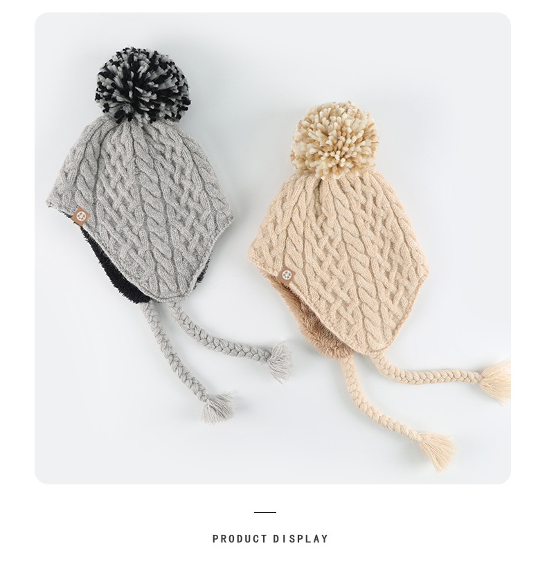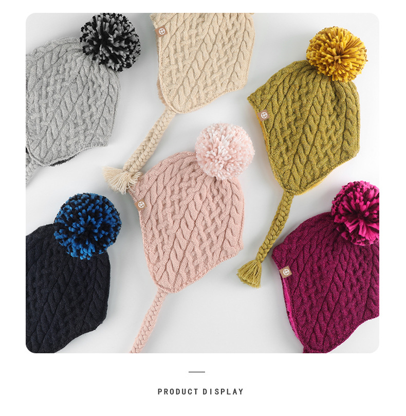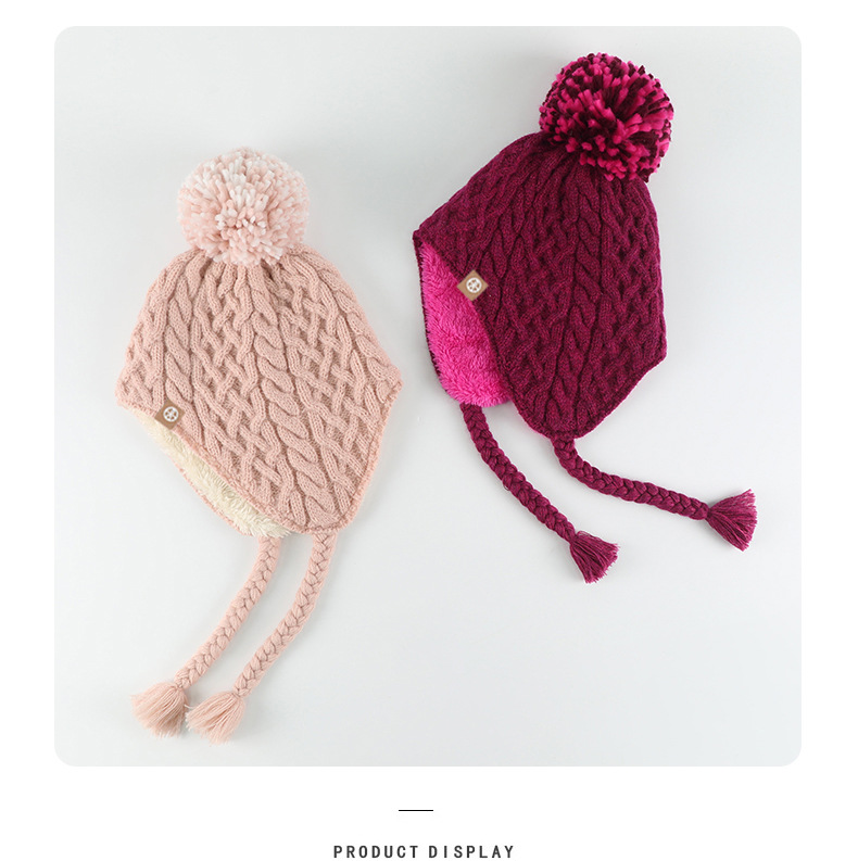 冬季针织保暖护耳帽儿童帽子女童防寒羊毛混纺男童加绒加厚毛球帽