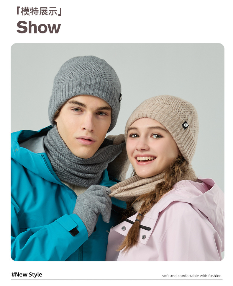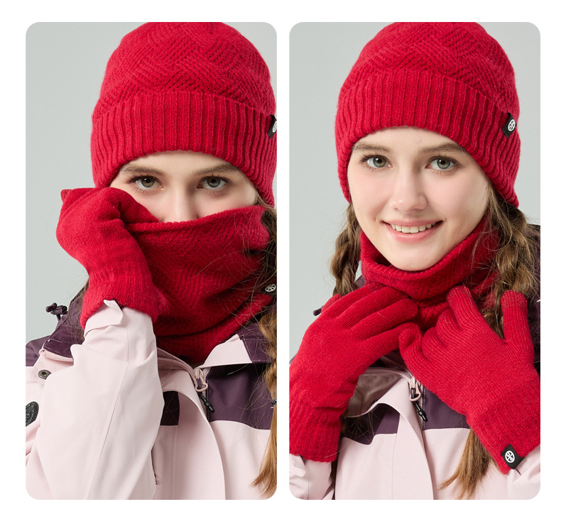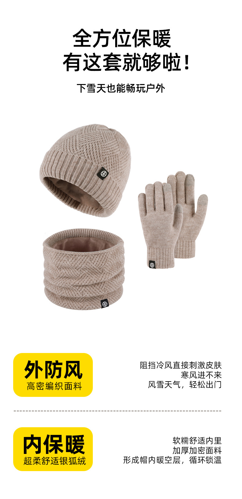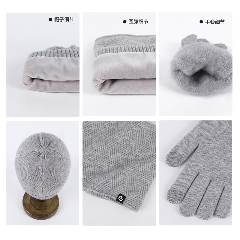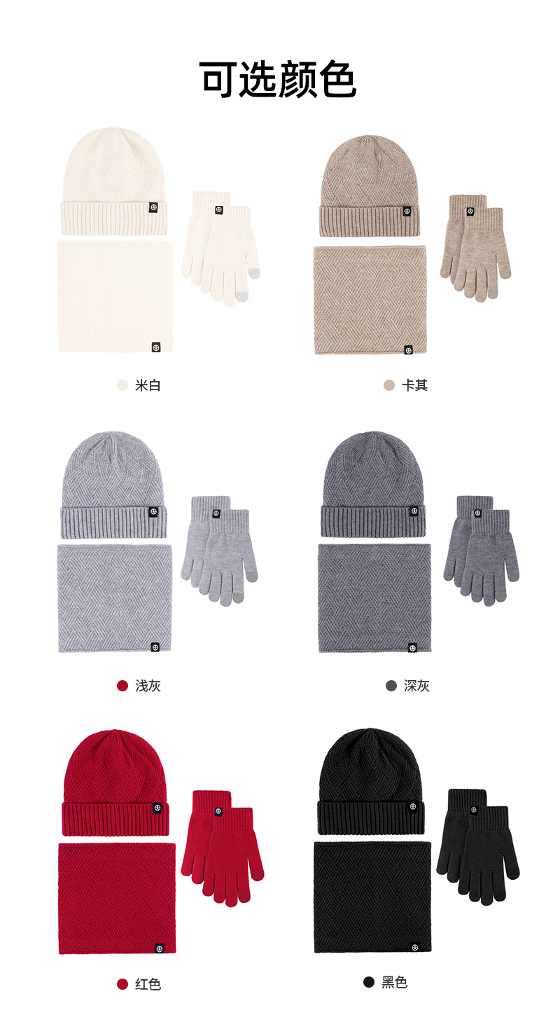 冬季围脖保暖三件套帽子围巾手套三件套针织加绒加厚防寒毛线套装