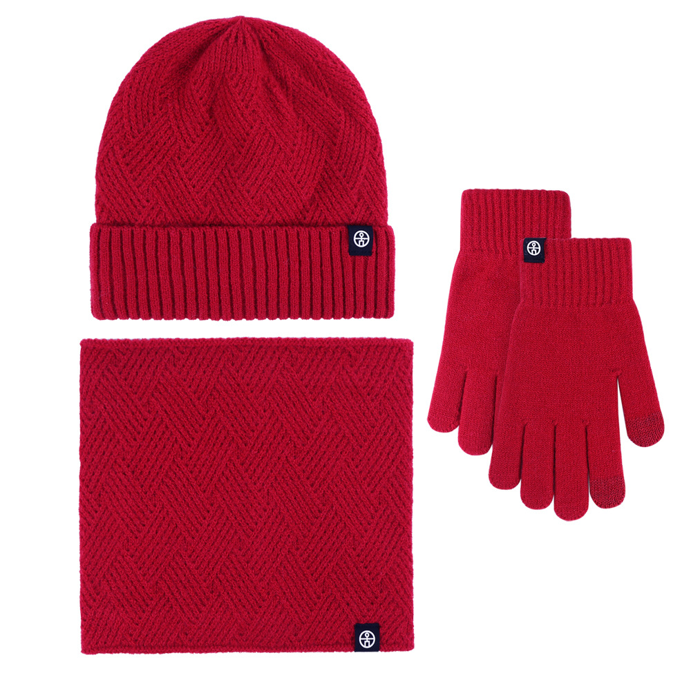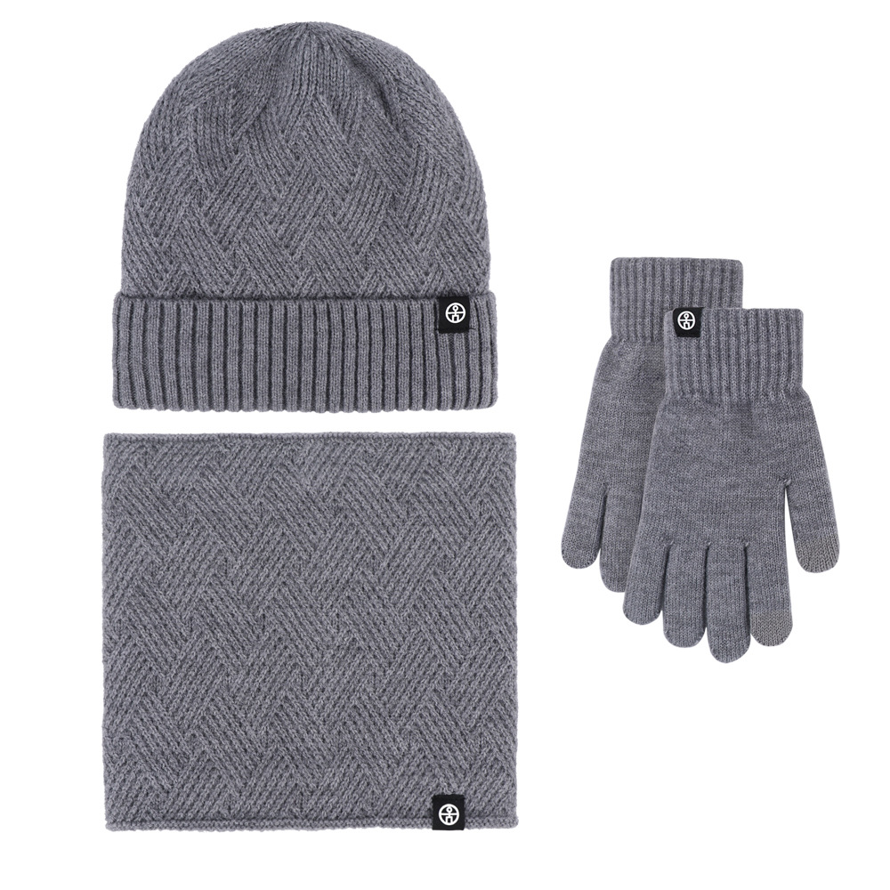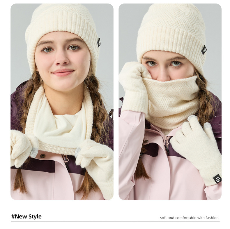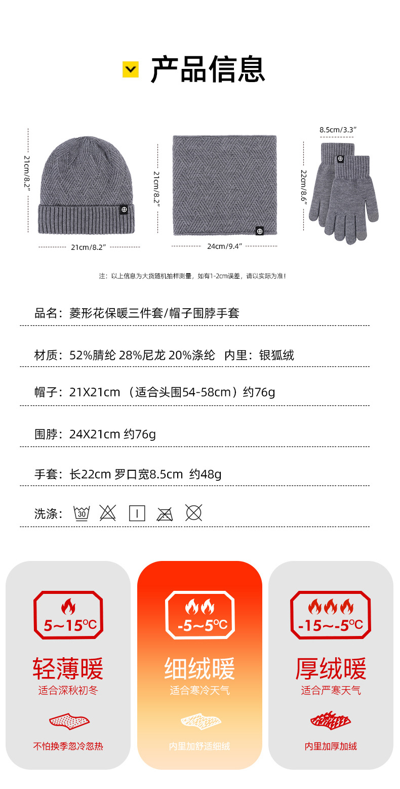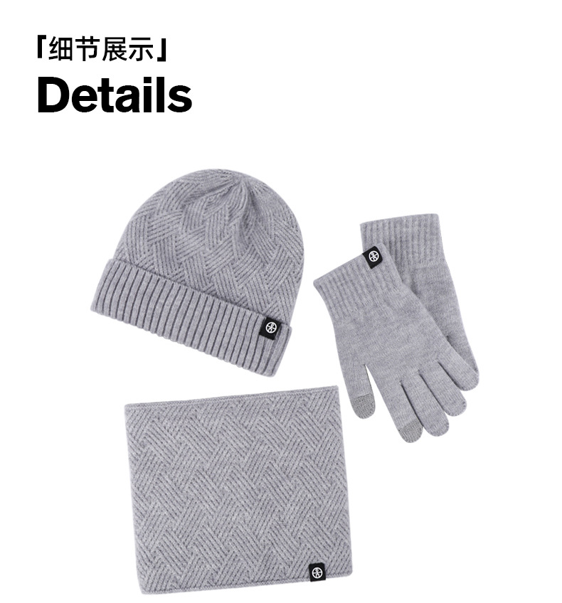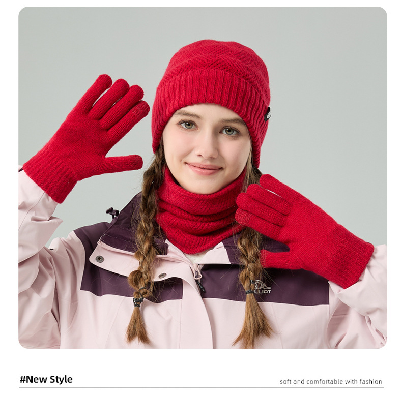 冬季围脖保暖三件套帽子围巾手套三件套针织加绒加厚防寒毛线套装