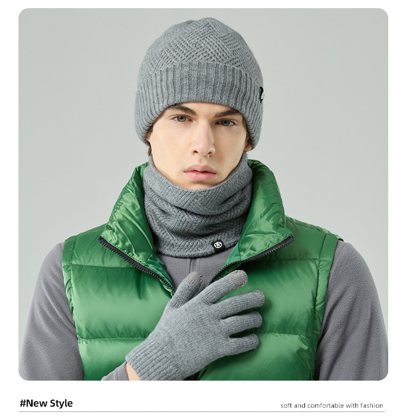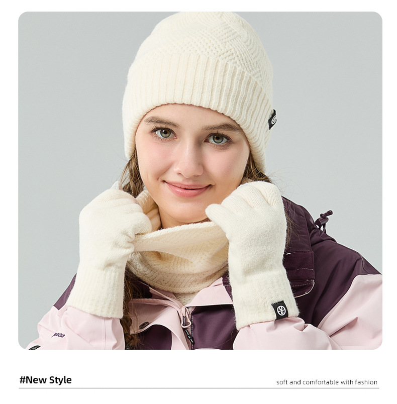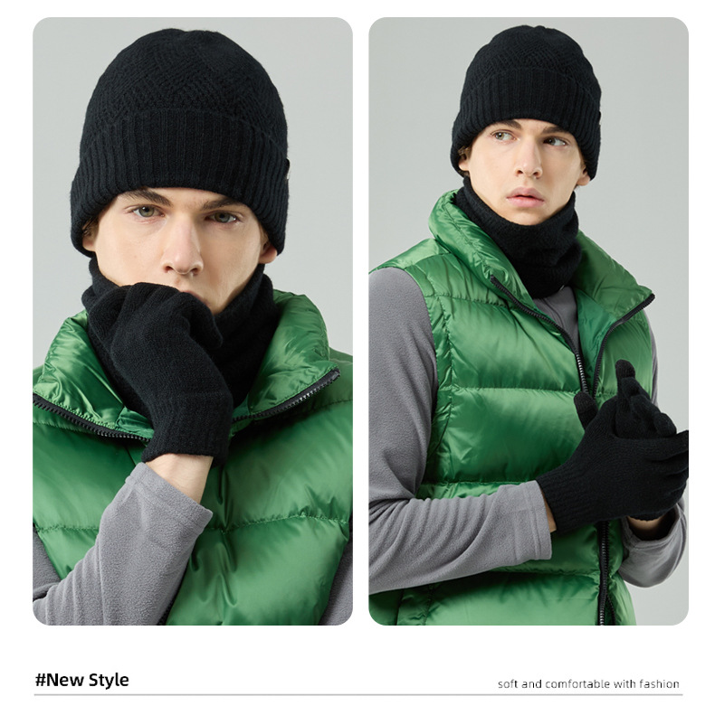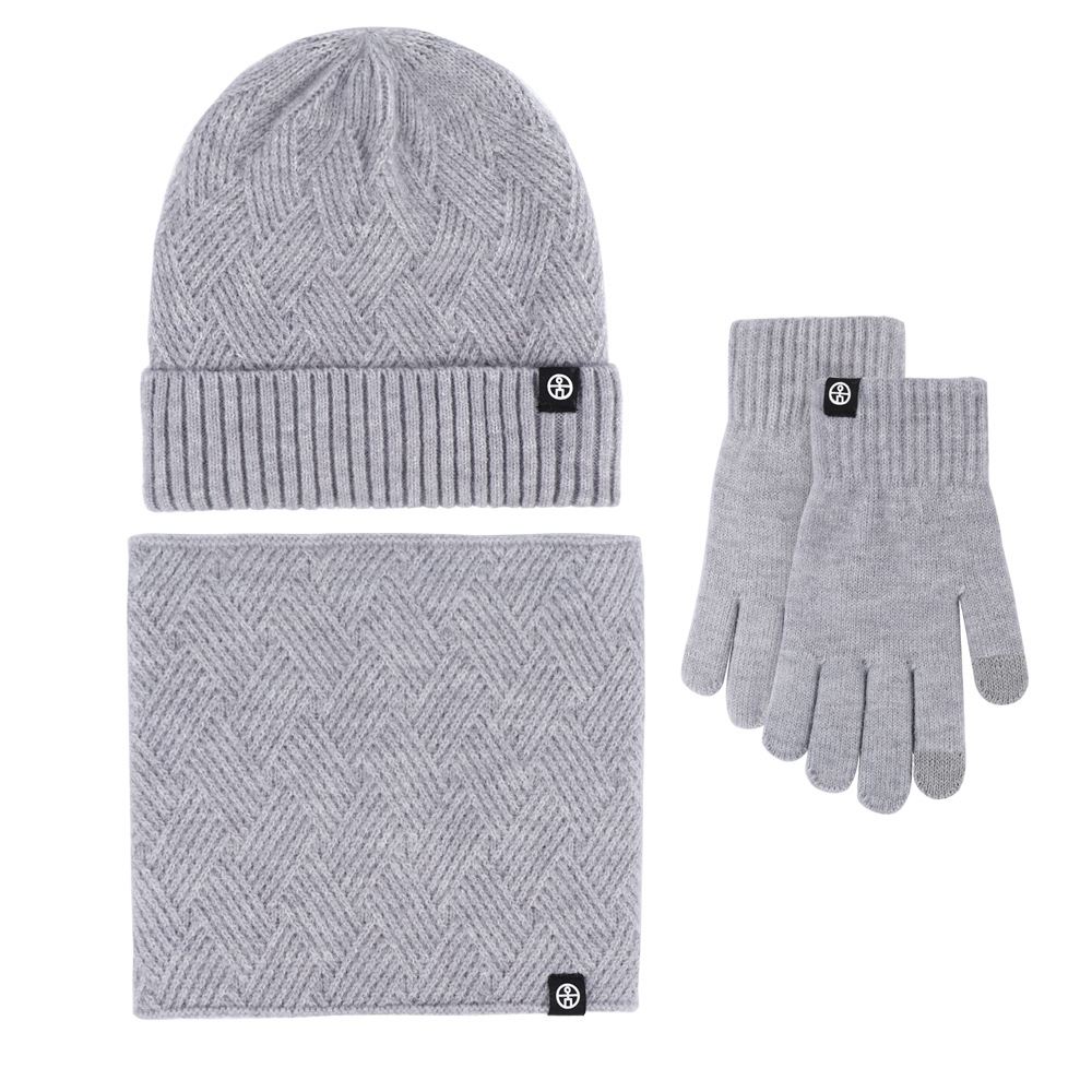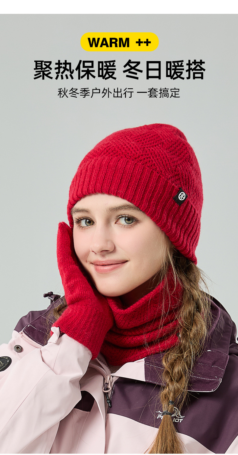 冬季围脖保暖三件套帽子围巾手套三件套针织加绒加厚防寒毛线套装