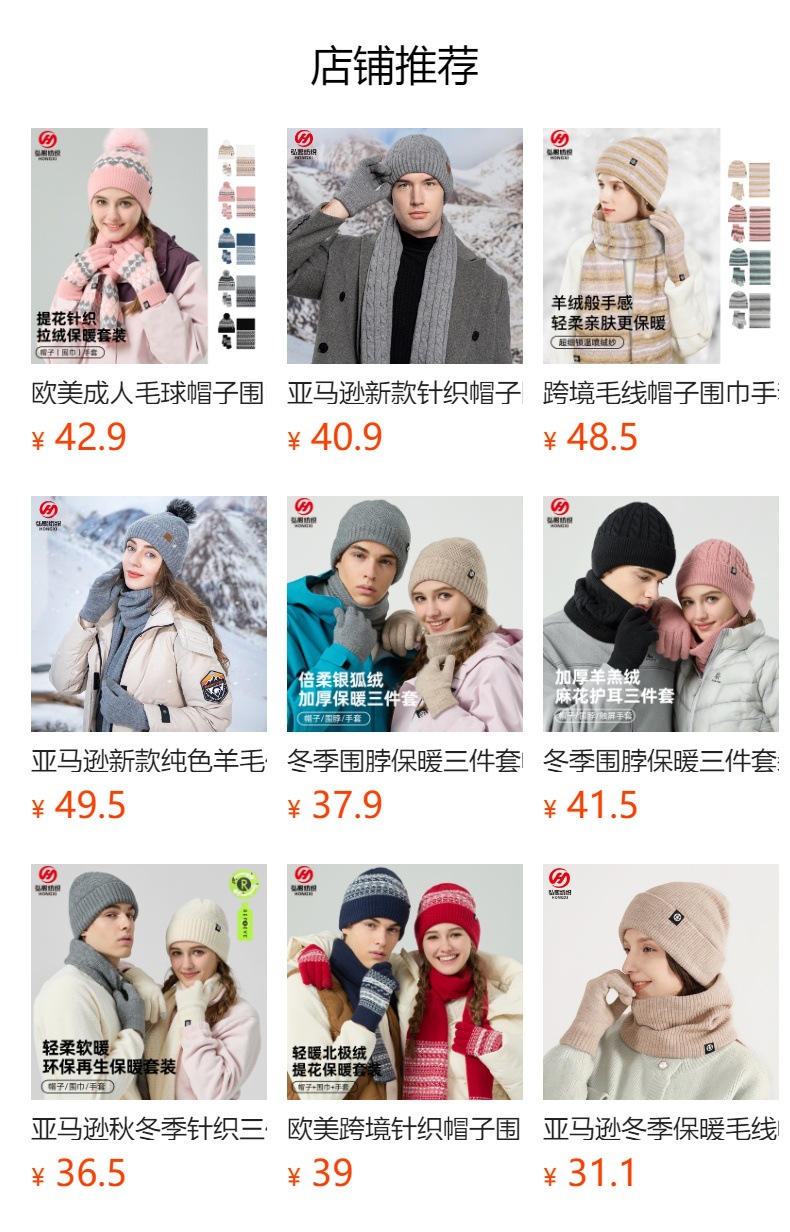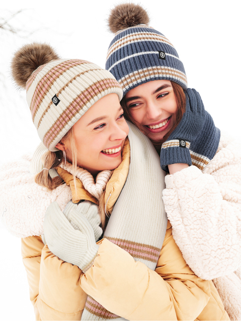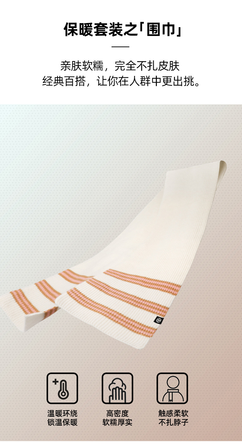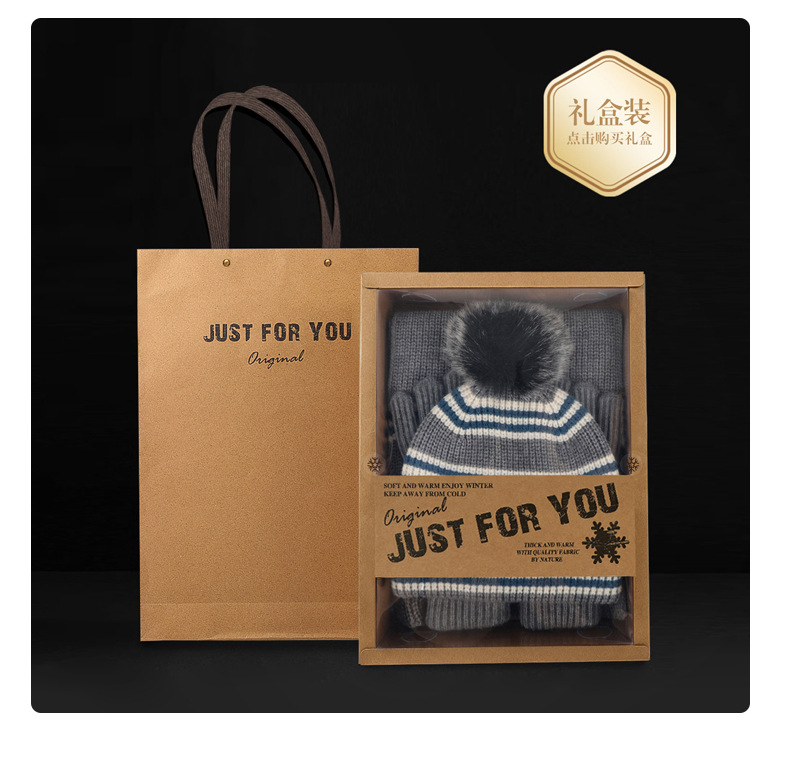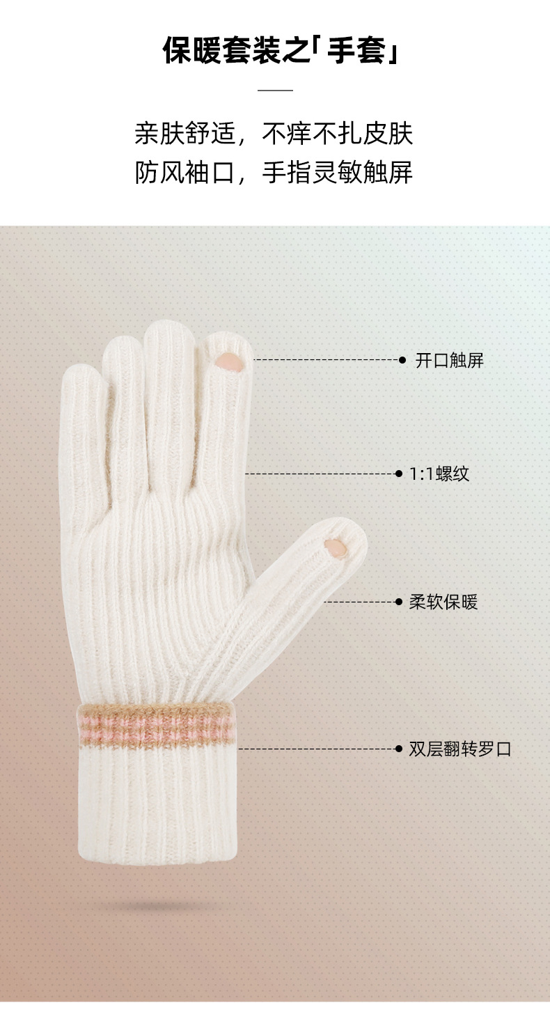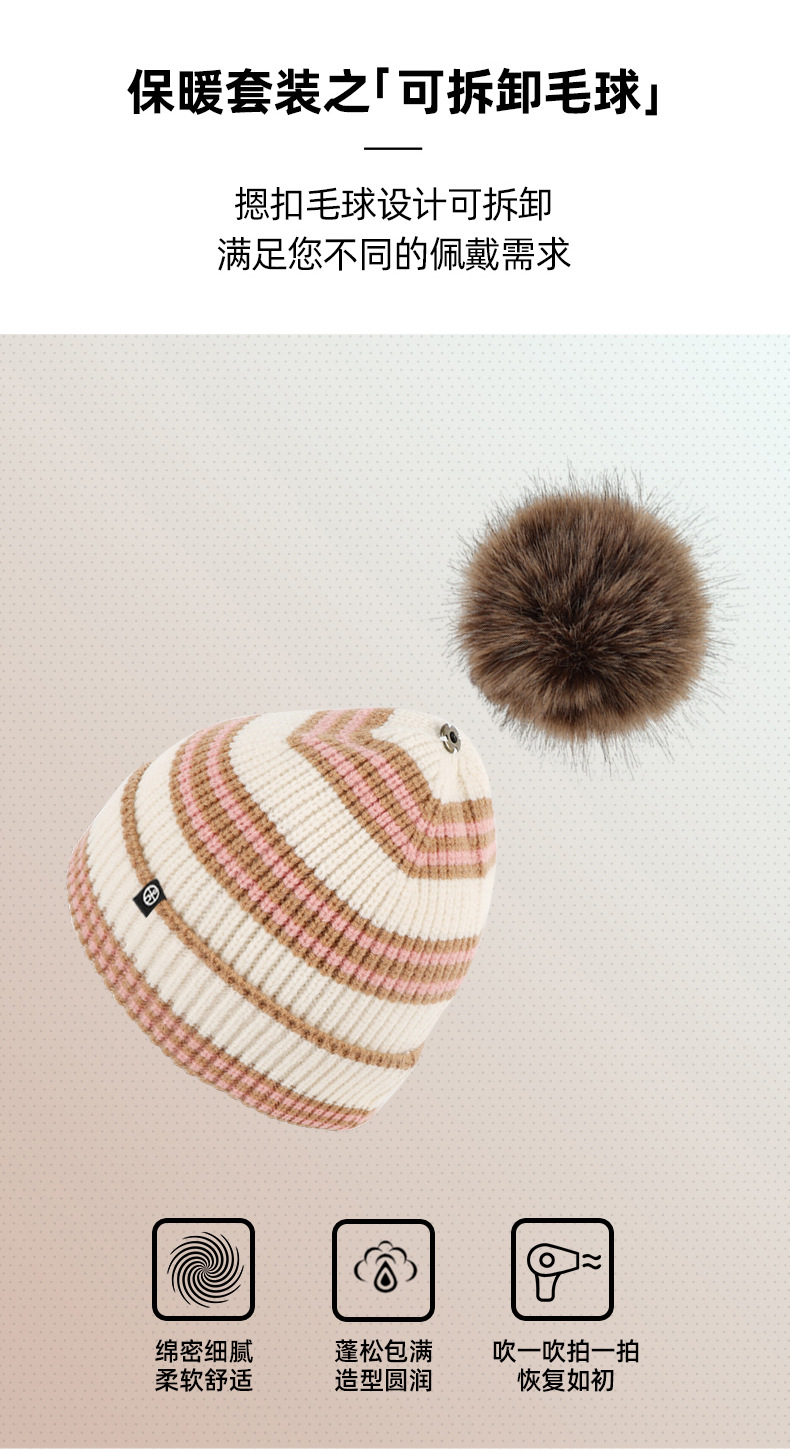 冬季保暖户外针织围巾三件套帽子条纹护耳毛球帽子围巾手套三件套