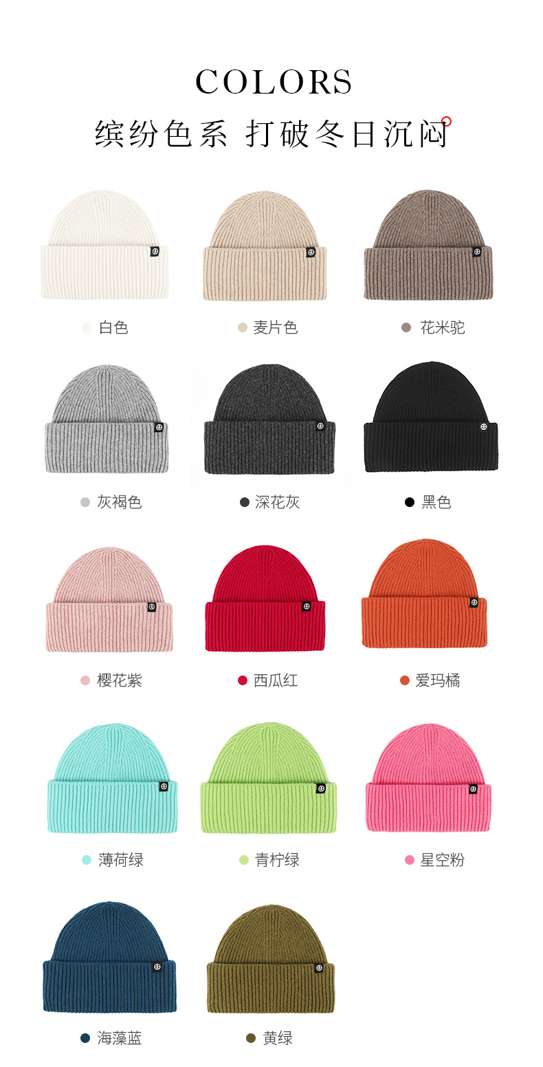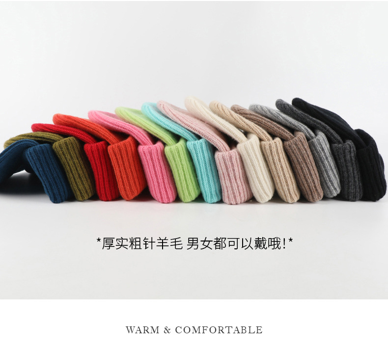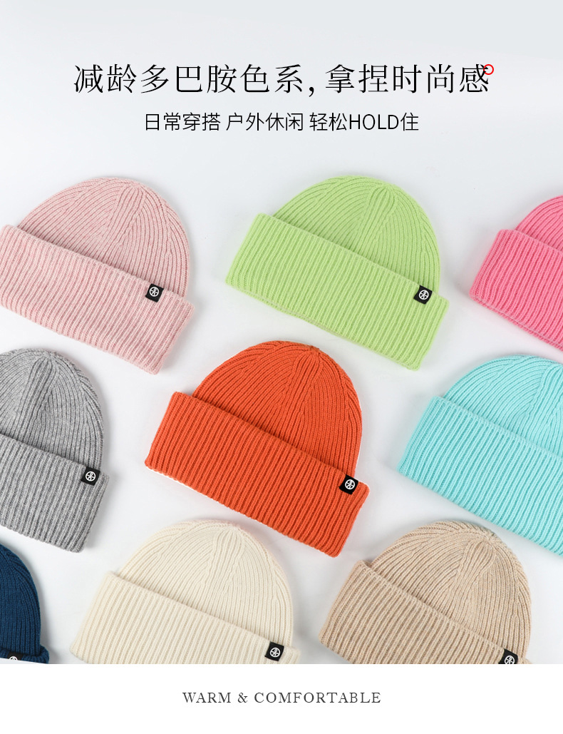糖果色全羊毛针织帽ins风冬季户外加厚翻边保暖帽子防寒护耳冷帽