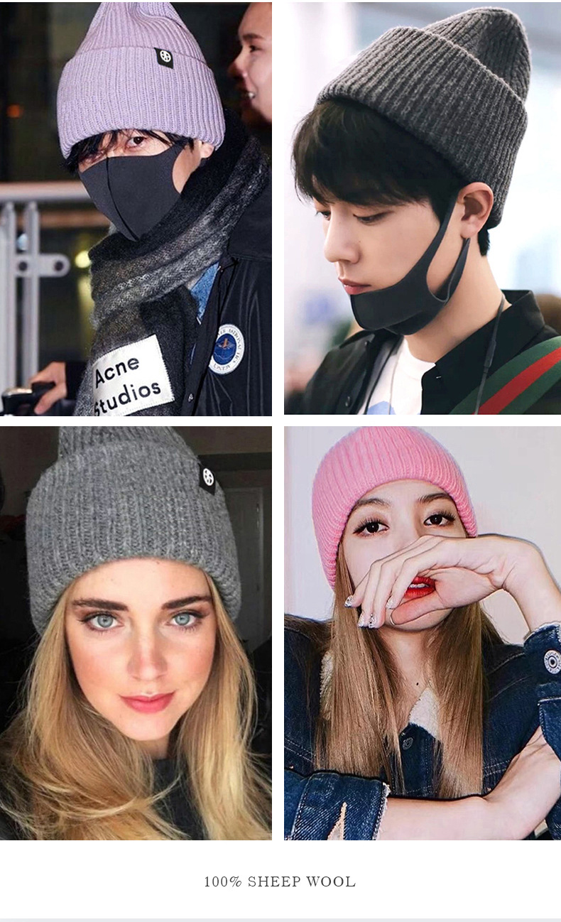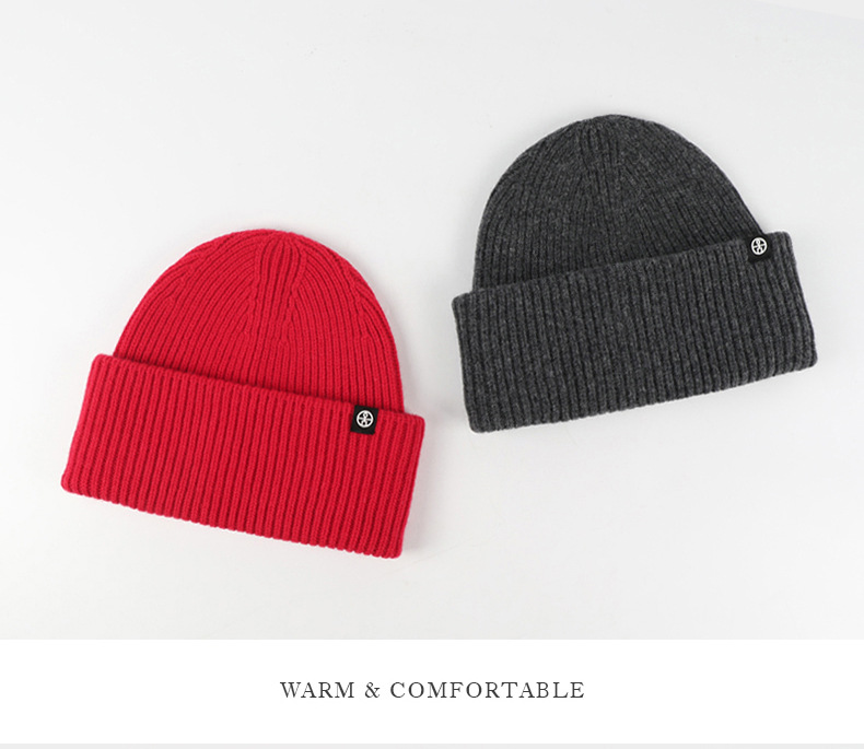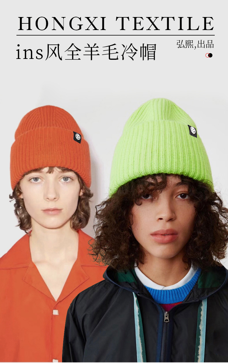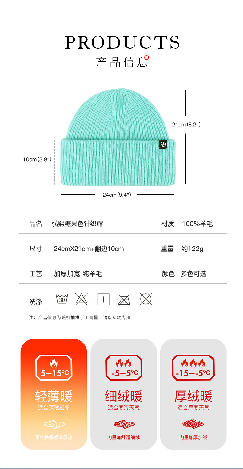 糖果色全羊毛针织帽ins风冬季户外加厚翻边保暖帽子防寒护耳冷帽