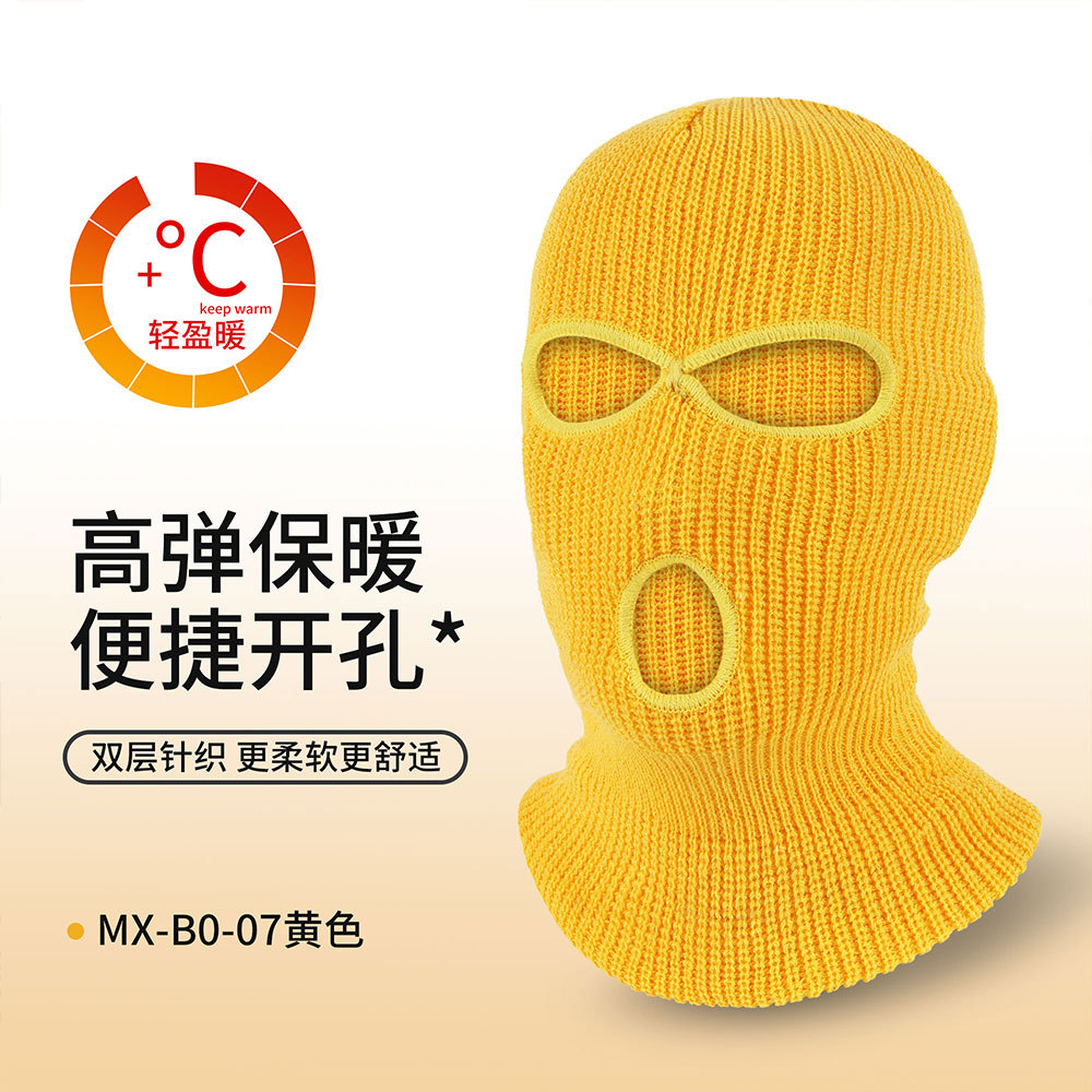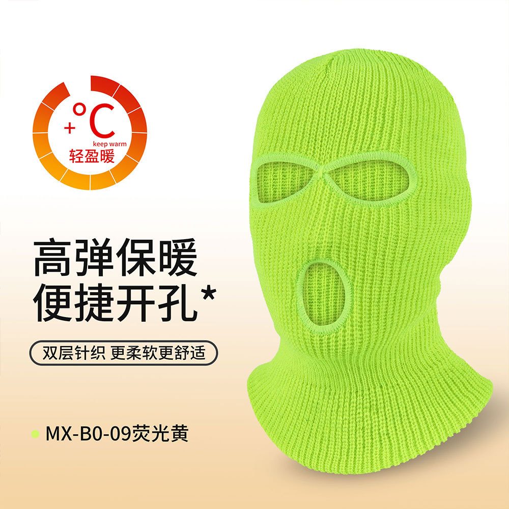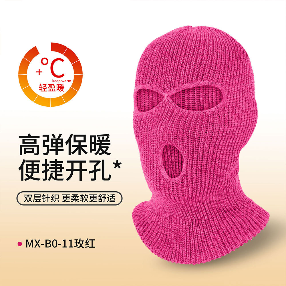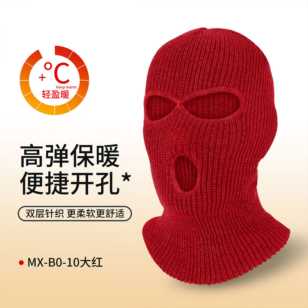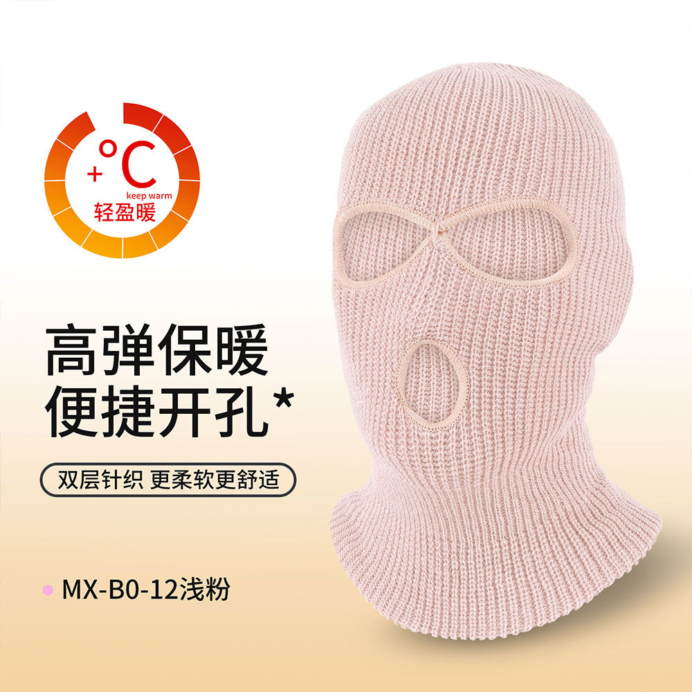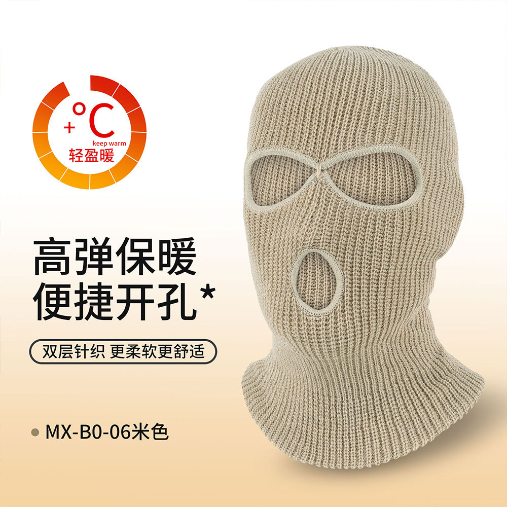 瑞东三孔保暖面罩滑雪双层针织头套防寒巴拉克拉法帽骑行毛线帽男