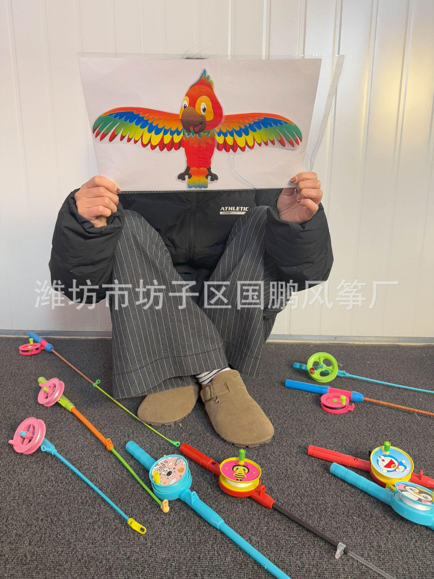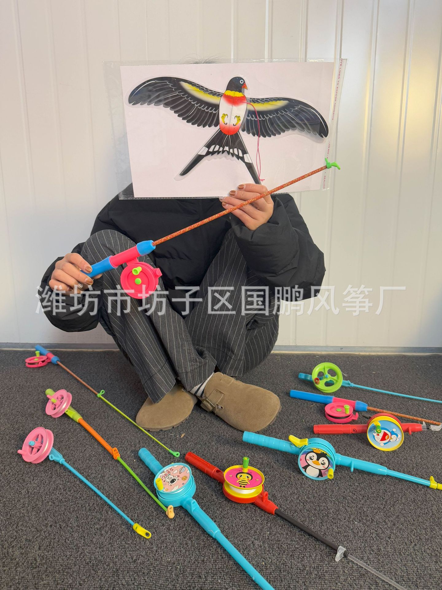 动态风筝批发儿童卡通易飞翅膀抖动鱼竿风筝摆摊玩具燕子蝴蝶鱼鹰