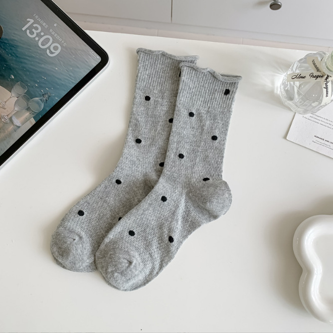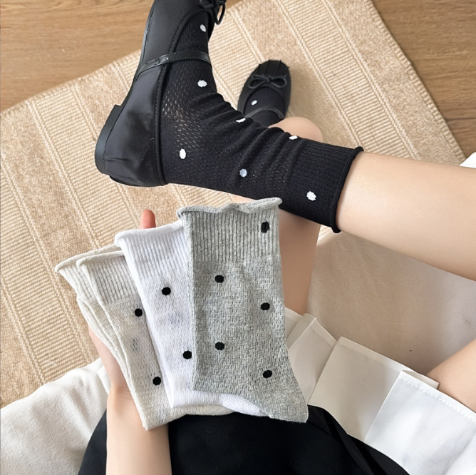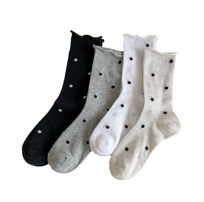 夏季薄款卡丝袜子女 精梳棉波点中筒女袜 网眼透气长袜简约休闲袜