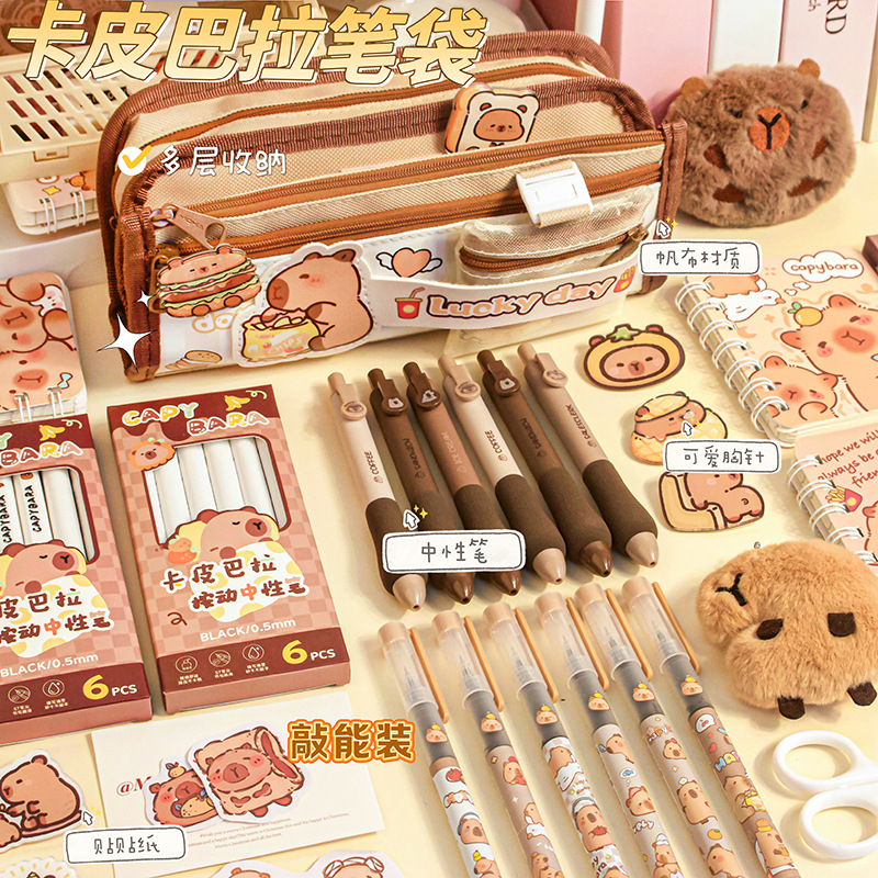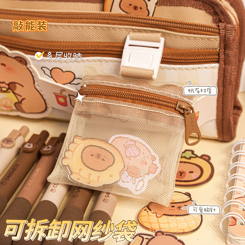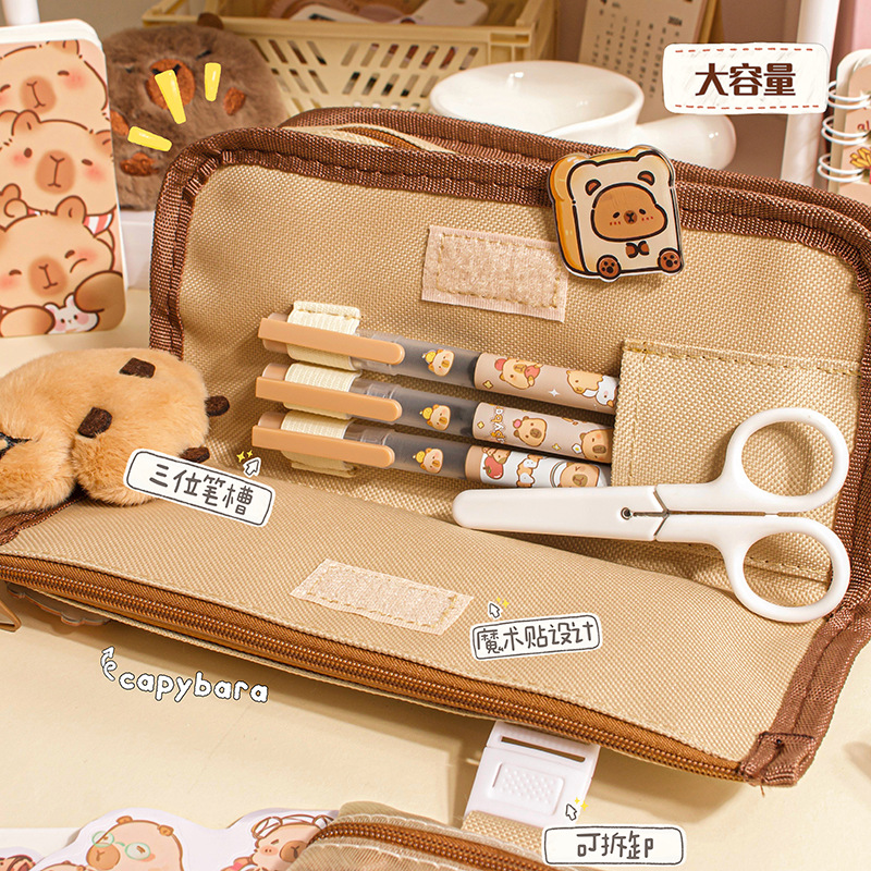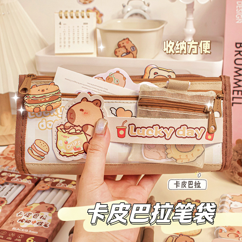 卡皮巴拉大容量笔袋初中生收纳铅笔盒韩版简约高颜值文具盒女孩款