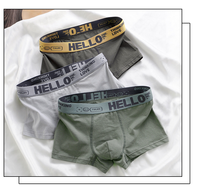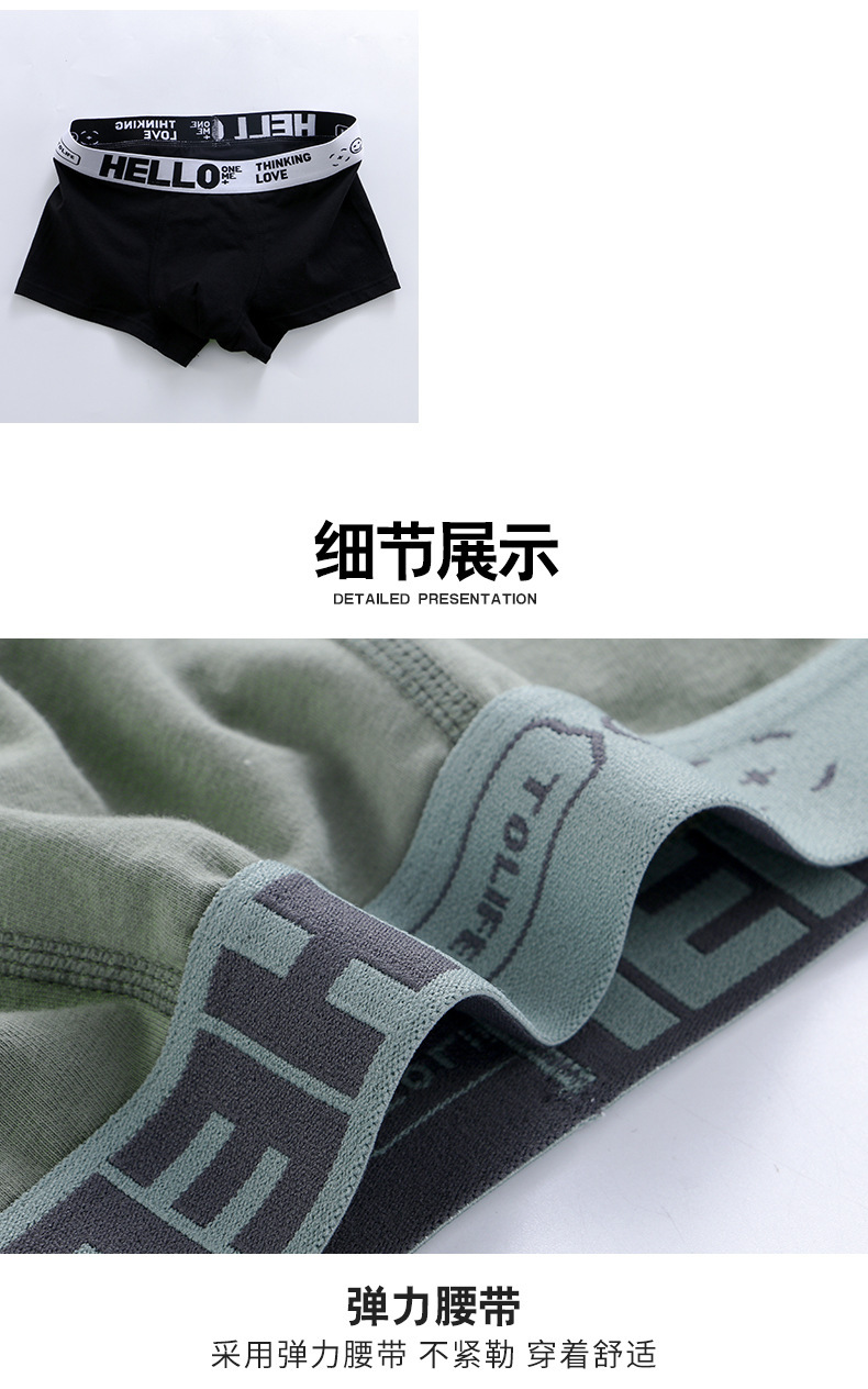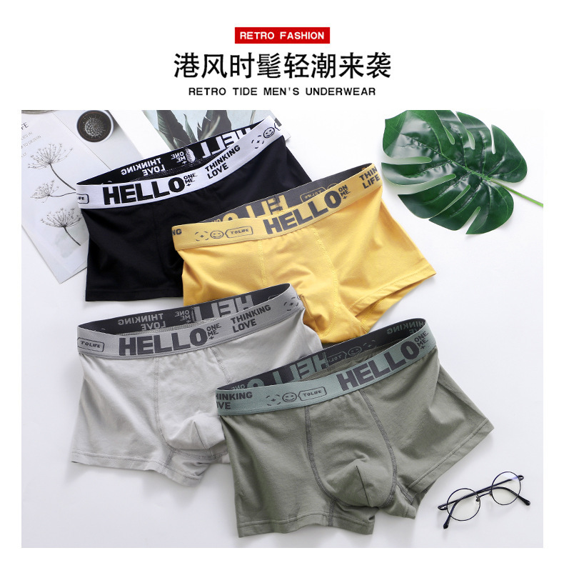HELLO男士牛奶丝平角内裤中腰舒适冰丝撞色高弹腰头潮流四角内裤