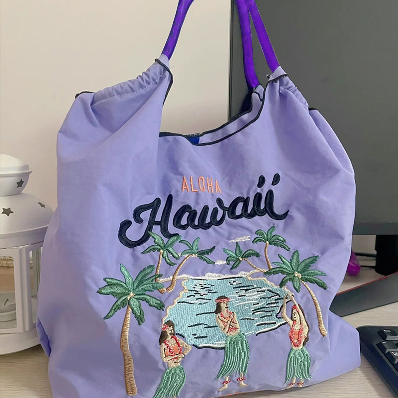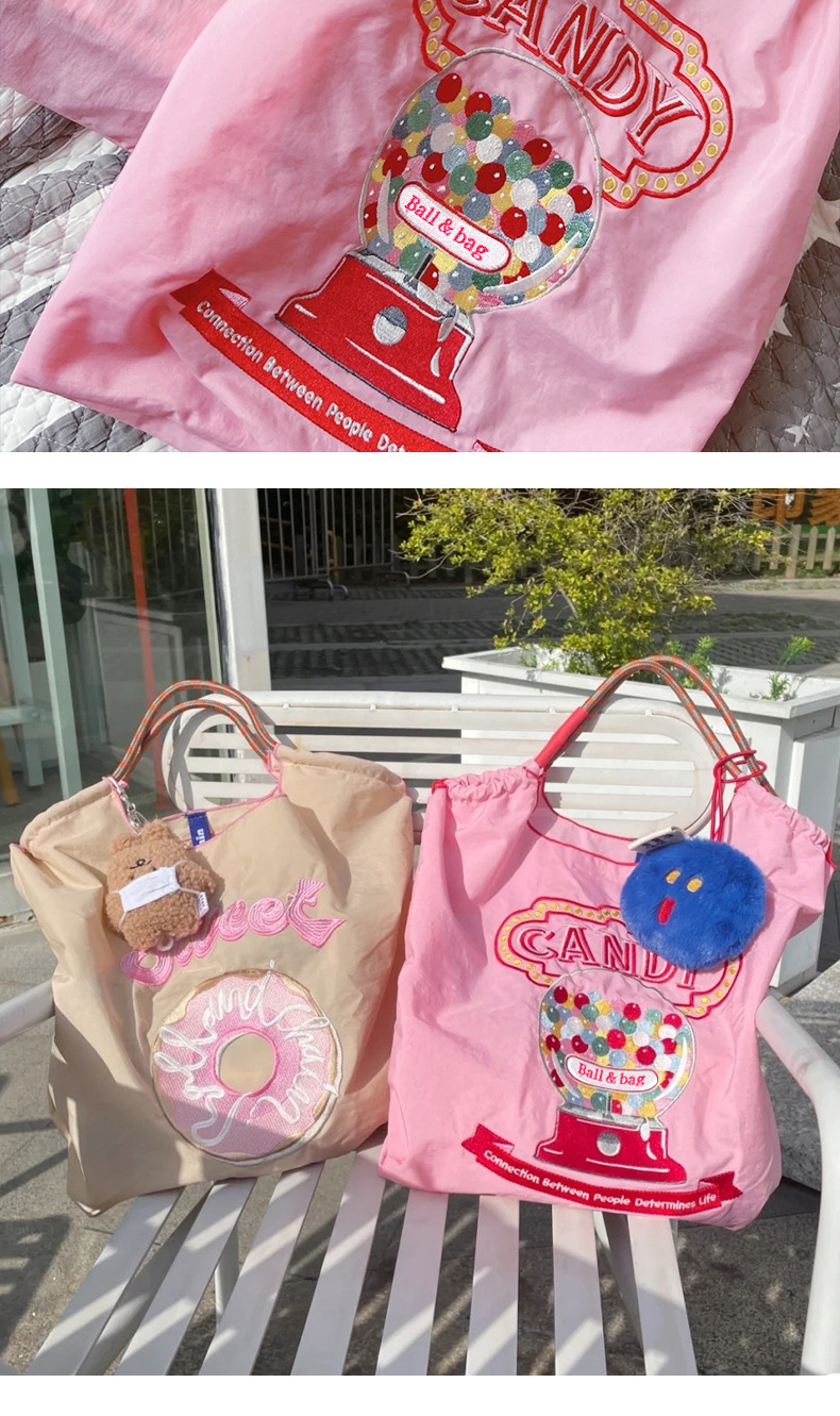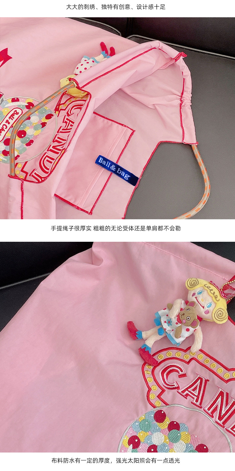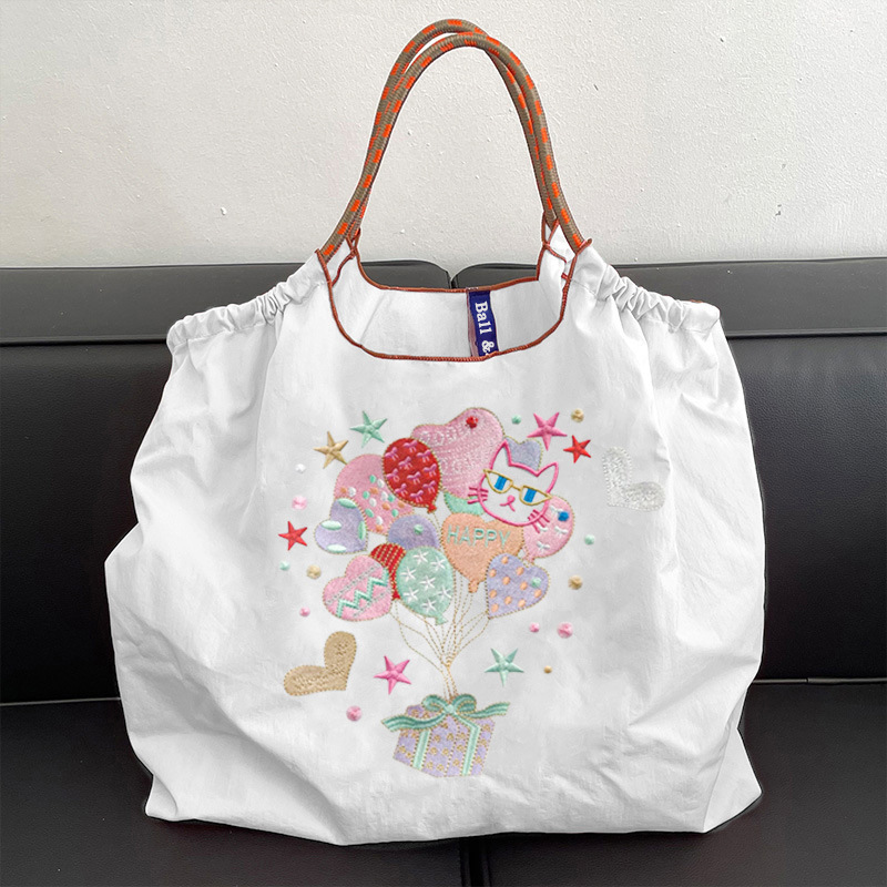 ball chain日本小众刺绣工厂直销尼龙大容量环保收纳袋单肩手提包