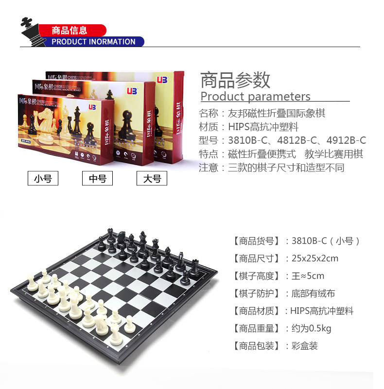 跨境UB磁性国际象棋折叠棋盘磁力棋子chess儿童训练西洋棋外贸单