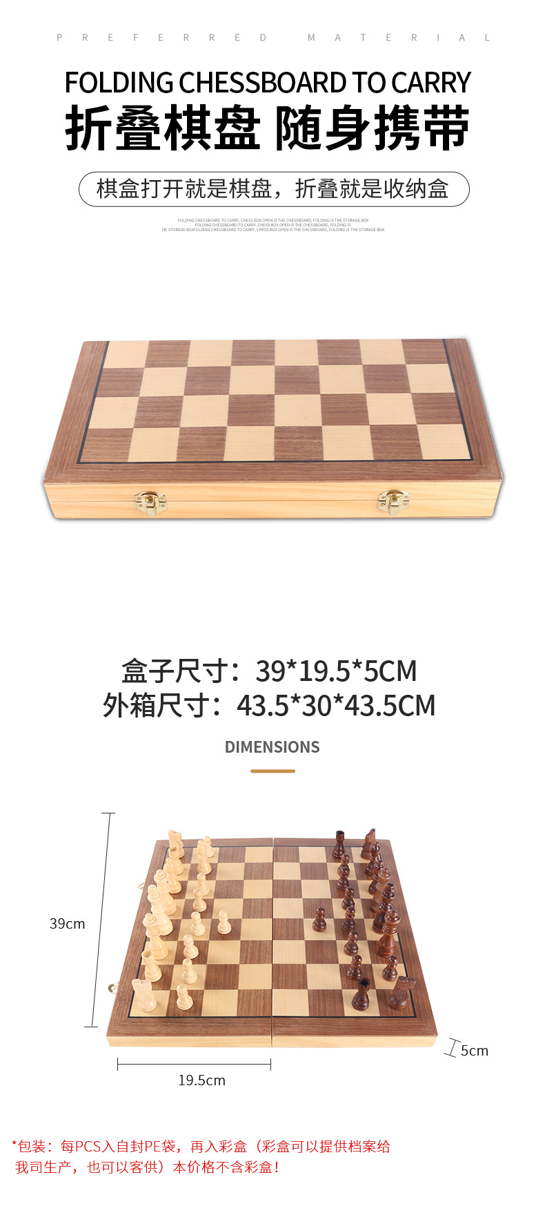 优质国际象棋木制磁性可折叠国际象棋棋盘棋子小学生儿童智力游戏
