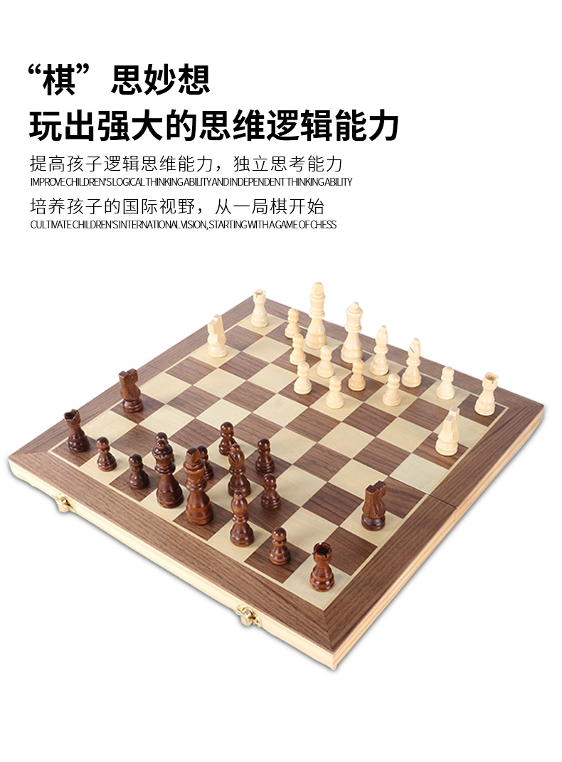 跨境木制国际象棋可折叠磁性象棋竞技益智玩具棋牌游戏亲子互动