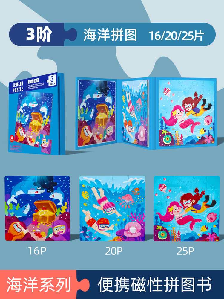 儿童进阶磁性益智拼图3到6岁拼图玩具8-10岁宝宝智力3d立体拼图书