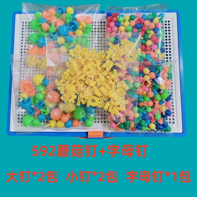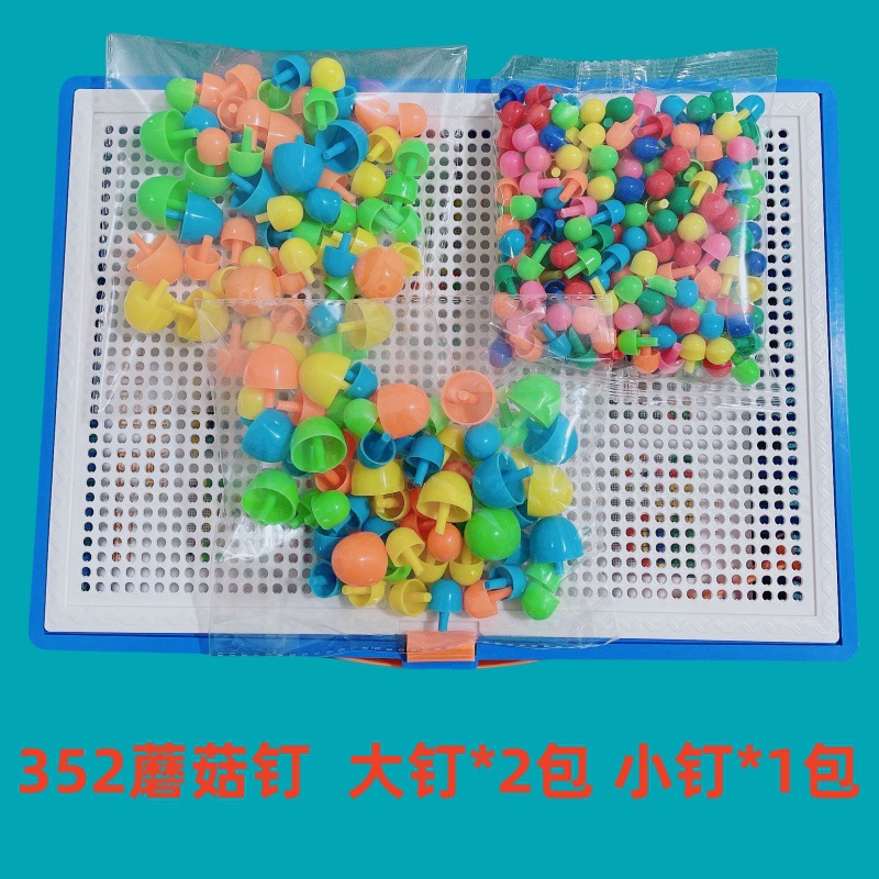 跨境蘑菇钉组合拼插板玩具宝宝益智迷你塑料儿童拼图3-6岁批发