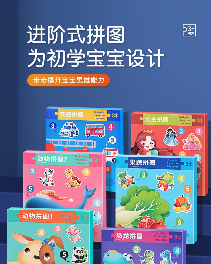异形拼图3到6岁幼儿园儿童宝宝启蒙早教益智纸制卡片拼图玩具