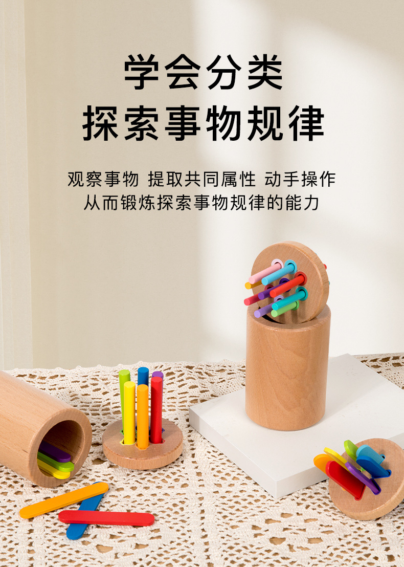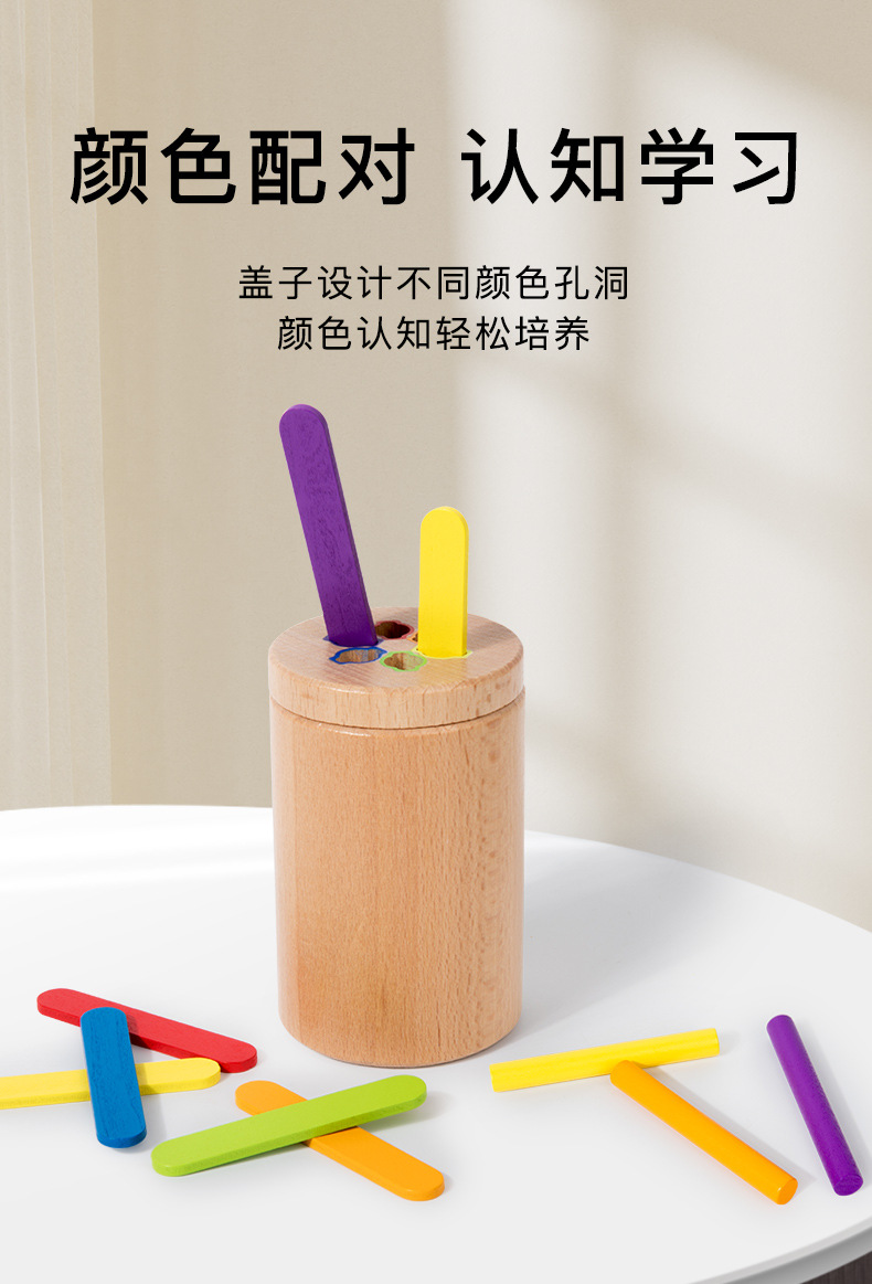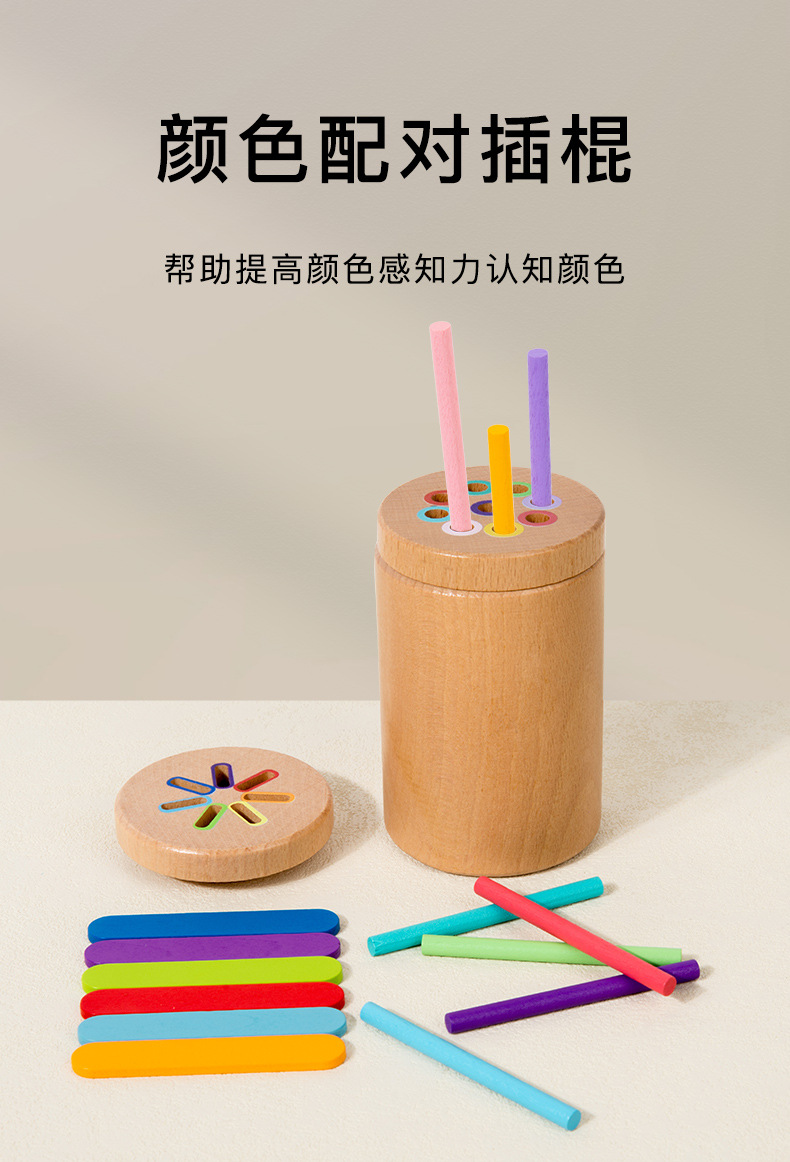 颜色分类桶教具儿童颜色形状认知配对实木笔筒3到6岁益智木制玩具