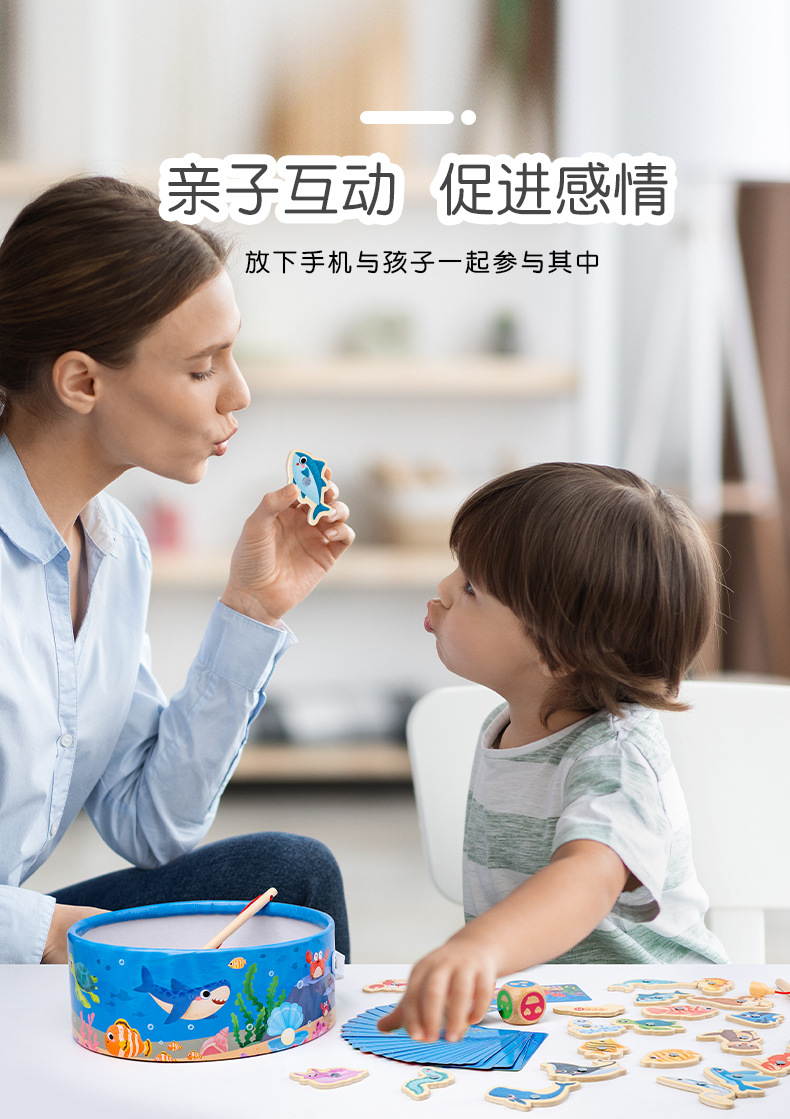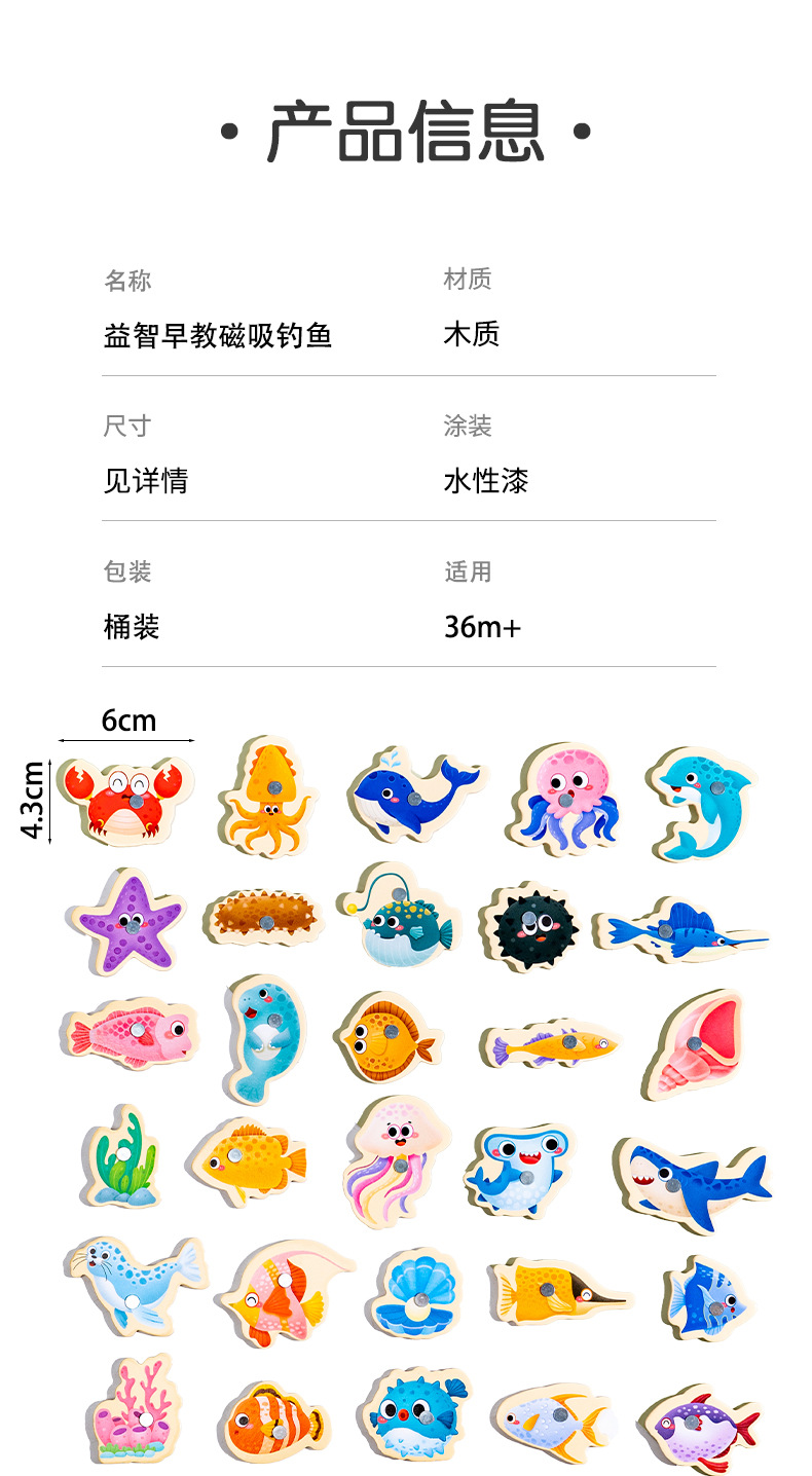 木制磁性钓鱼玩具3-6岁儿童桶装海洋动物益智认知捞鱼竿亲子游戏2