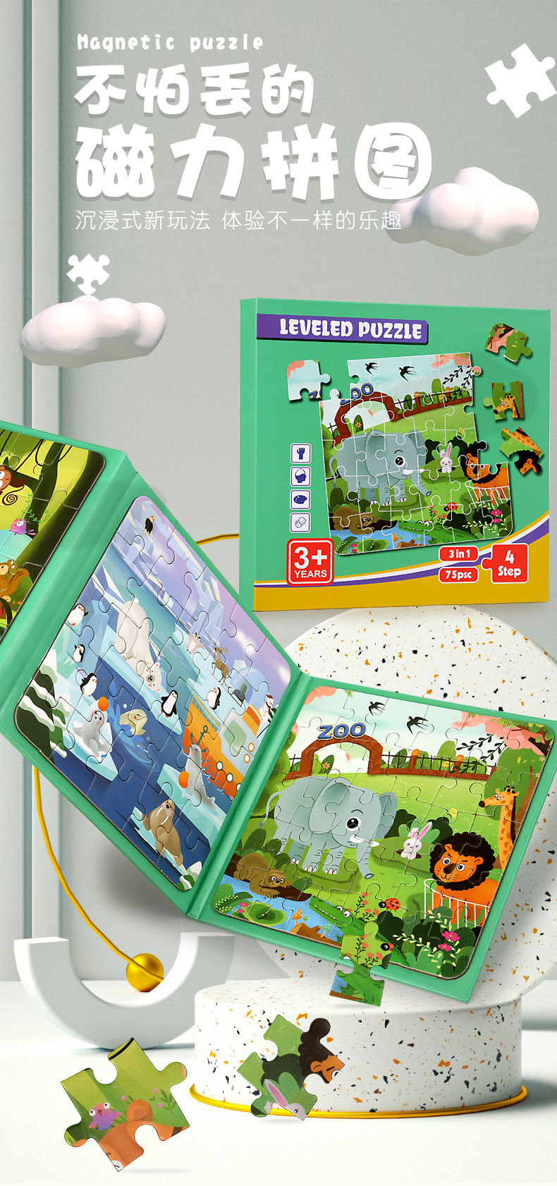 跨境拼图儿童进阶磁性3到6岁磁力早教宝宝幼儿园男孩女孩益智玩具
