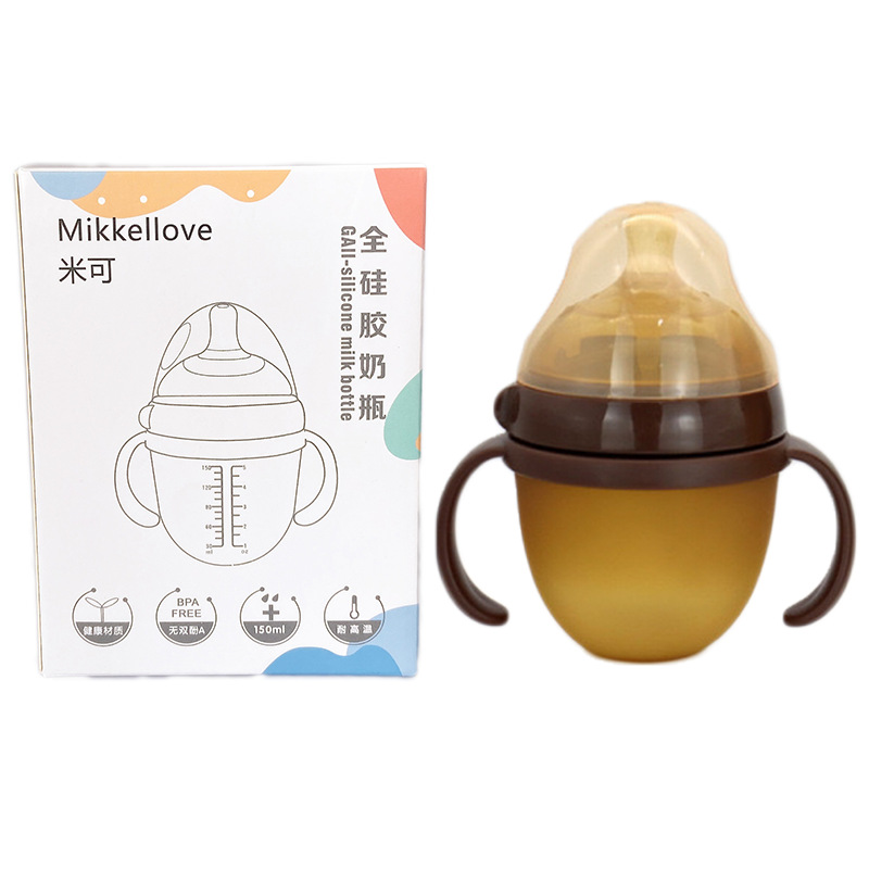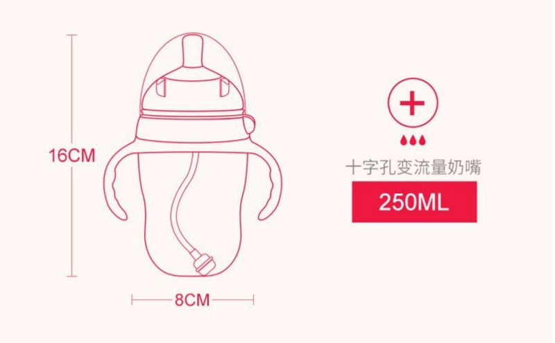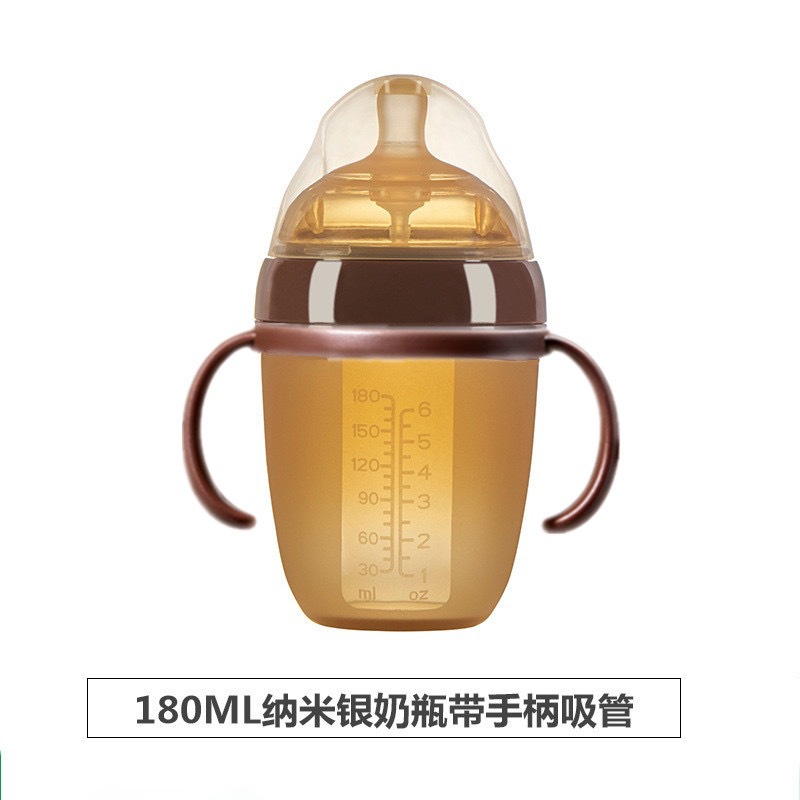 防胀气硅胶奶瓶带手柄吸管重力球奶嘴仿母乳广口婴儿宽口径奶瓶