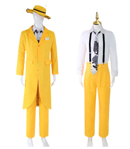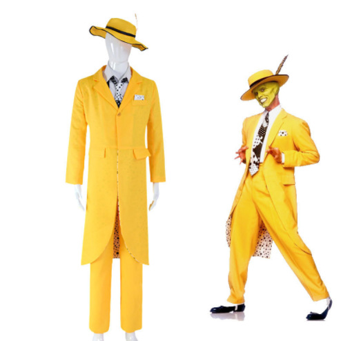 变相怪杰cos服金凯瑞JimCarry面具人黄色长西装cosplay万圣节服装