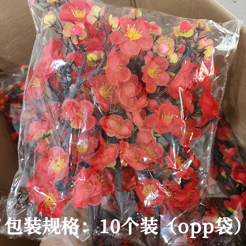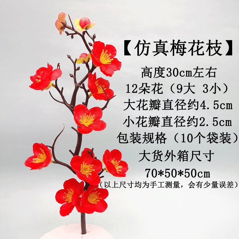 仿真梅花枝中式腊梅桃花假花家居装饰摆件祝寿蛋糕插件10个装跨境