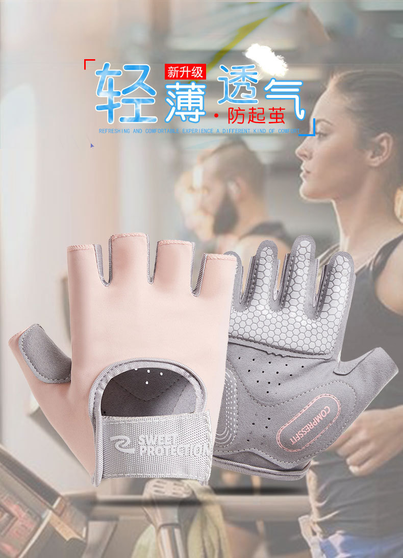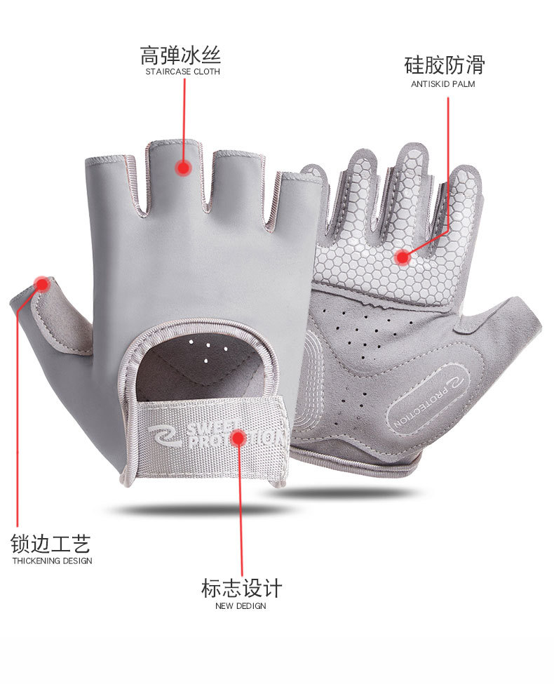 骑行手套男户外运动举重透气杠铃防滑减震冰丝半指健身手套女单车