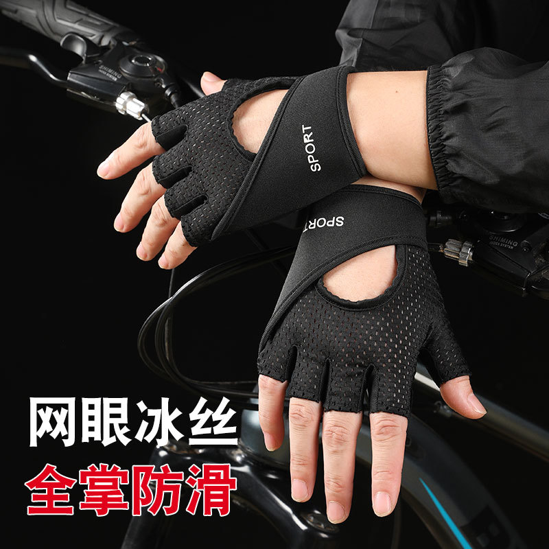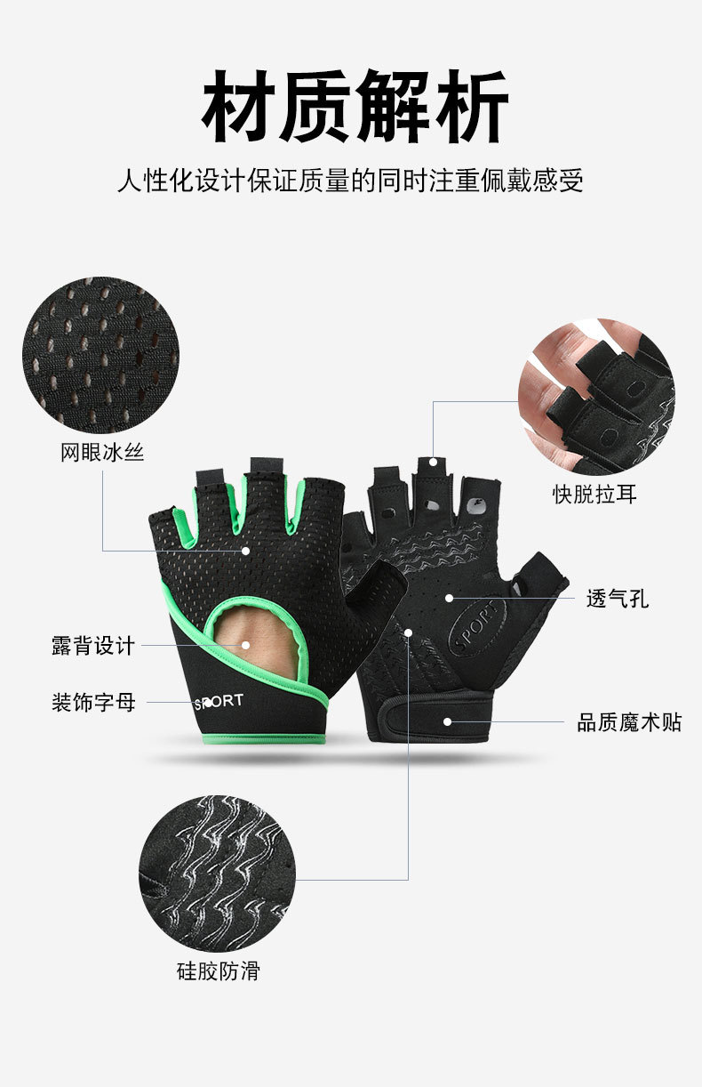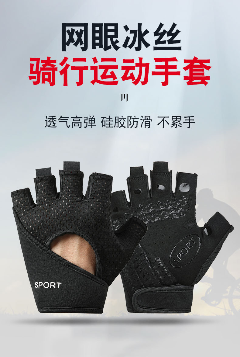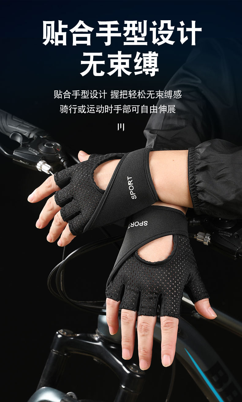 彩边运动半指健身户外自行车骑行手套男女防晒透气防滑半指手套