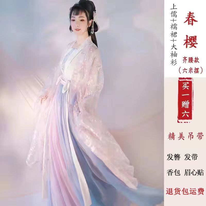 正版原创春樱汉服女成人齐胸齐腰襦裙学生大袖衫套装古装全套日常