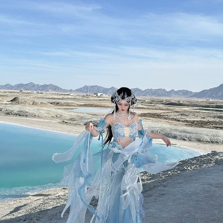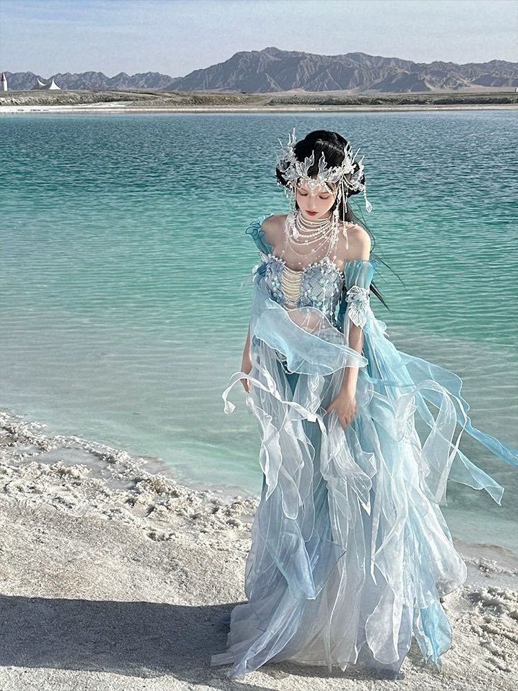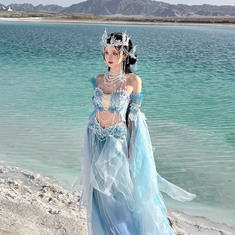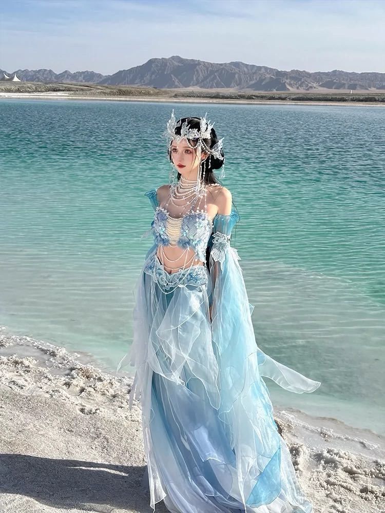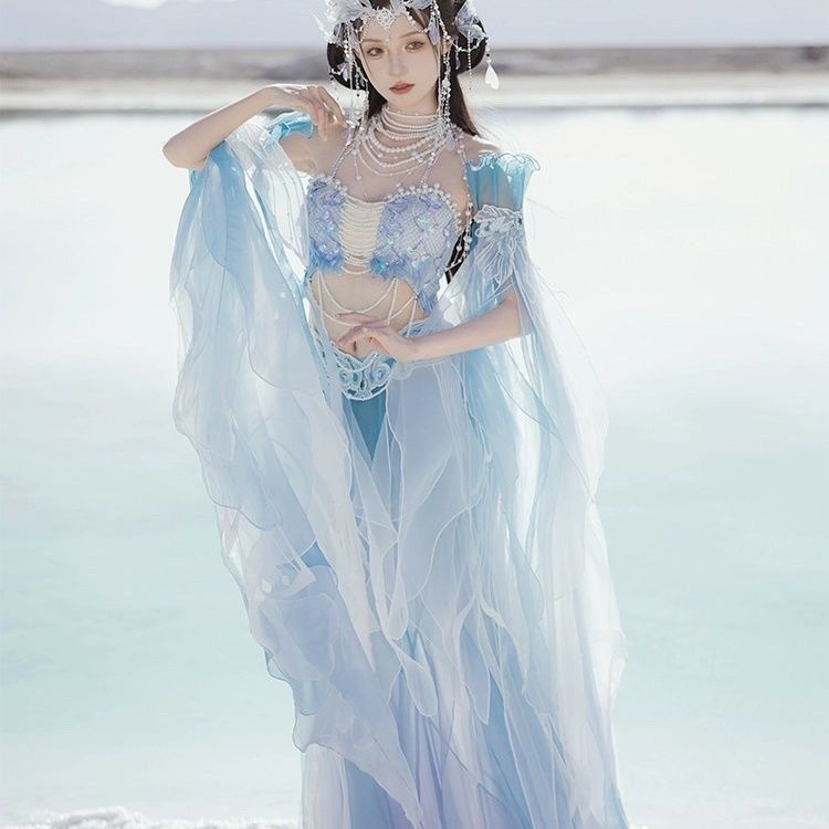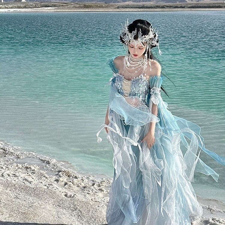七七人鱼原创异域系列人鱼公主齐胸渐变印染刺绣超仙汉服重工发完