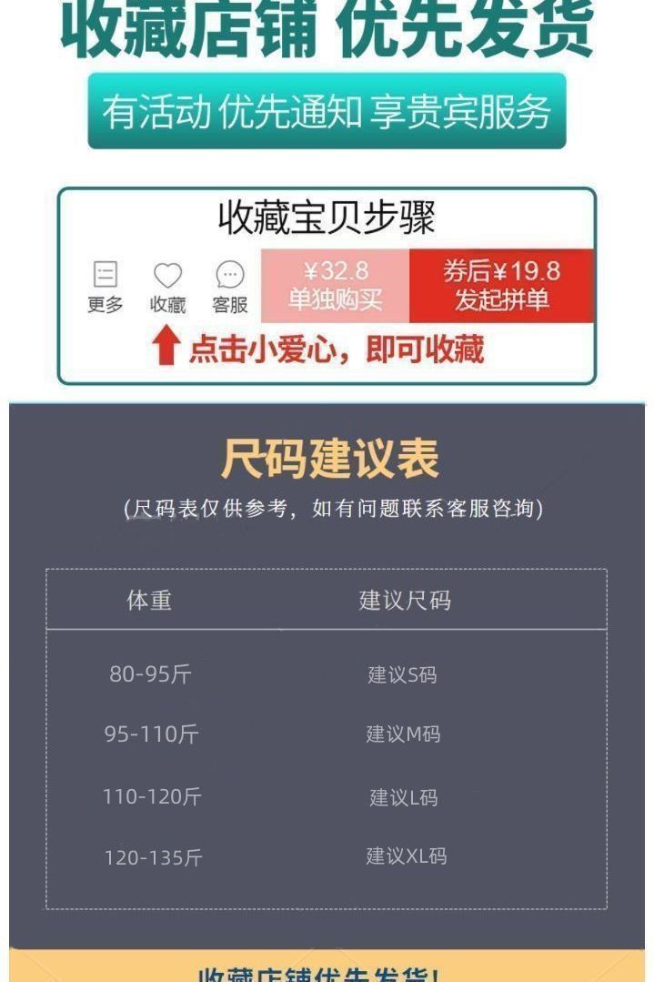 | size xl [recommended weight 60.00 kg-69.00 kg]](XL码【建议体重120-138斤】) | USD $8.6 | 999999 piece available |