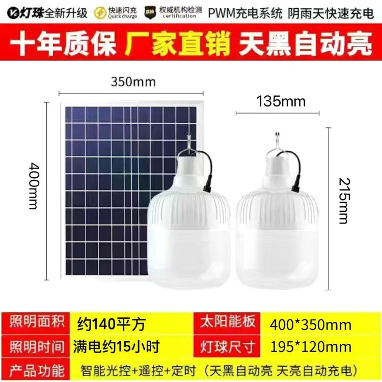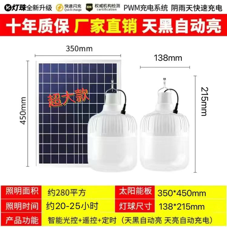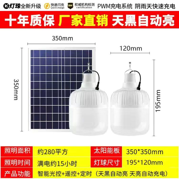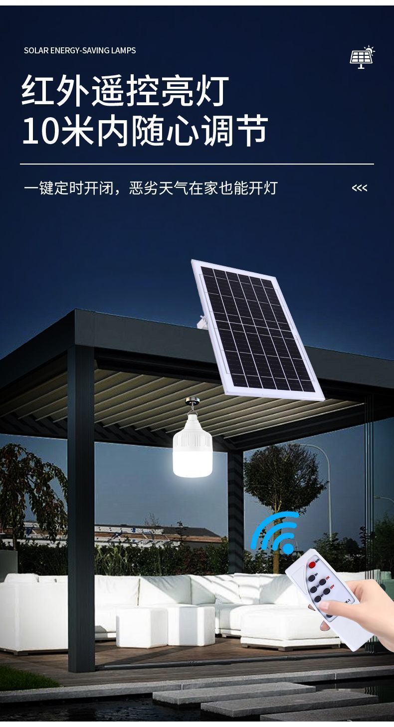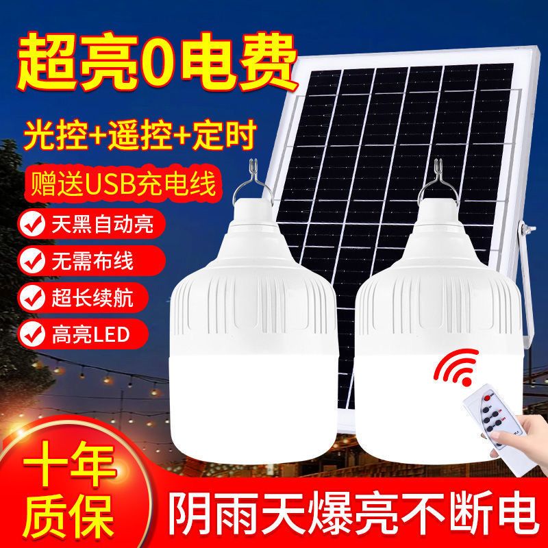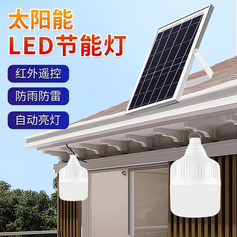 太阳能照明灯超亮LED球泡灯遥控家用应急庭院摆摊房间光控灯室内
